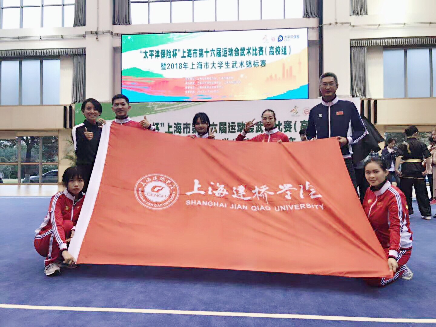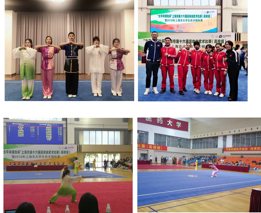 11月4日下午,四年一度的上海市第十六届运动会武术比赛高校组暨上海市大学生武术锦标赛在上海中医药大学圆满结束。本次比赛,是上海建桥学院武术队成立以来首次亮相上海武术赛场。本次比赛我校获总团体第五、女子团体第三名;单项比赛中获女子甲组传统器械冠军,女子传统拳术季军,女子甲组传统器械、二十四式太极剑、传统拳术,男子甲组传统器械、传统拳5项第四名;女子甲组二十四式太极剑第六名的好成绩。
