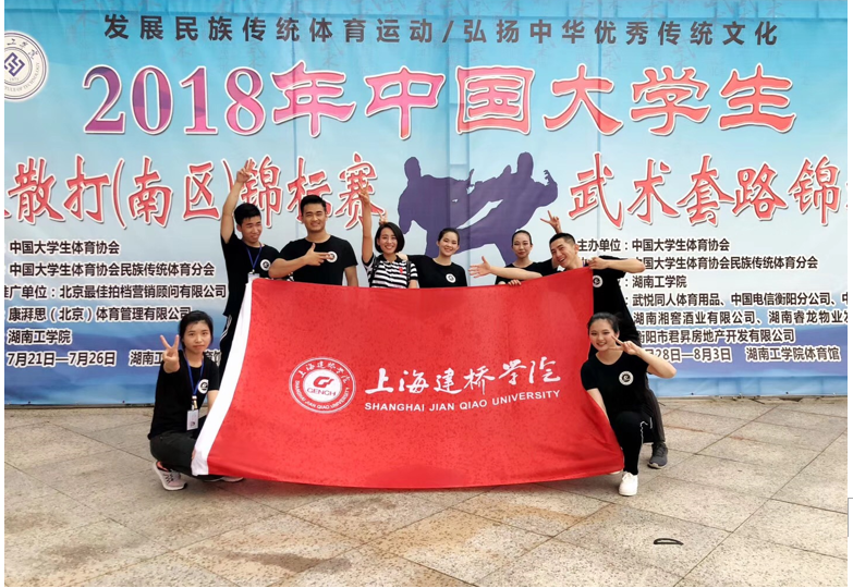 建桥武术队成立一年,从没有任何武术功底的“菜鸟”到市运会冠军,教练赵龙龙和队员们在场下的付出可想而知。早在今年8月初,武术队初次比赛亮相便是在国家级赛场上,为了能在2018年全国大学生武术套路锦标赛中,赛出水平,队员们积极备战,暑假前便开始了艰苦的集训。在大多数同学们享受悠闲假期的时候,陪伴武术队员们的,是训练场上一遍又一遍的练习,是队员们相互鼓励的加油声,是赵龙龙教练一遍又一遍的纠正动作。训练场和赛场上,有汗水,但更多的是队友情、收获和成长。最终,他们通过这场对他们半年以来训练的严格检验,获男子对练全国季军,女子丙组龙身蛇形太极拳第五名,男子丙组龙身蛇形太极拳、女子丙组查拳和女子丙组对练3个第六名、男子丙组象形拳第八名。