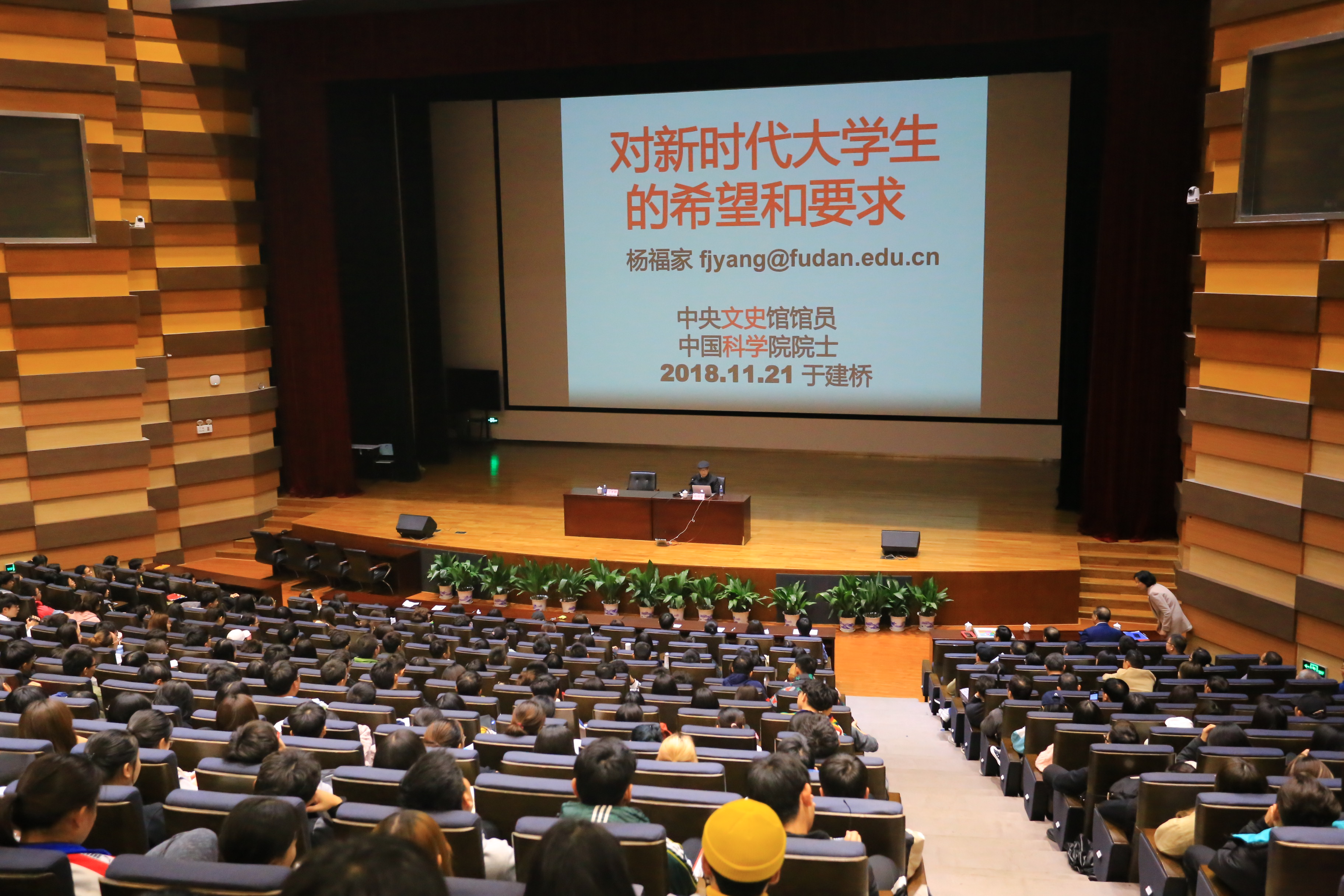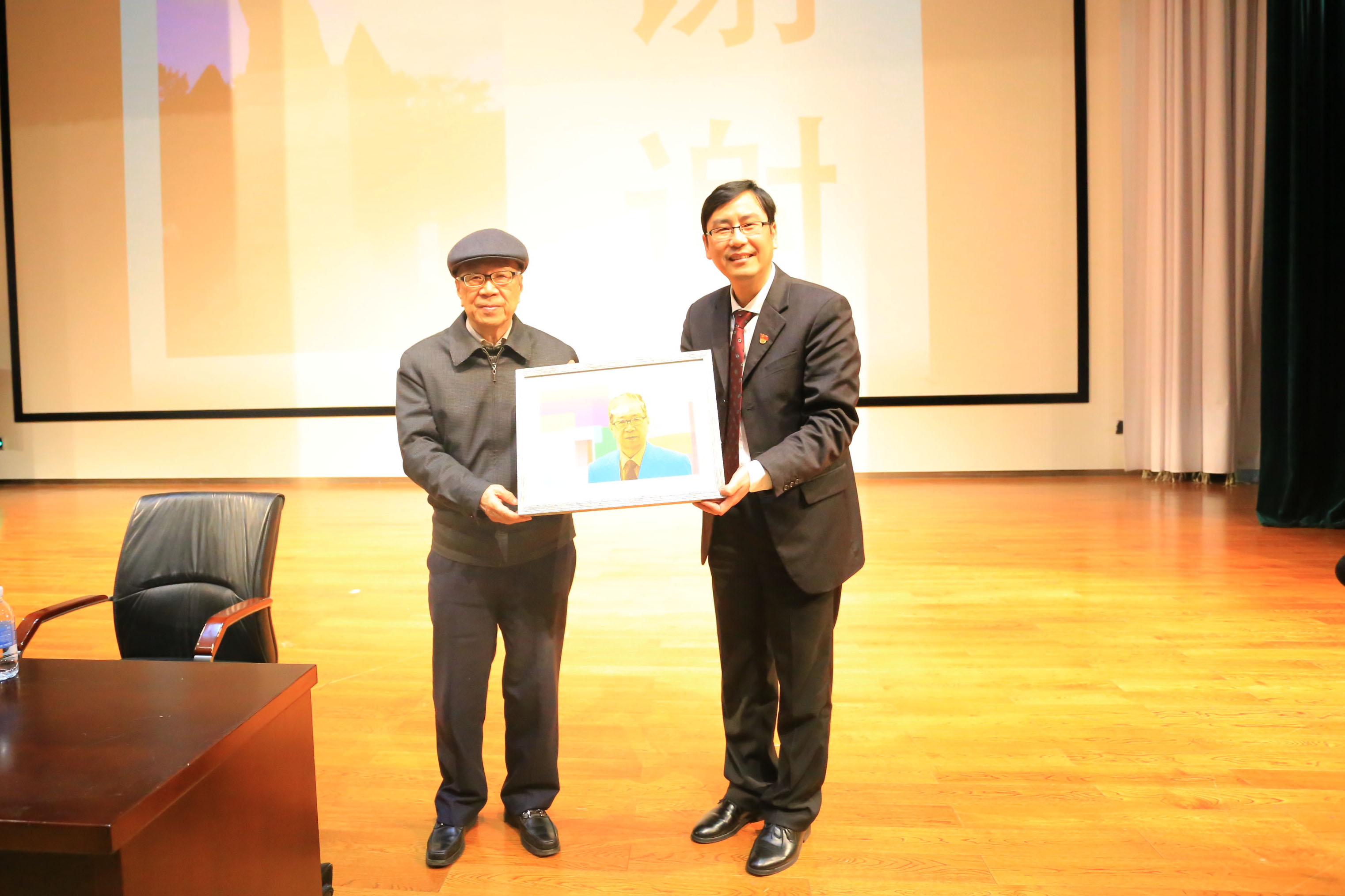 11月21日下午,中国科学院院士、中央文史研究馆馆员,我校名誉校长杨福家来校为师生作报告,全体大一新生在现场或通过视频转播聆听了报告。校长朱瑞庭代表学校向杨福家名誉校长赠送了由学校版画社制作的人像版画。校领导周星增、黄清云、夏雨、陈伟出席报告会,学校中层干部到会。党委书记江彦桥主持报告会。