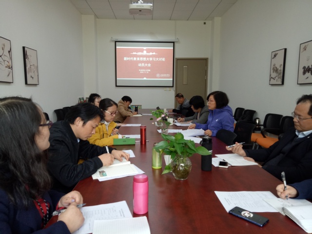 荆筱槐副院长就学院贯彻落实学校“新时代教育思想大学习大讨论”活动进行工作部署,并要求全体教职工深入学习党的十九大精神和全国教育大会精神,紧紧围绕落实教育部本科教育工作会议精神,把思想、认识和行动高度统一到落实立德树人根本任务、培养提升学生德智体美劳综合素质方面,贯彻“四个回归”,加强教师队伍与师德师风建设,马院教师在课堂主阵地应以“润物细无声”方式传递正能量,同时活跃课堂气氛,拓宽学生视野。