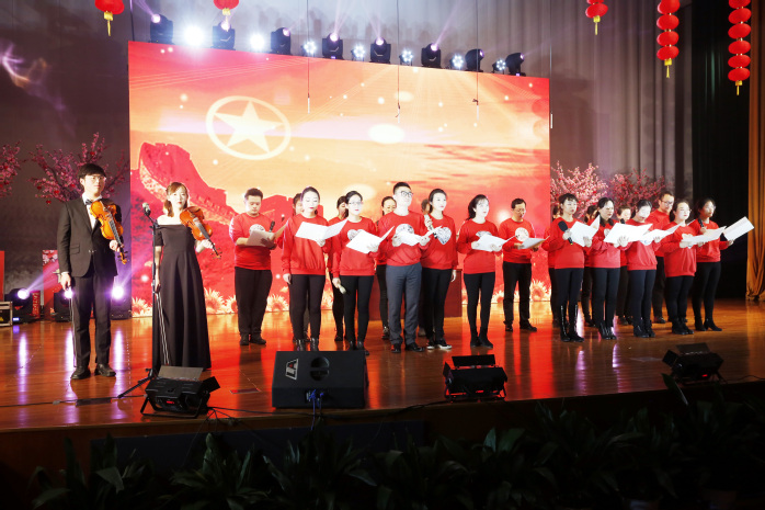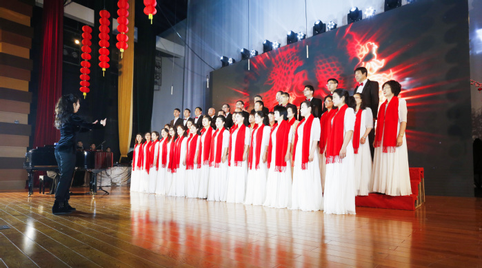联欢会最后,我校合唱团带来了在市教育工会庆祝改革开放40周年联欢会上的合唱表演《龙的传人》《爱的奉献》,热情讴歌了中华文明的渊源流长,赞美了人世间的大爱精神。
