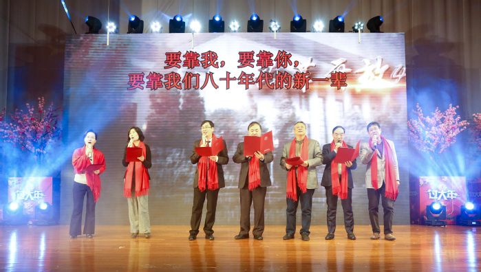 笑语辞旧岁,联欢迎新年。1月15日,我校“高歌新时代 迈向新征程”庆祝改革开放40周年联欢会在校大礼堂举行。董事会领导、校党政领导、监事会领导、全体教职员工欢聚一堂,庆祝改革开放40周年。董事长周星增出席并讲话。校长朱瑞庭主持大会。