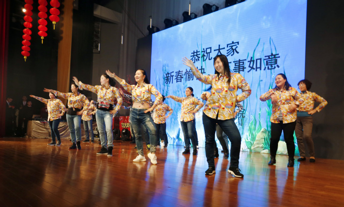 体育组、马克思主义学院联袂表演《海草舞》,展现了体育组教师与马院教师的青春与活力,舞蹈更是向联欢会推向了高潮