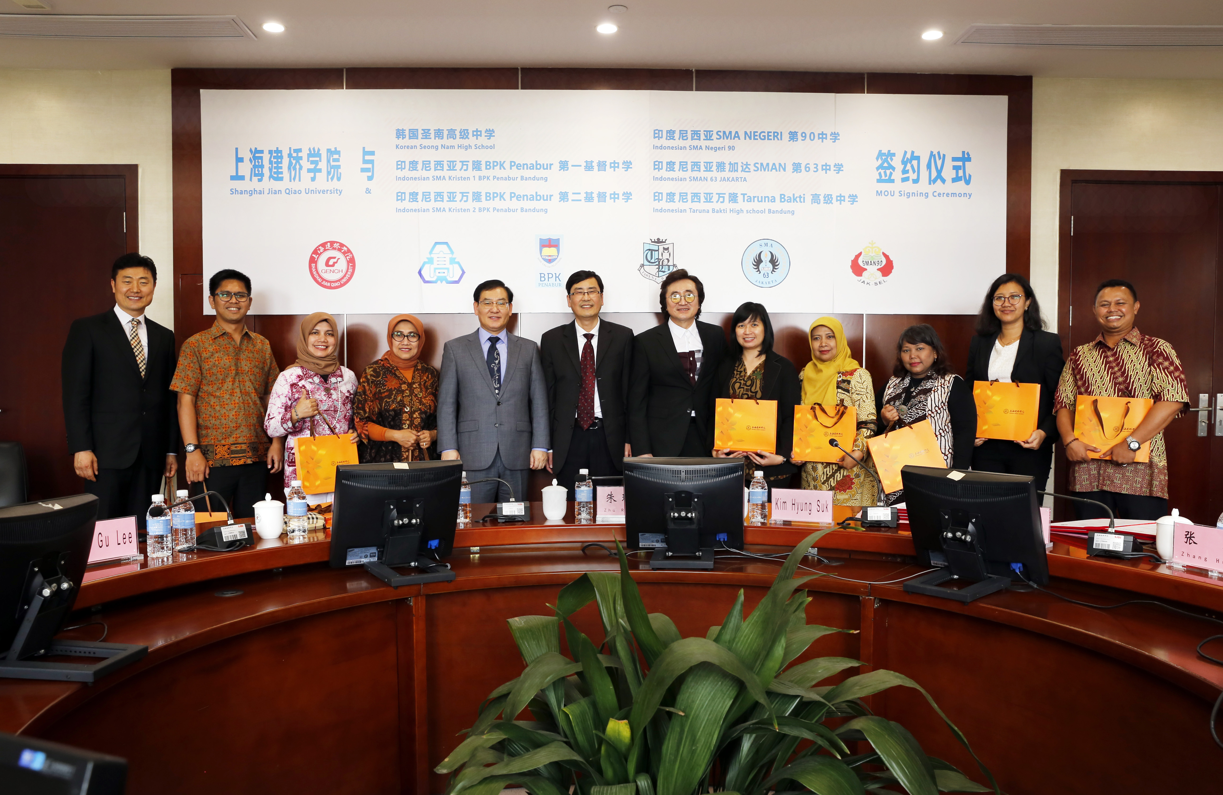 4月23日,韩国、印度尼西亚六校高中校长及负责人来访我校。校长朱瑞庭在S417接待来宾。
