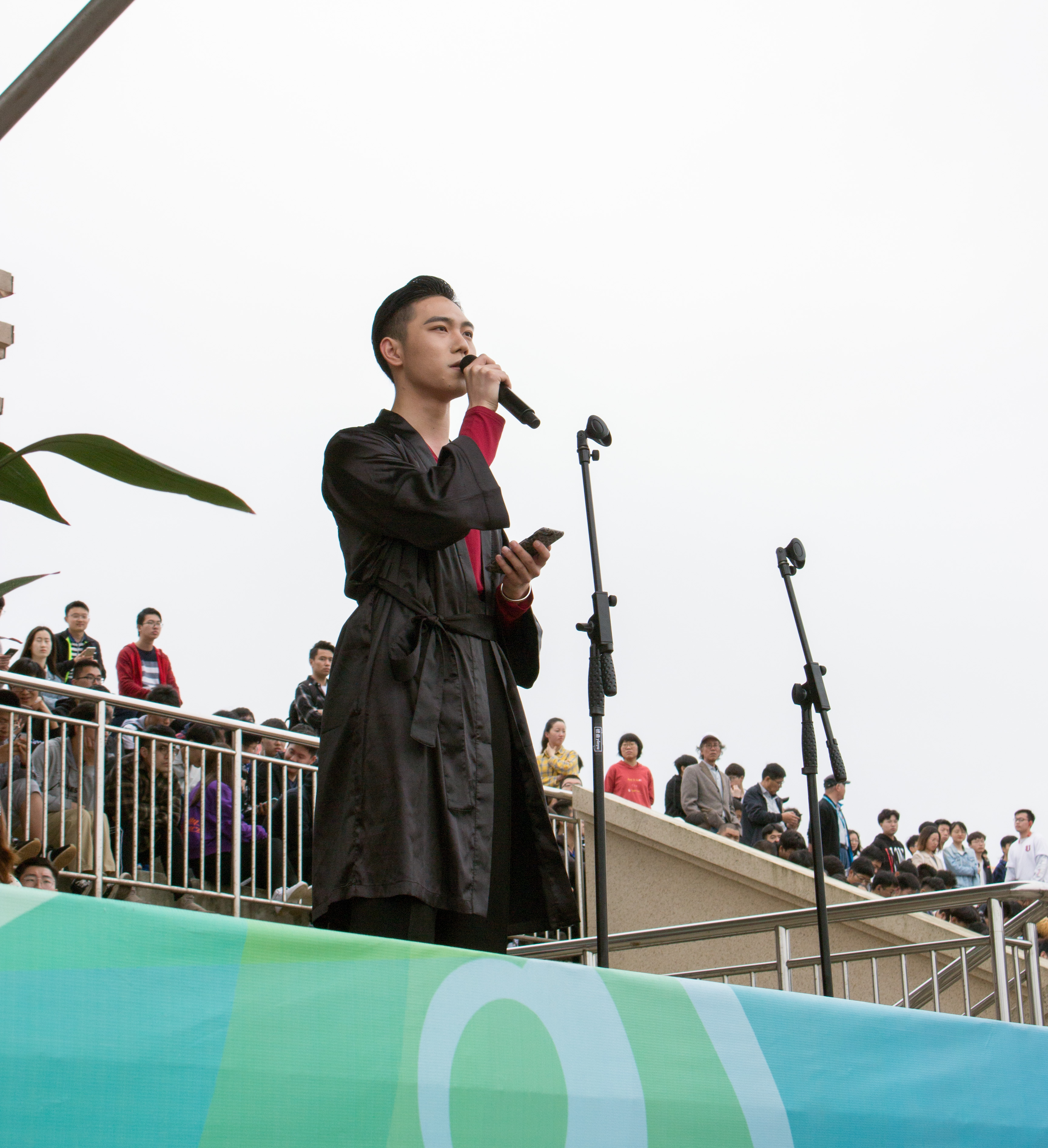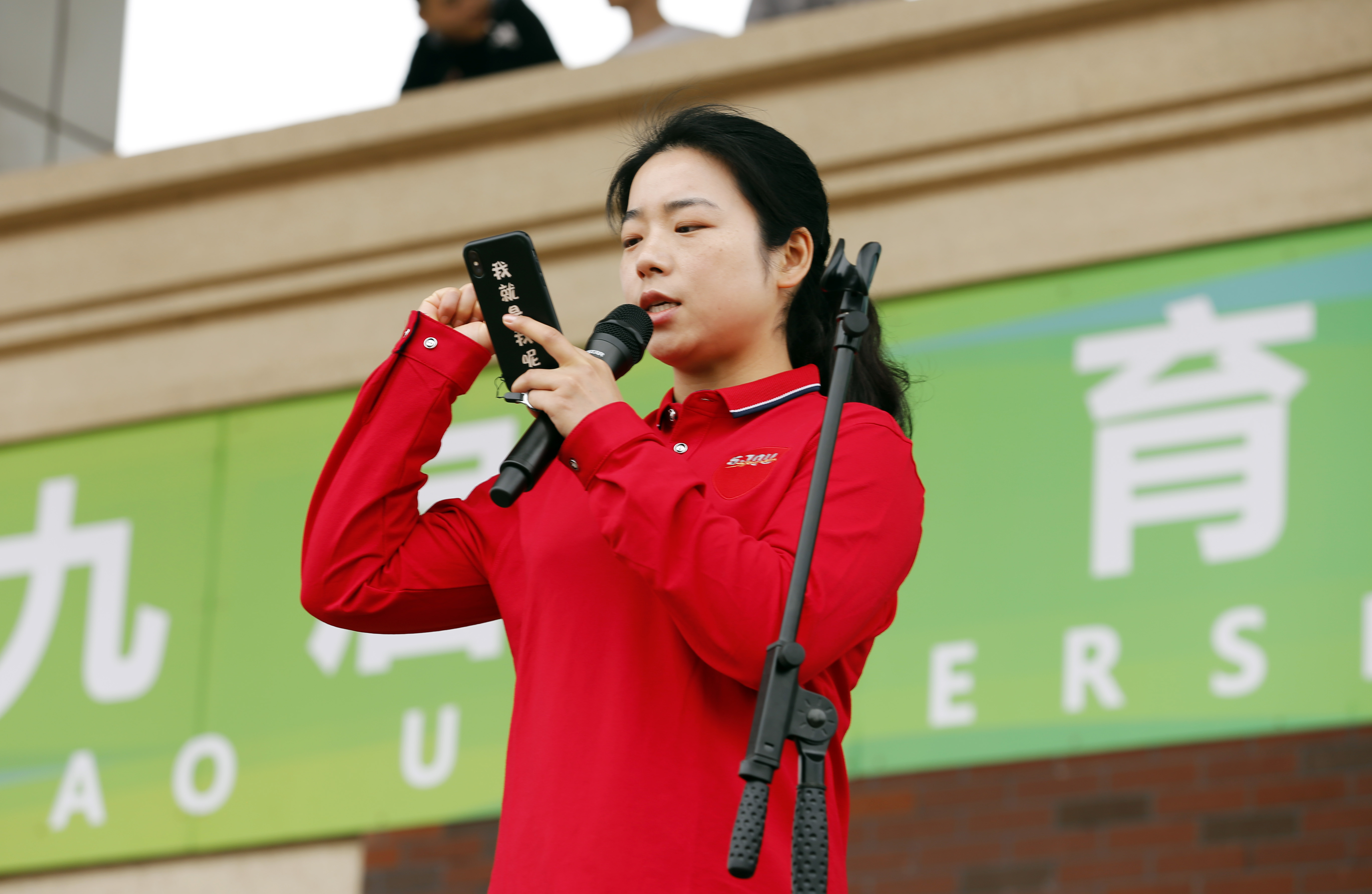 周健儿副校长宣布第十九届上海建桥学院体育运动会开幕。