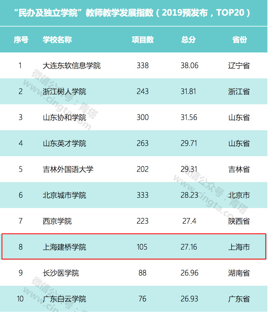 5月27日,中国高等教育学会在福州举行的春季高等教育博览会上预发布我国首个普通本科院校教师教学发展指数。本次共发布包括全国普通本科院校教师教学发展指数前300,“双一流”建设高校教师教学发展指数(全部),地方本科院校教师教学发展指数前100,不同类型学校教师教学发展指数前20(分综合类、理工类、人文社科类、农林类、医药类、师范类6类),民办及独立学院教师发展指数前20,共计10个高校教师教学发展指数清单。我校在民办及独立学院教师发展指数中位列第八。