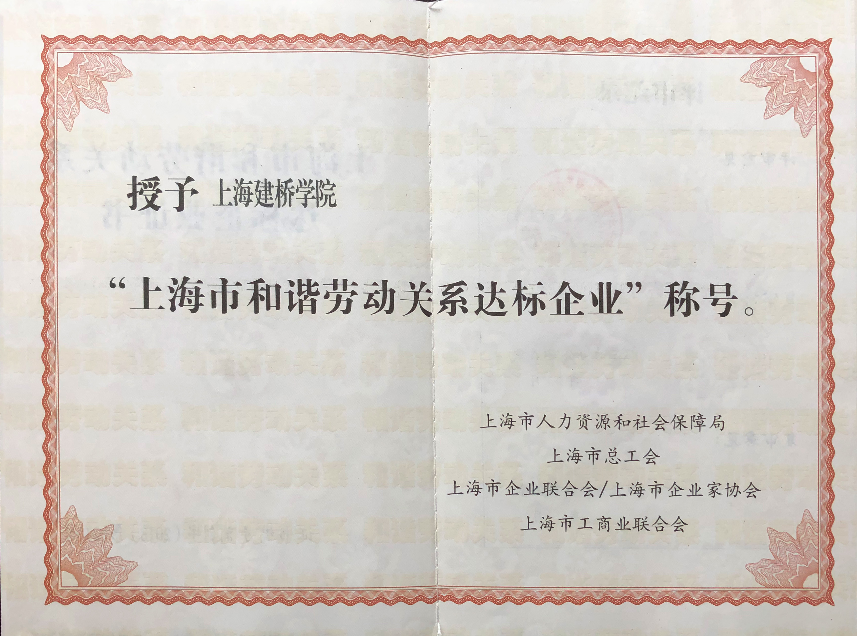 近日,我校被上海市人力资源和社会保障局、上海市总工会、上海市企业联合会/上海市企业家协会、上海市工商业联合会联合授予“上海市和谐劳动关系达标企业”荣誉称号。