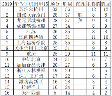 8月26日,2019年华为手机杯中国围棋甲级联赛在各主场进行了常规赛的最后一轮(第15轮)角逐。上海建桥学院在客场4比0大胜“领头羊”杭州苏泊尔队,并凭借着“局分”的优势幸运挺进季后赛八强。