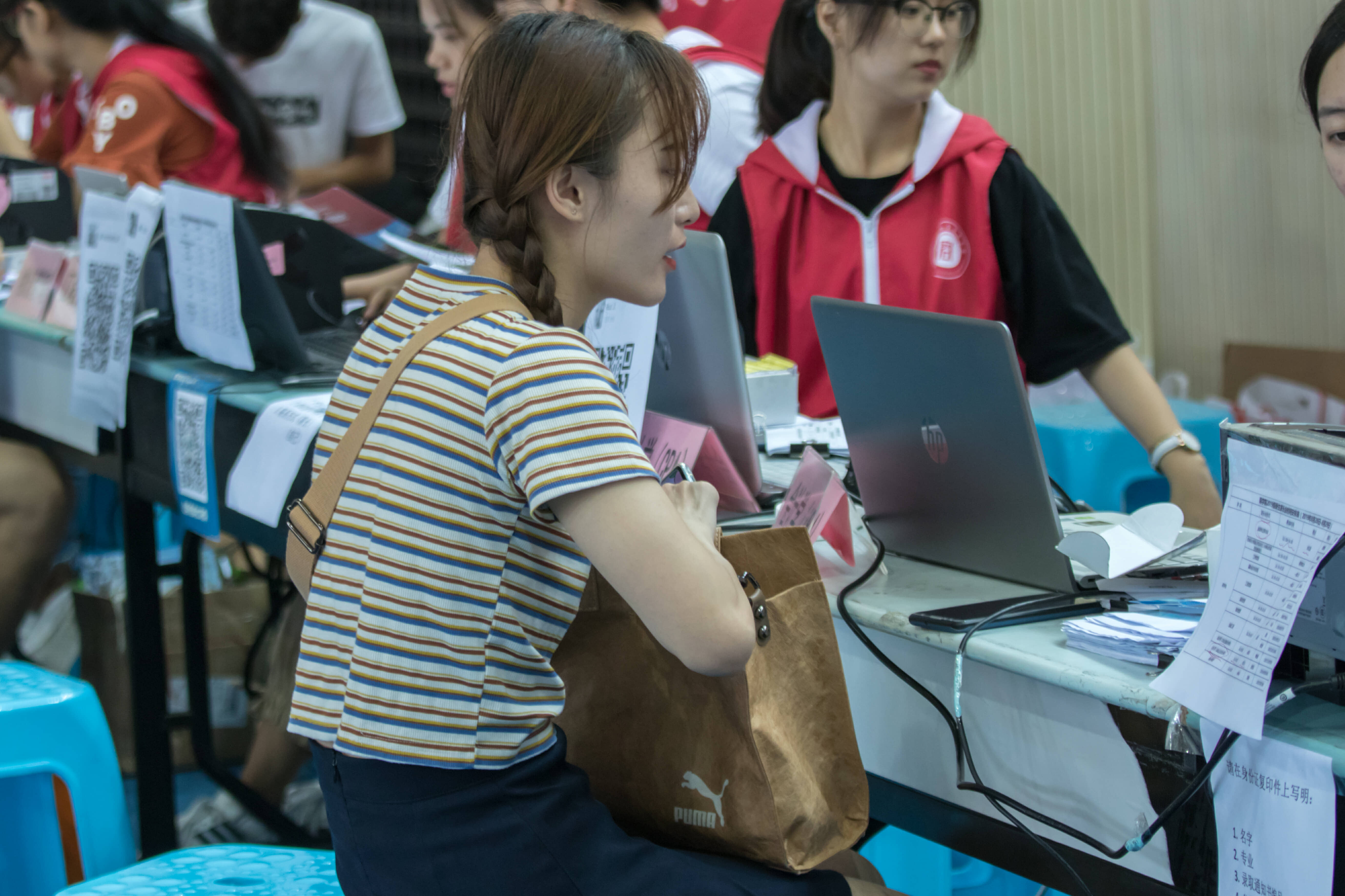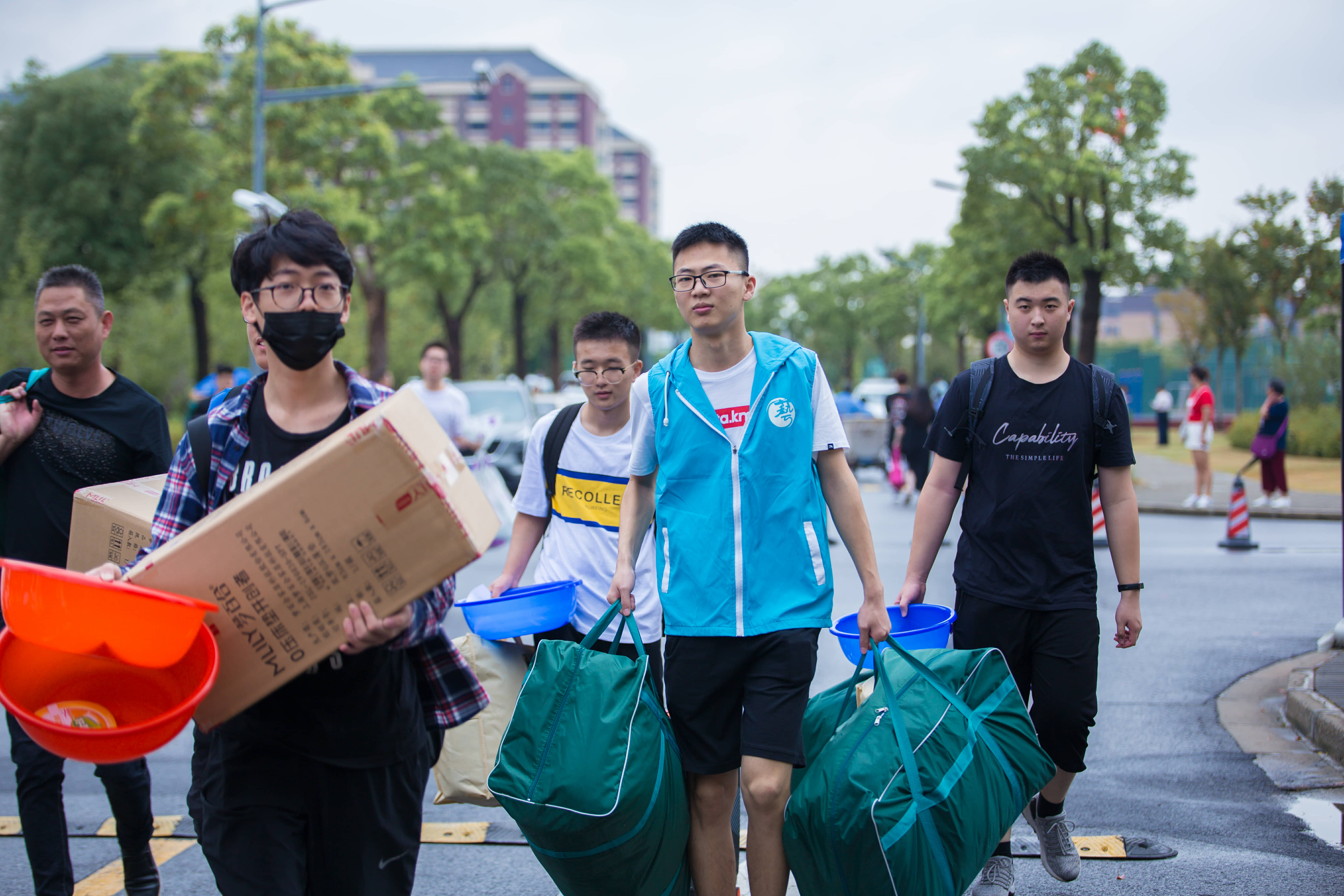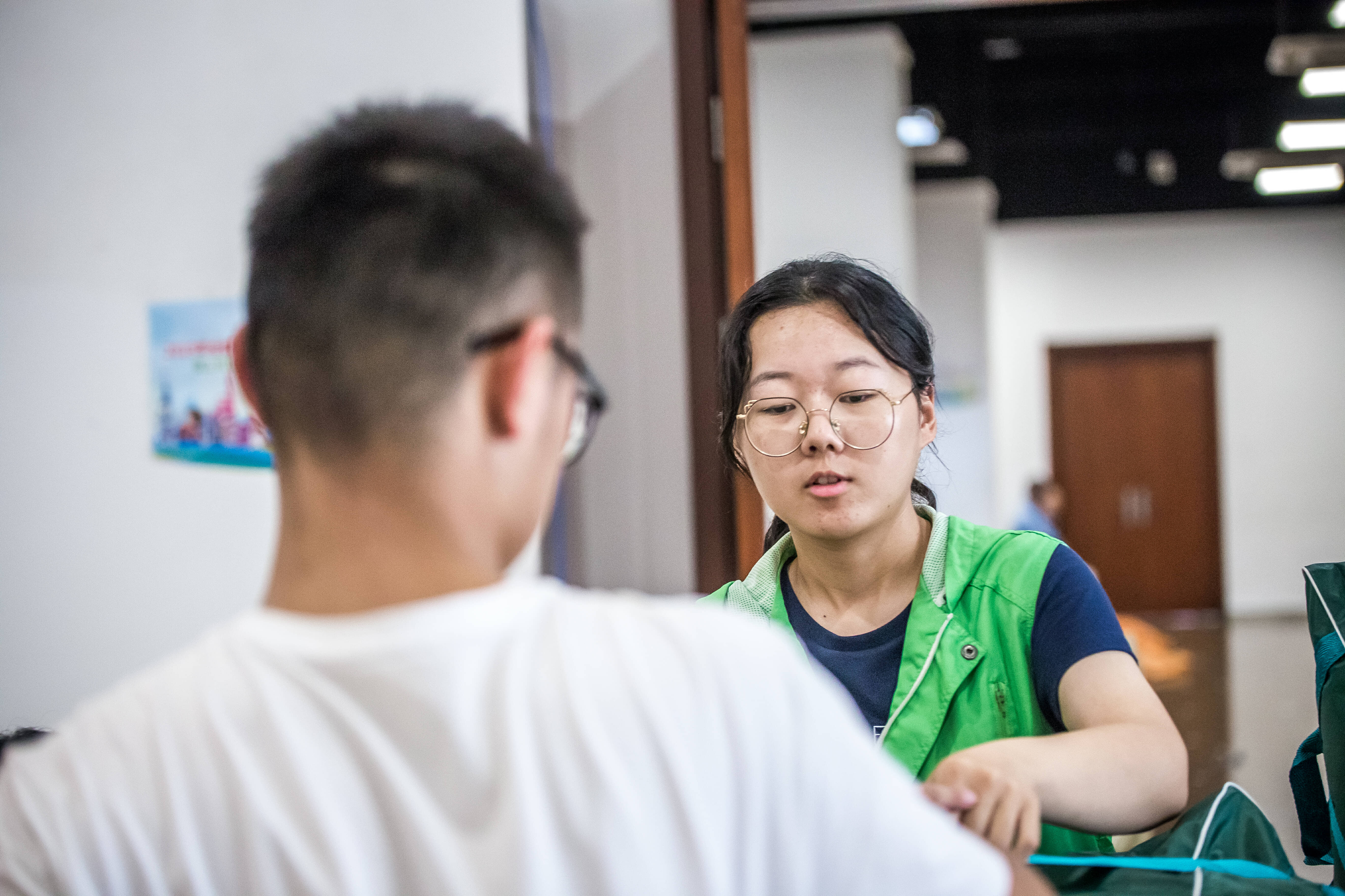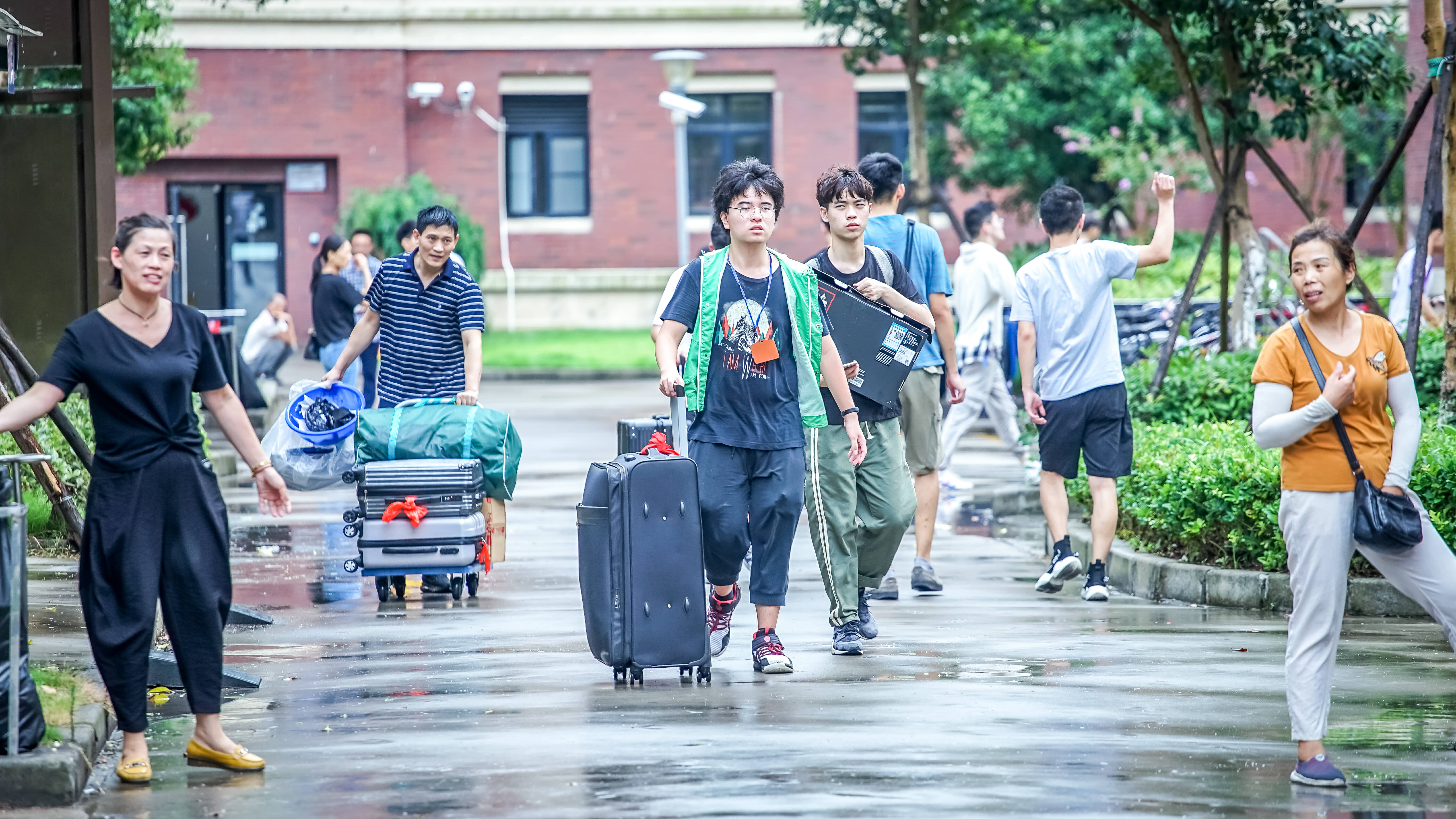 在烈日及大雨中,场外志愿者为新生及家长指路、解答疑问、就餐指引、帮拎行李等,场内志愿者则详细指导新生独立完成报到,协助领取生活用品等,虽然下午5点是他们的“下岗”时间,但是还有不少志愿者忙碌到晚间10点,通过热情接待传递学长学姐的关爱。