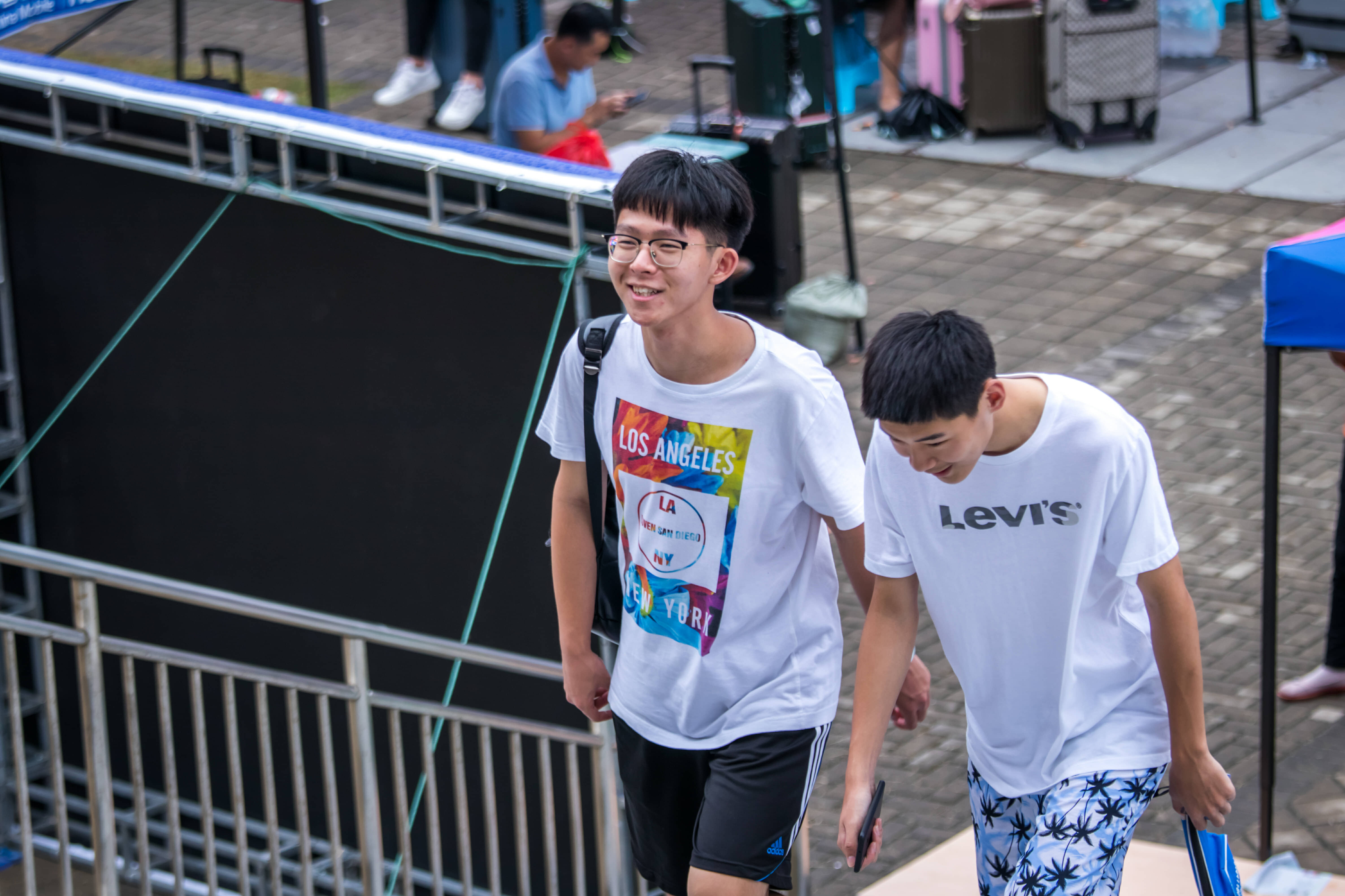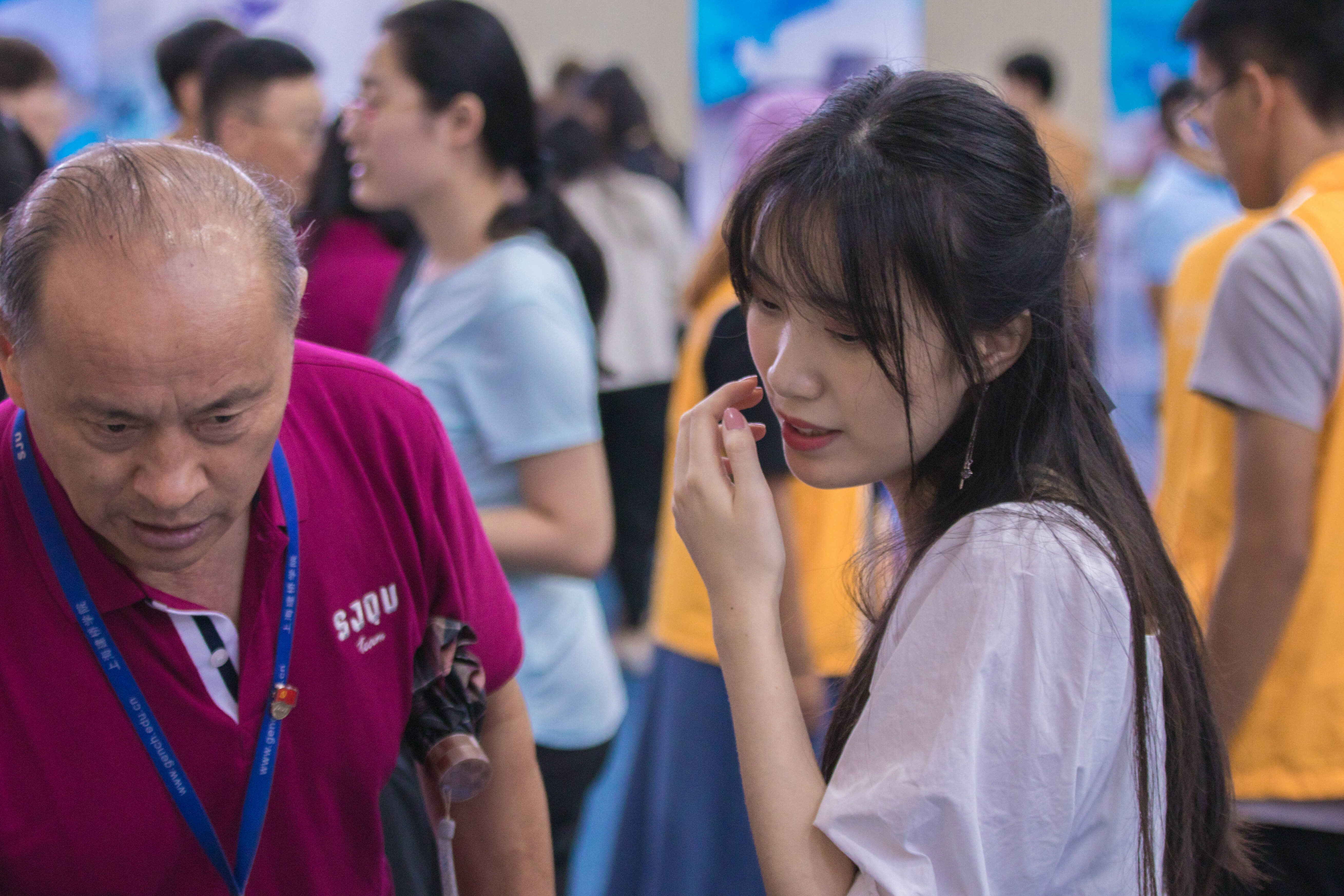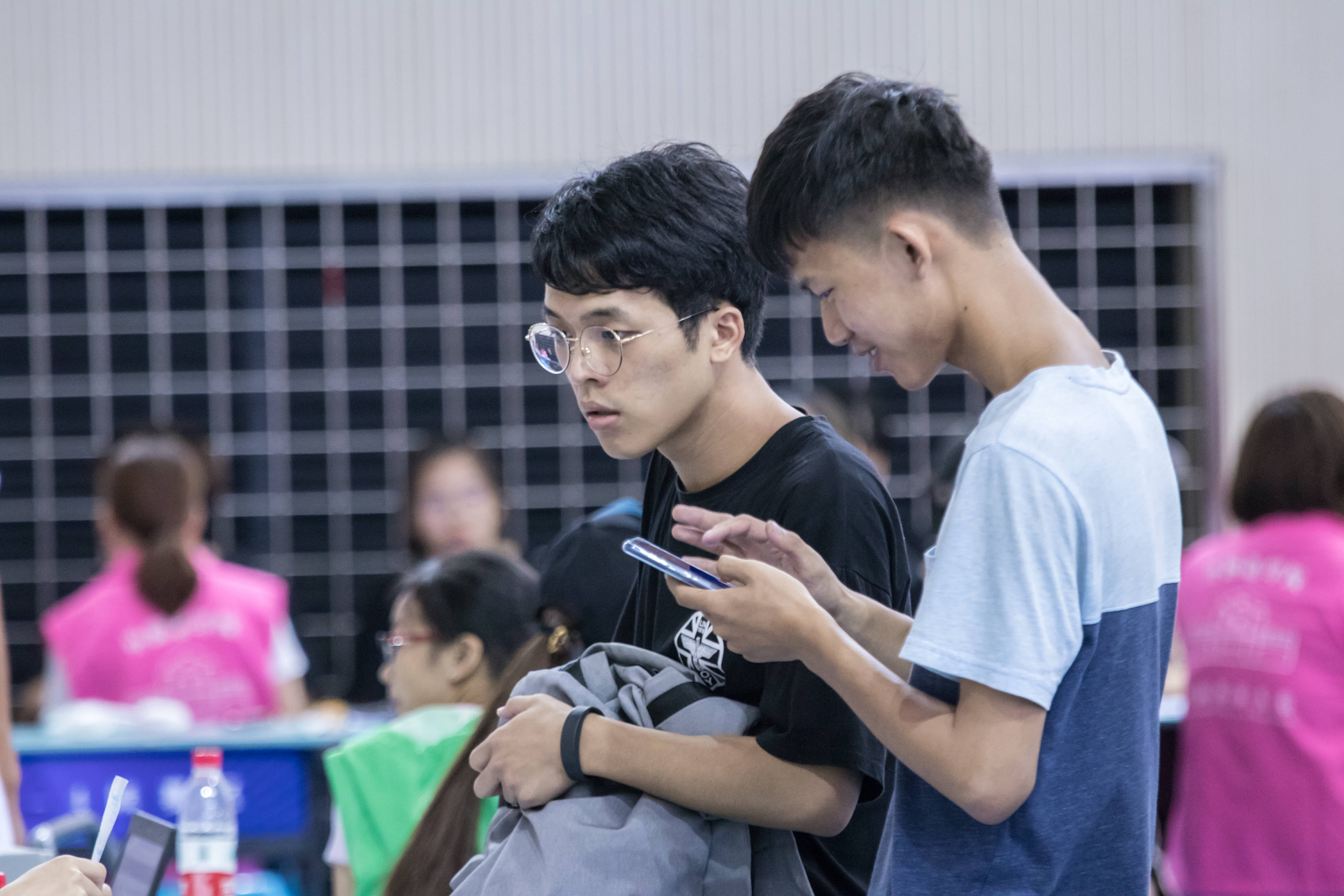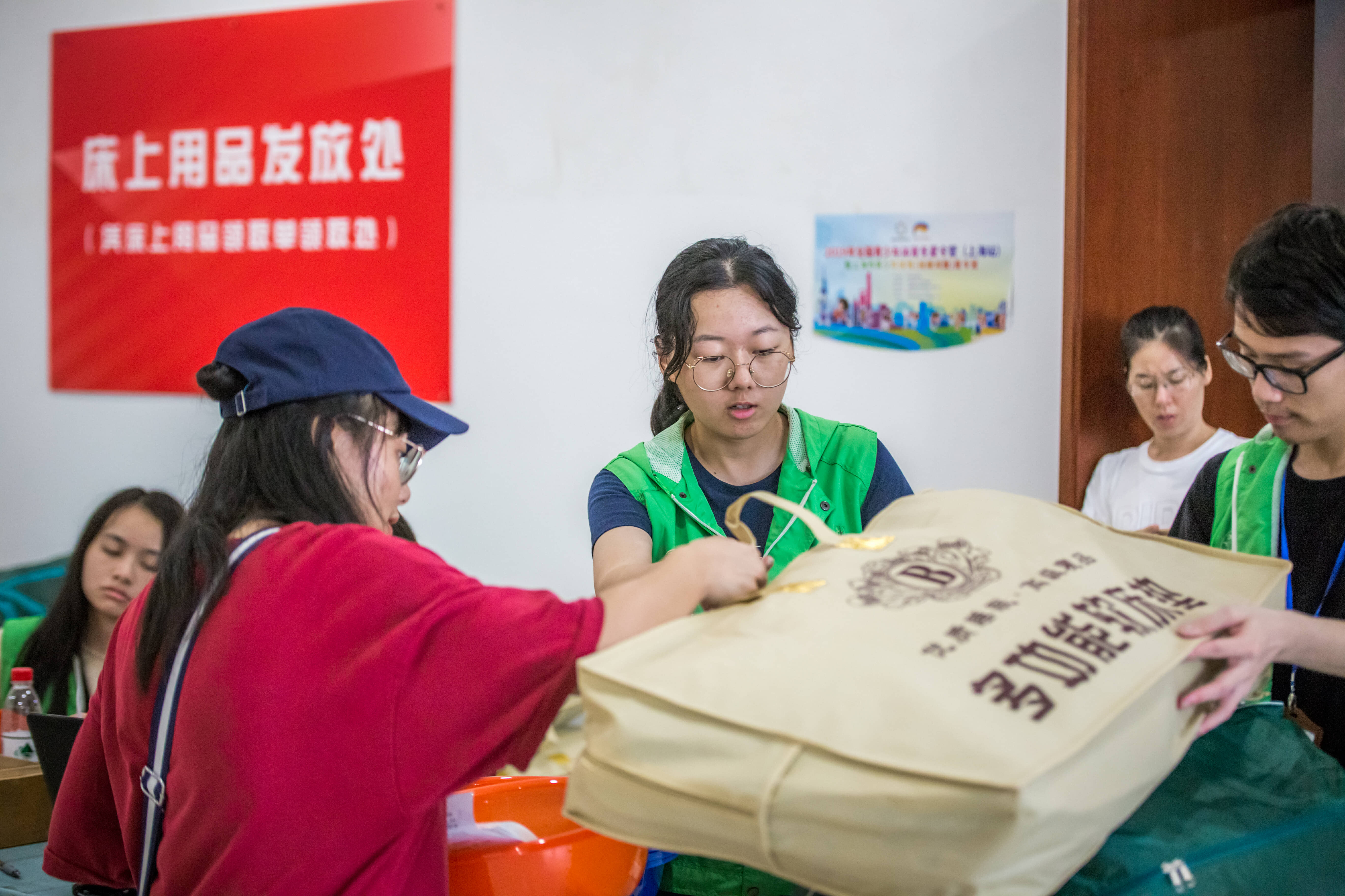 在烈日及大雨中,场外志愿者为新生及家长指路、解答疑问、就餐指引、帮拎行李等,场内志愿者则详细指导新生独立完成报到,协助领取生活用品等,虽然下午5点是他们的“下岗”时间,但是还有不少志愿者忙碌到晚间10点,通过热情接待传递学长学姐的关爱。
