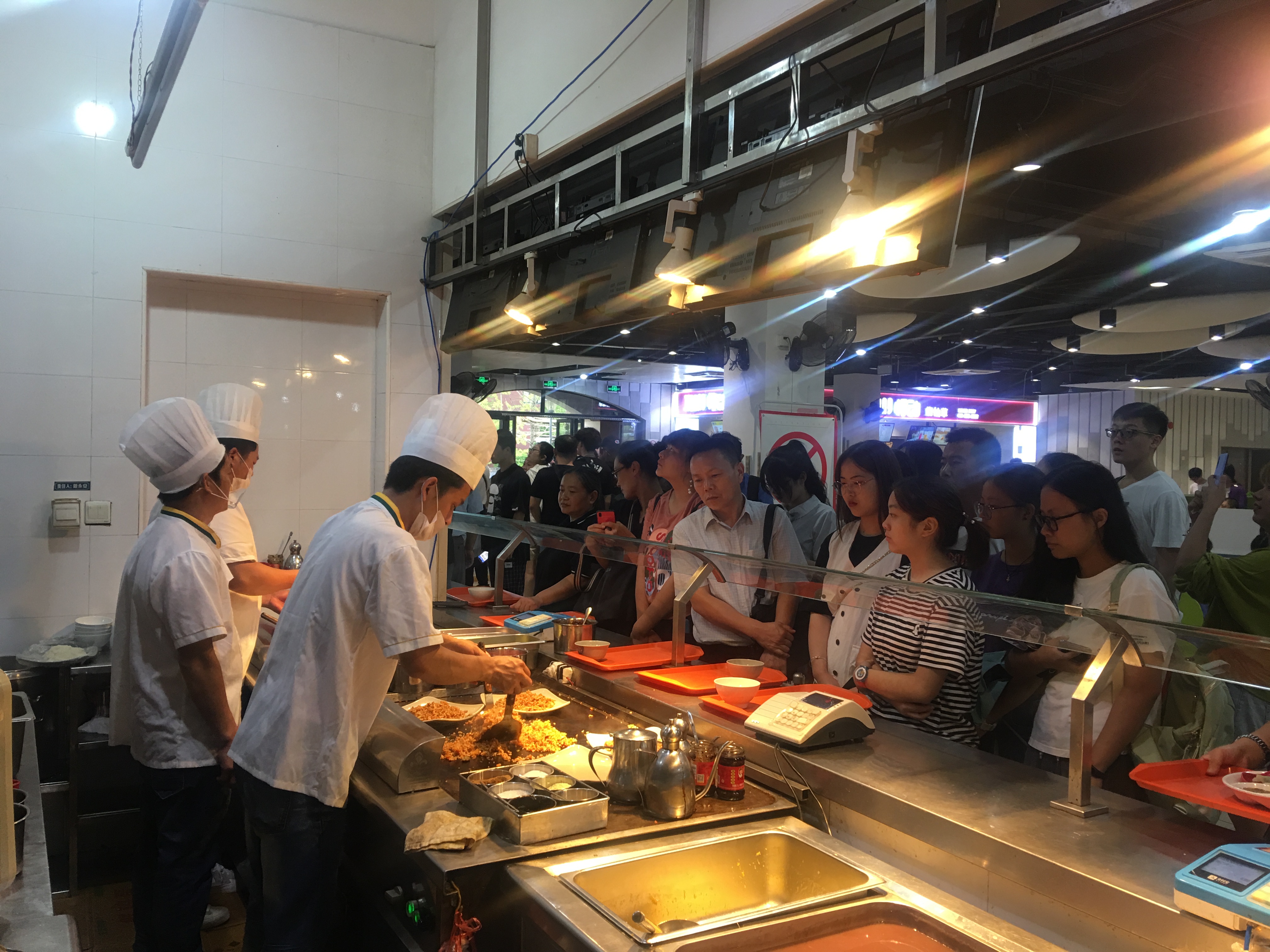 餐饮服务中心面对突如其来的就餐人流,保障食品卫生安全,精心准备每一道菜肴,让远道而来的新生及其家长随时能吃上可口热菜热饭。