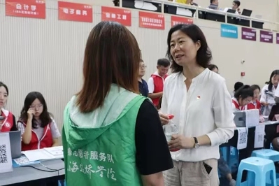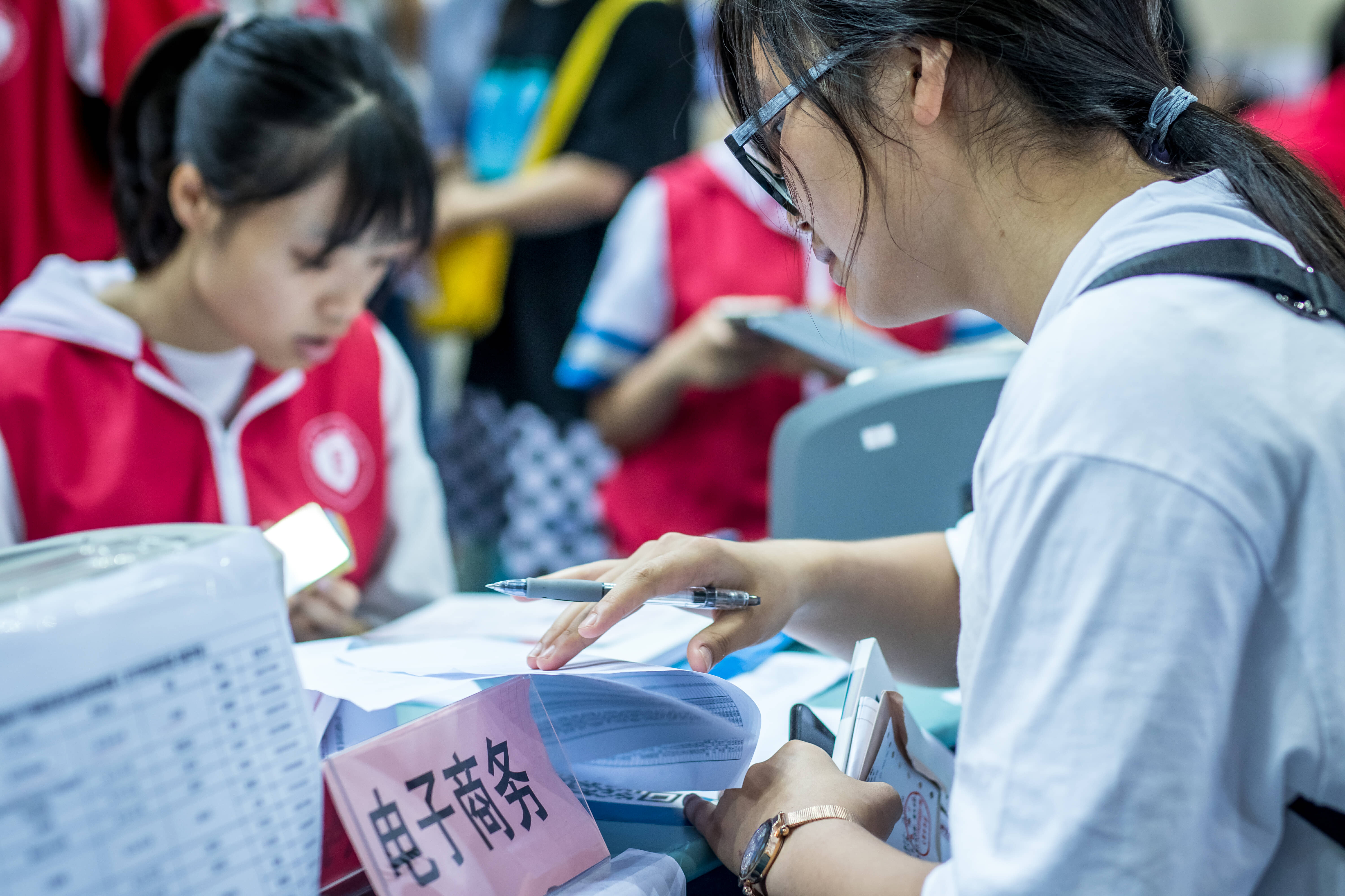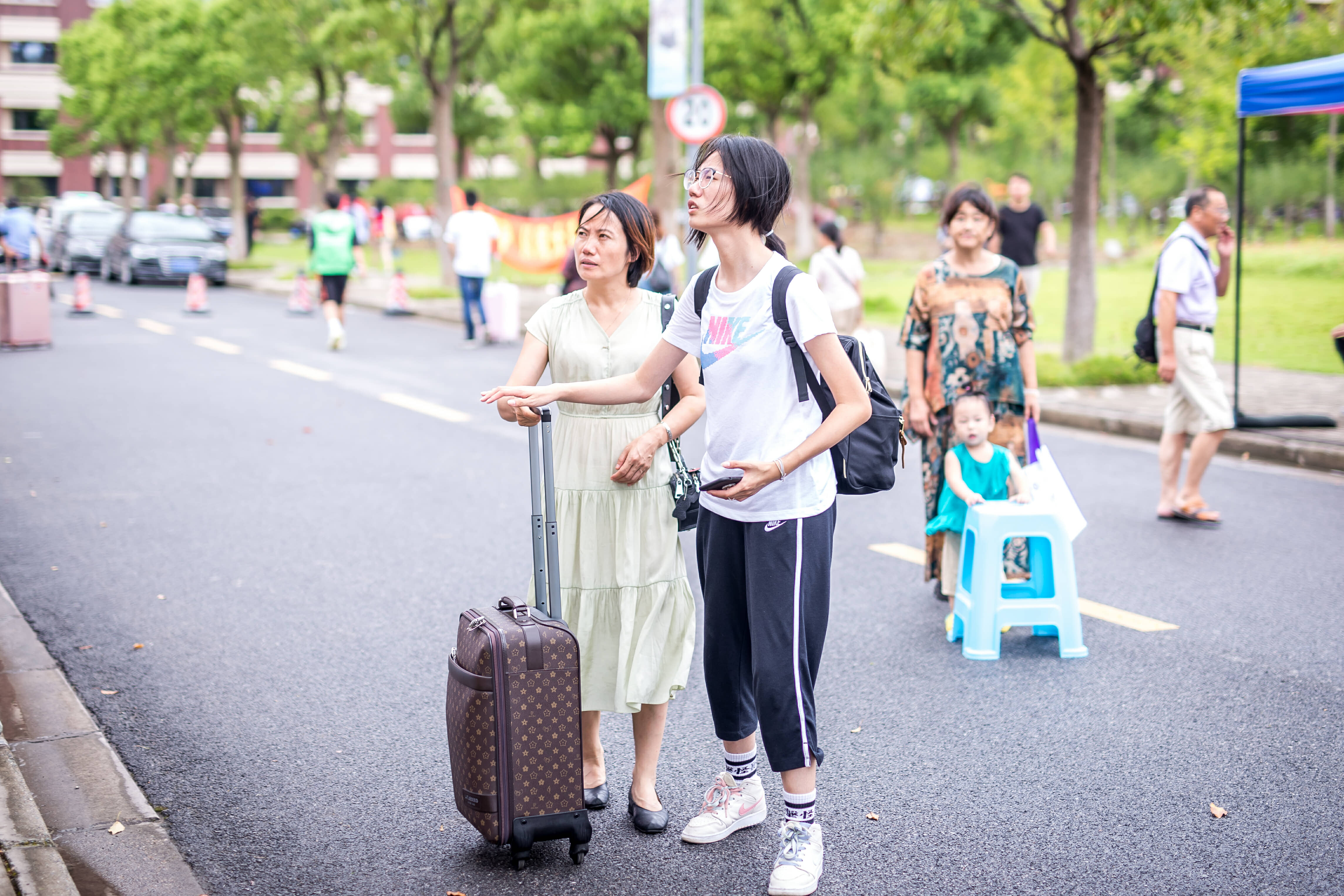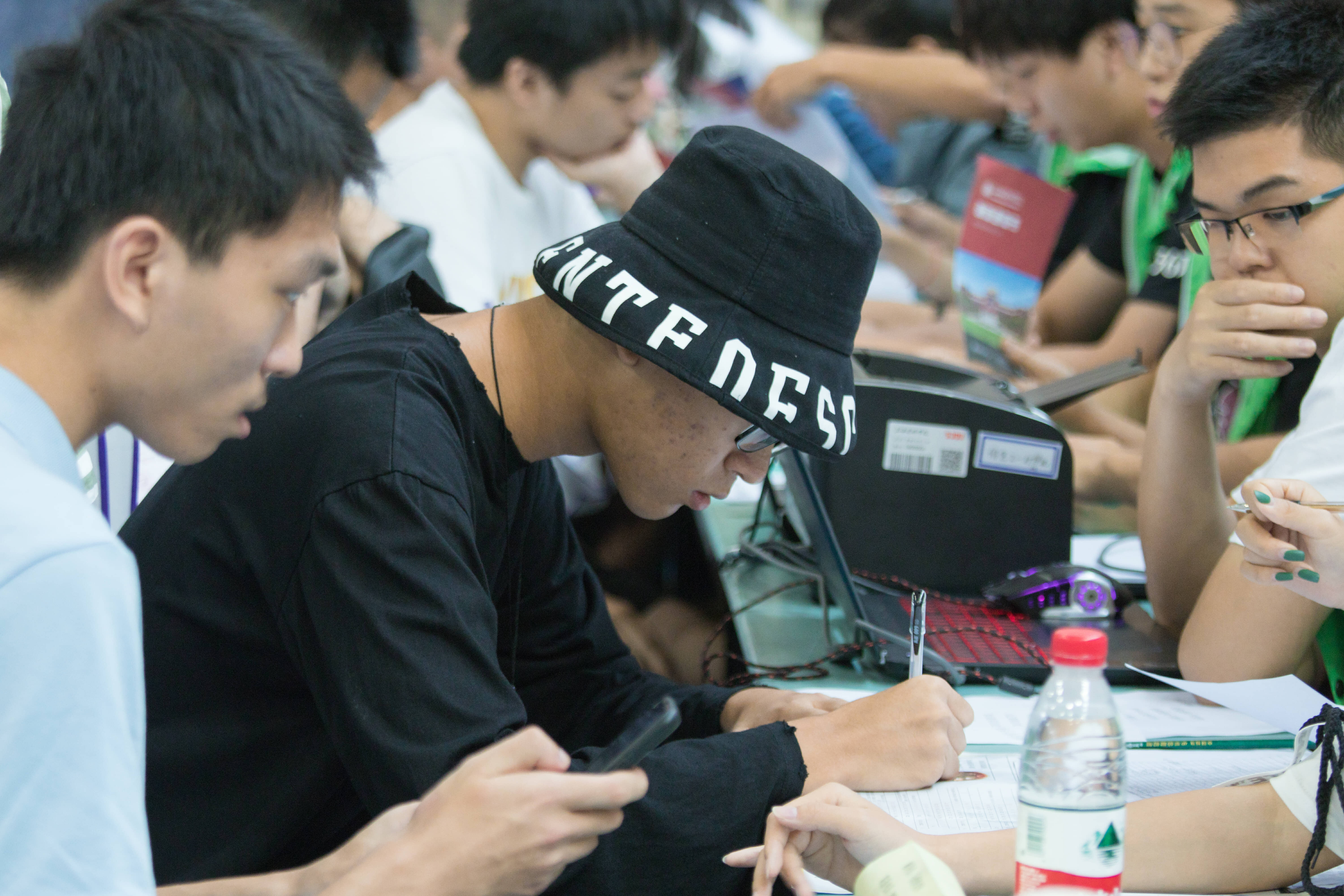 从校外到校内,从报到处到宿舍,穿着各色马甲的志愿者成了穿梭在迎新现场“最靓的仔”。早上7点,由150余名校团委志愿者、百余名二级学院志愿者组成的精干队伍,便开始忙碌而有序接待。