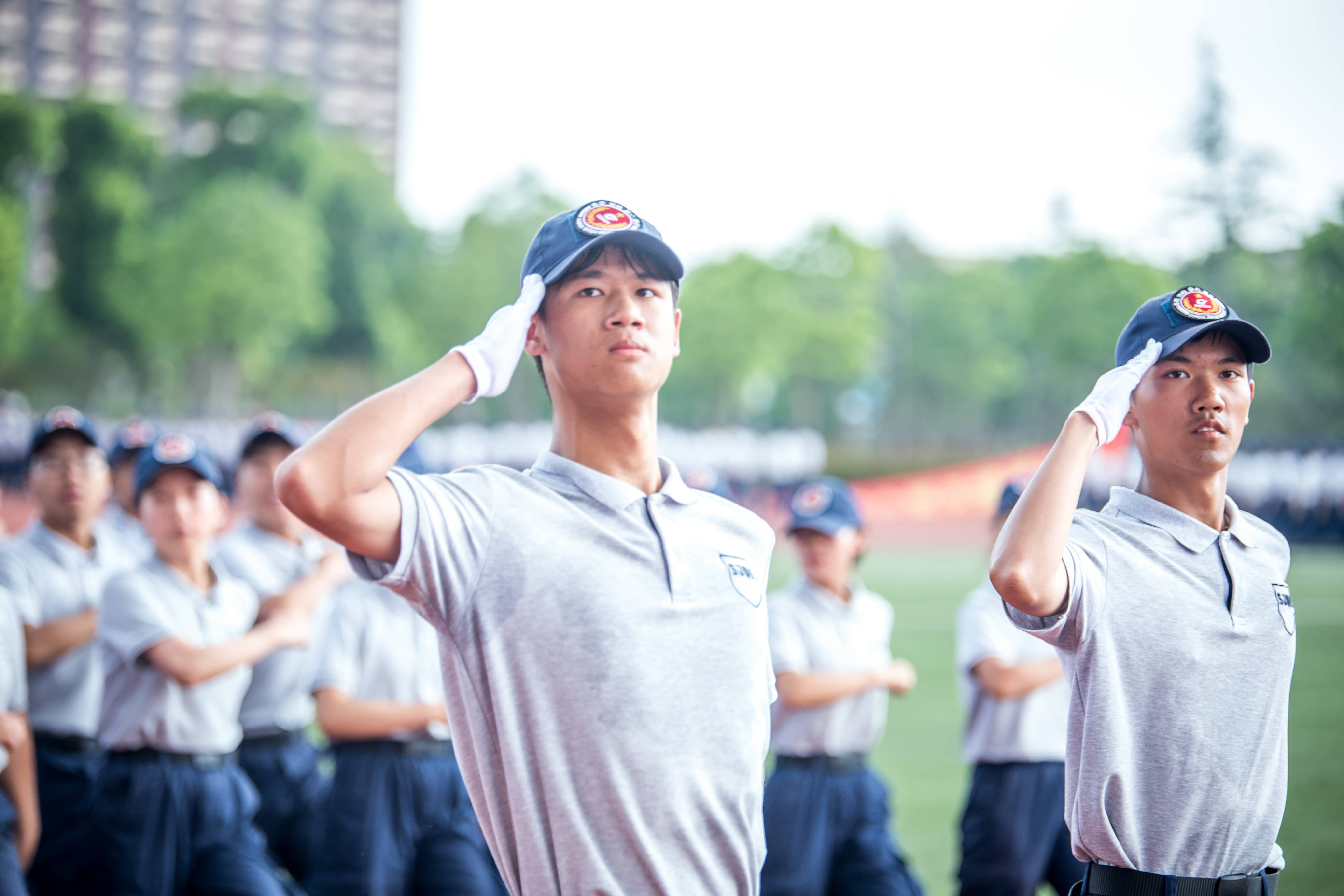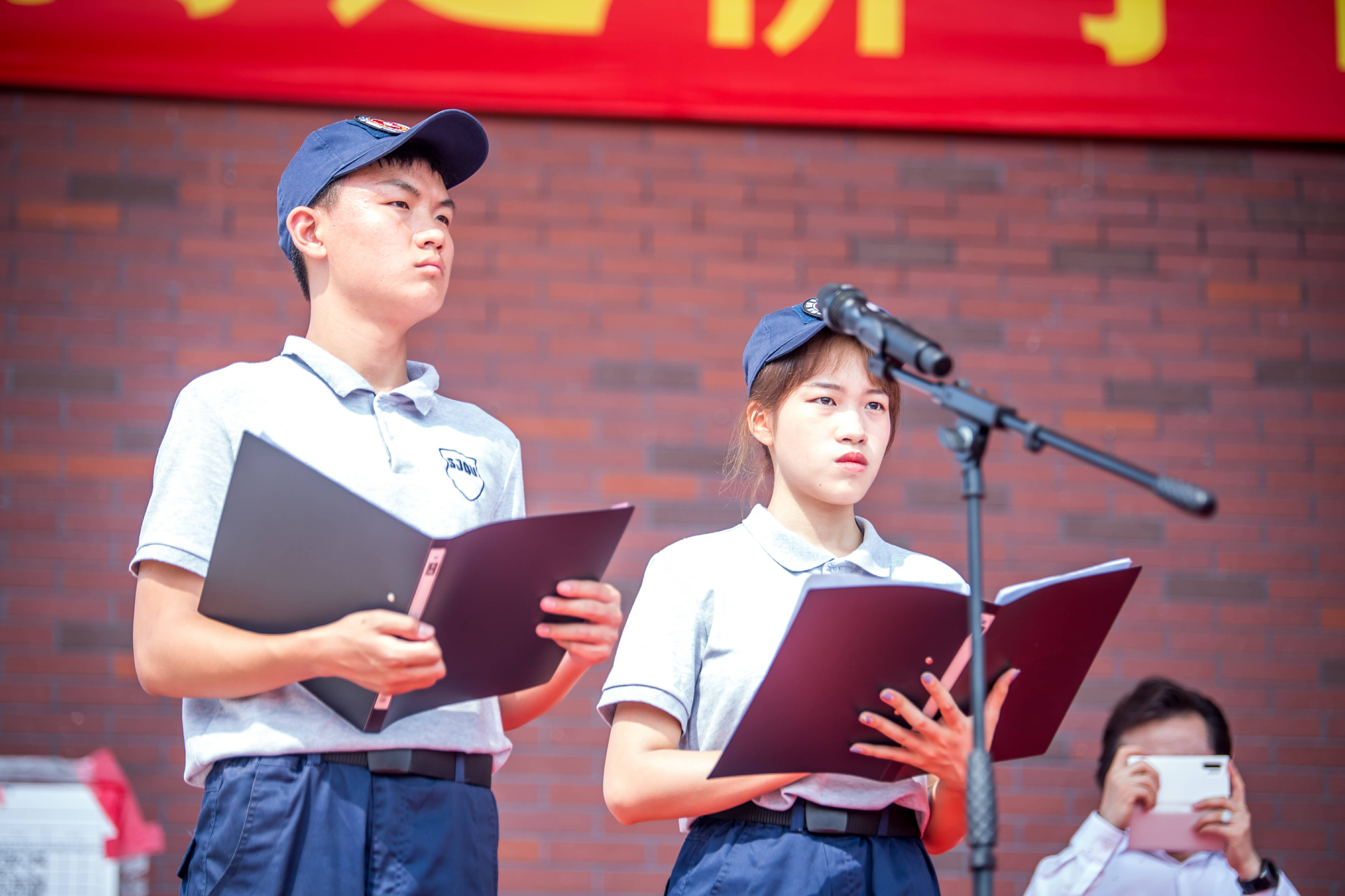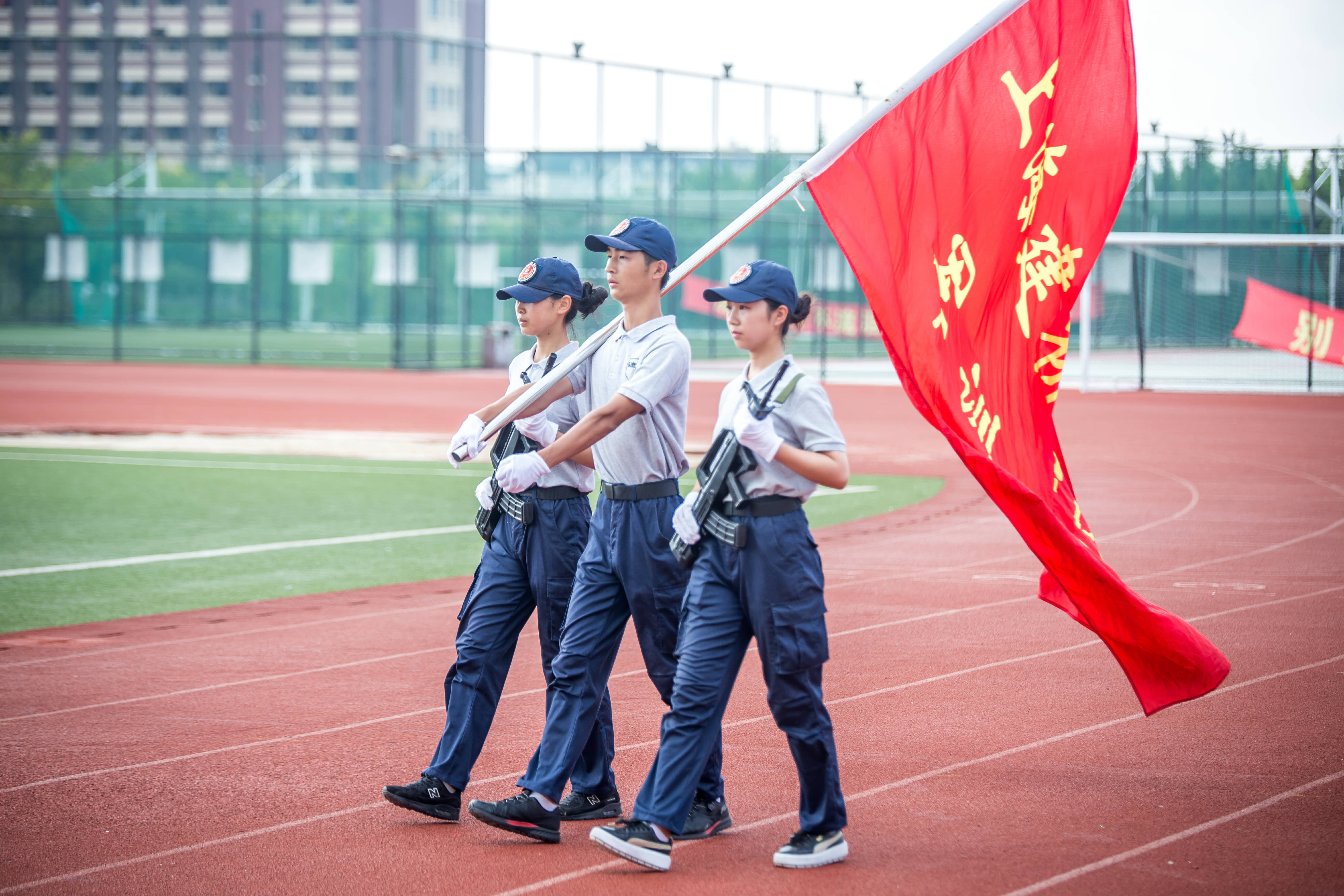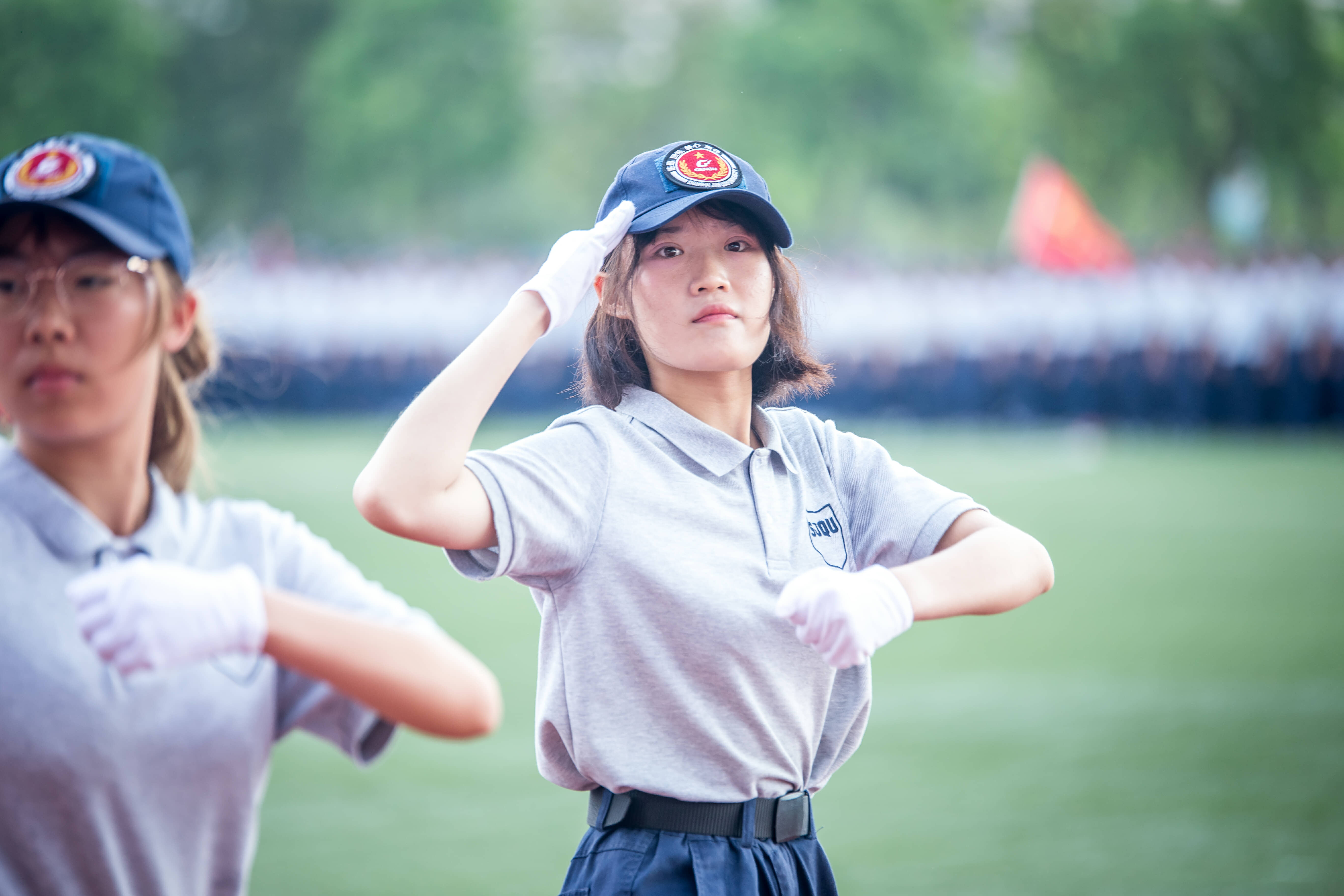 大会在庄严的国歌声中拉开帷幕。首先进行的是迎旅旗仪式,迎旅旗后,校长朱瑞庭宣布阅兵仪式正式开始。标兵就位、分列式,激扬向上的口号,整齐划一的步伐,受检阅方阵依次正步从主席台前走过,他们英姿飒爽的身姿,矫健有力的步伐,展现了新时代建桥学子良好的风貌。军训汇报表演环节,学员列式展演军体拳、匕首操,昂扬的斗志、勇猛的气势,展现了军人般的血性虎气。