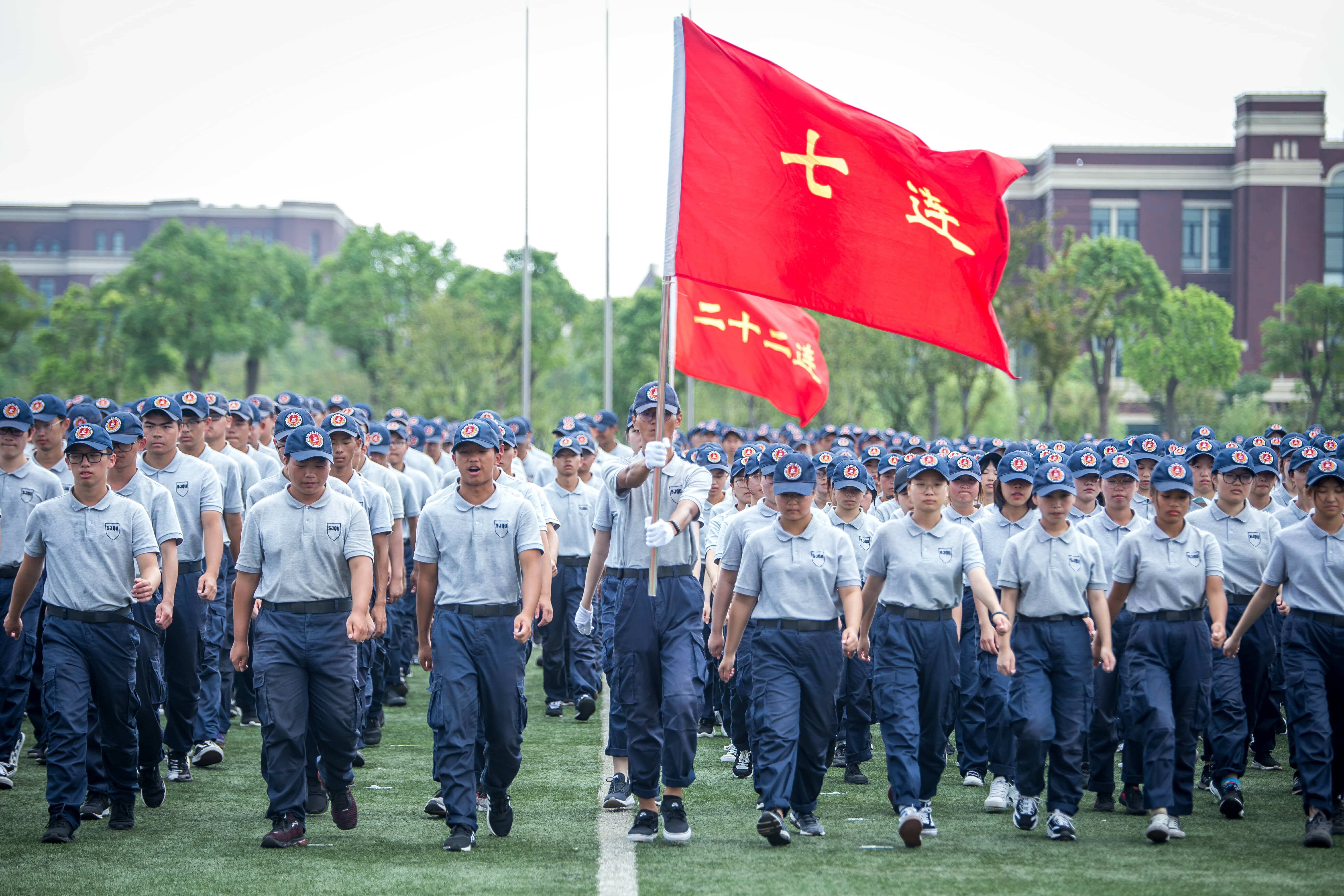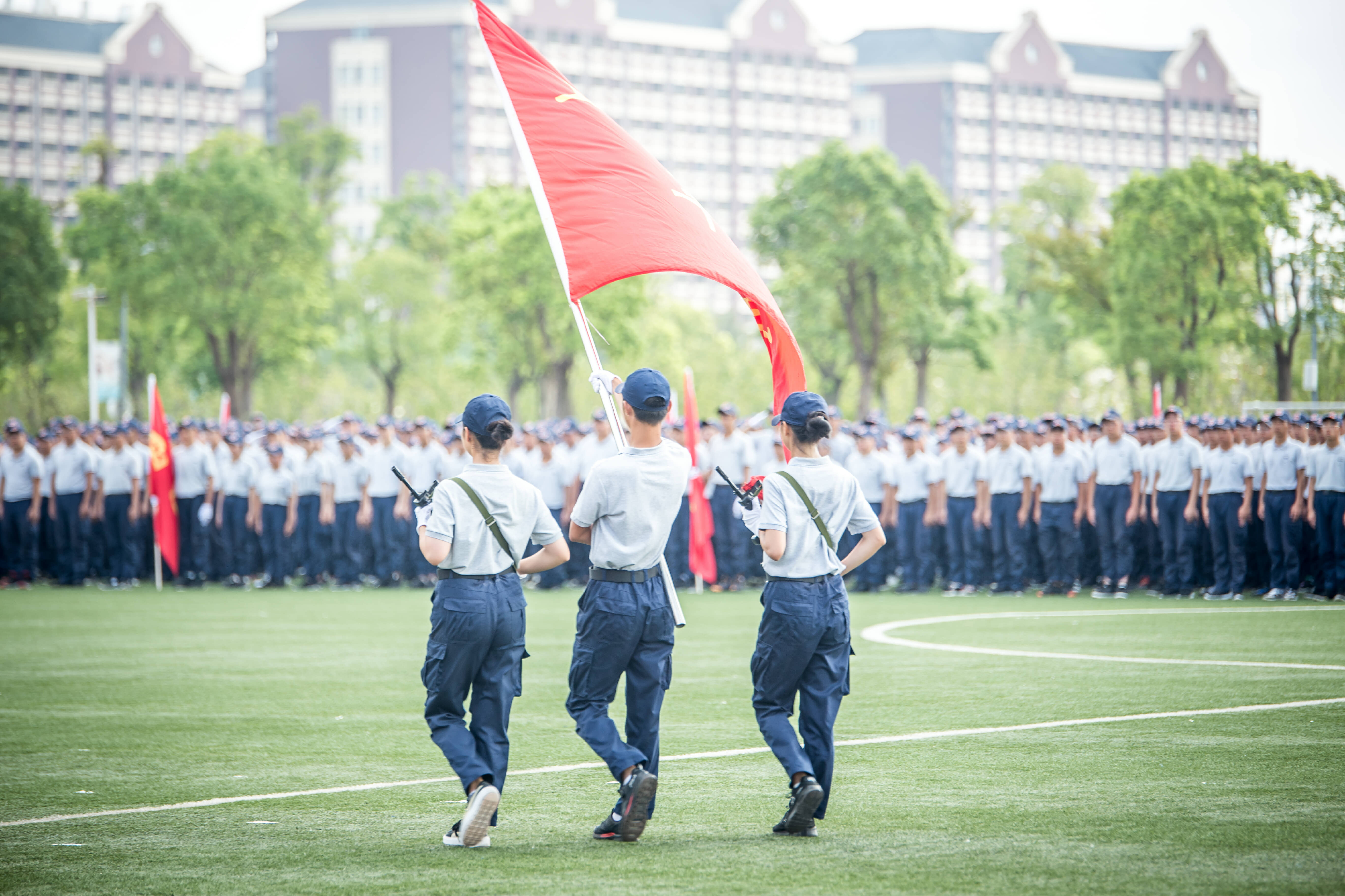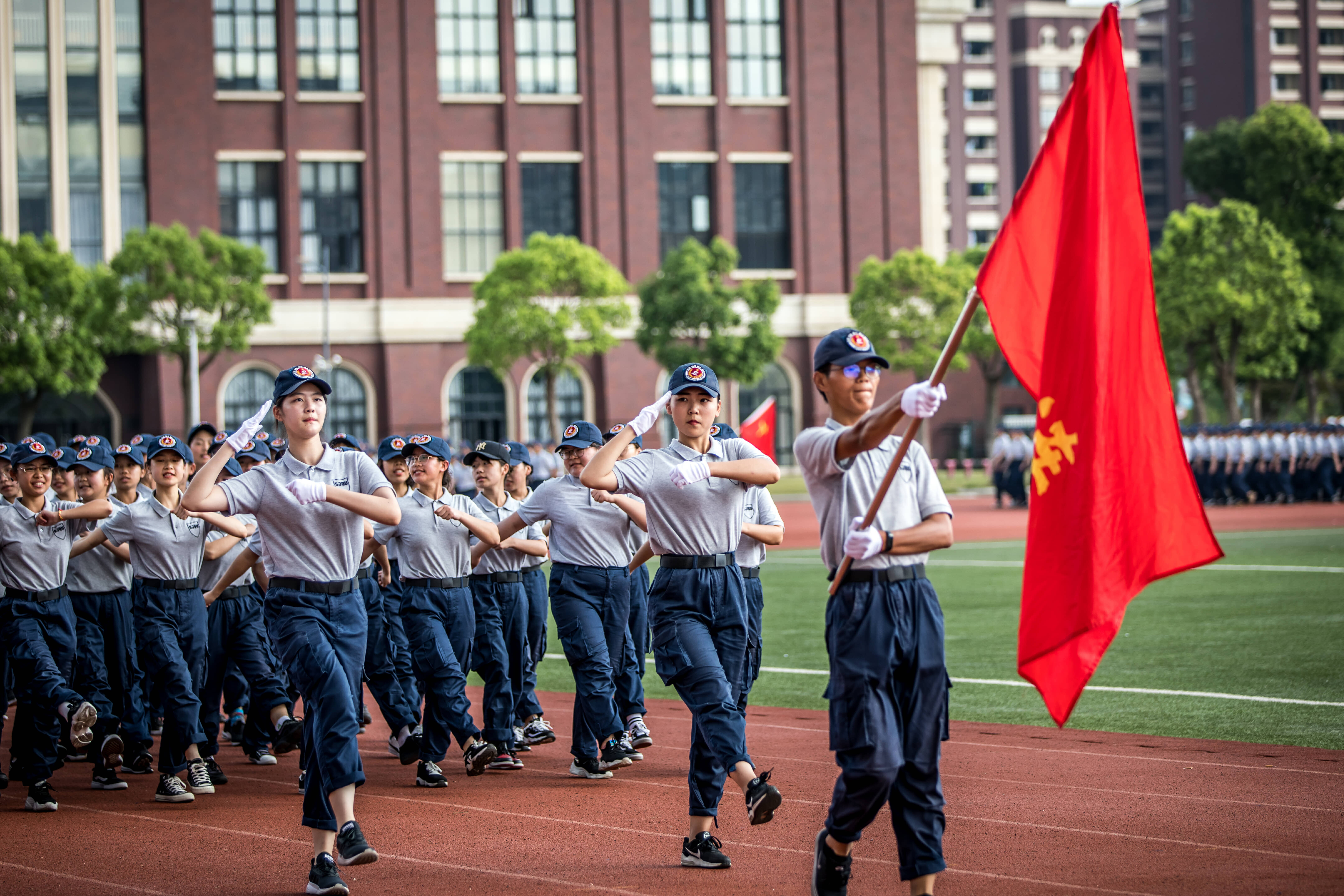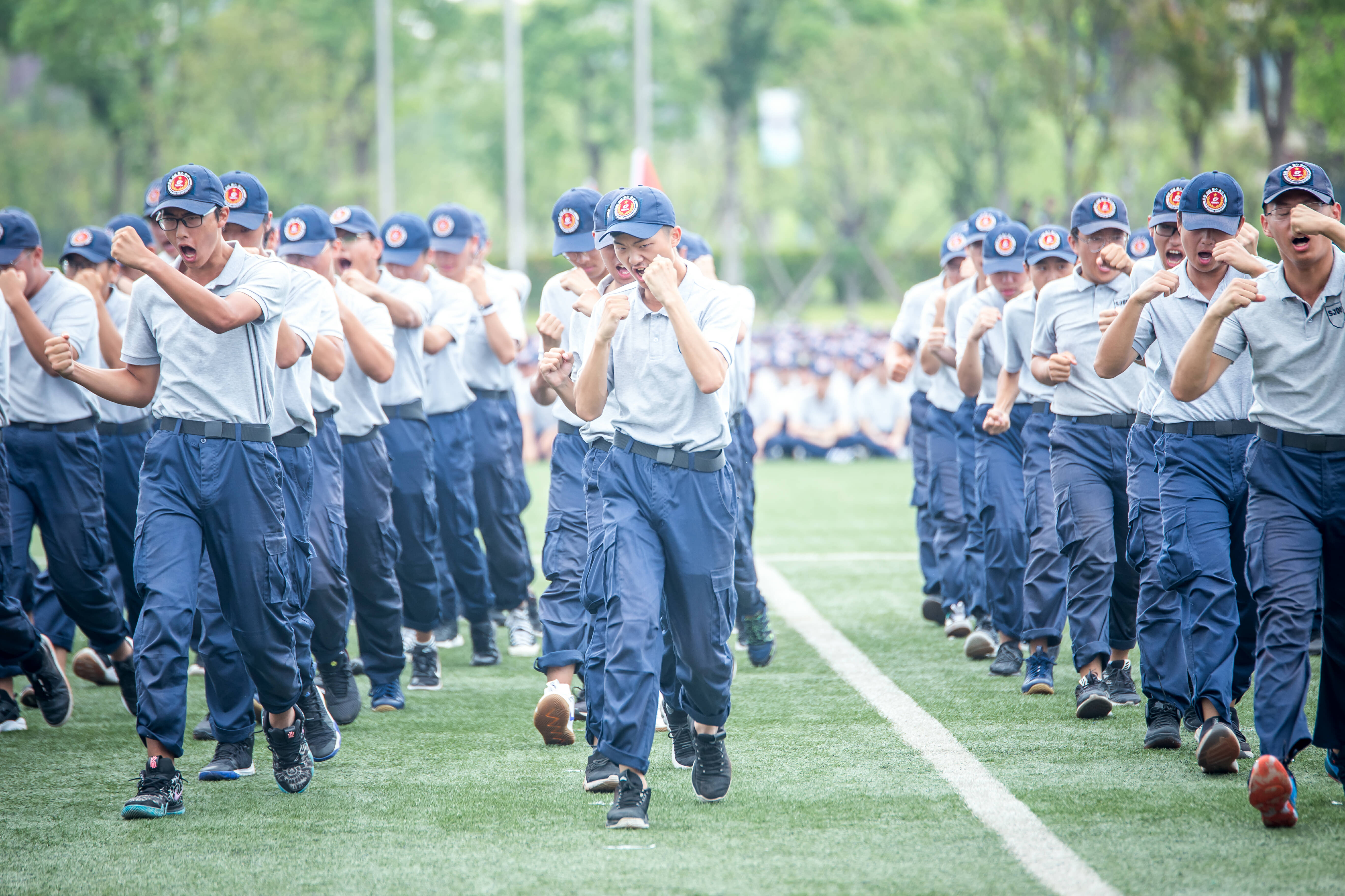 大会在庄严的国歌声中拉开帷幕。首先进行的是迎旅旗仪式,迎旅旗后,校长朱瑞庭宣布阅兵仪式正式开始。标兵就位、分列式,激扬向上的口号,整齐划一的步伐,受检阅方阵依次正步从主席台前走过,他们英姿飒爽的身姿,矫健有力的步伐,展现了新时代建桥学子良好的风貌。军训汇报表演环节,学员列式展演军体拳、匕首操,昂扬的斗志、勇猛的气势,展现了军人般的血性虎气。