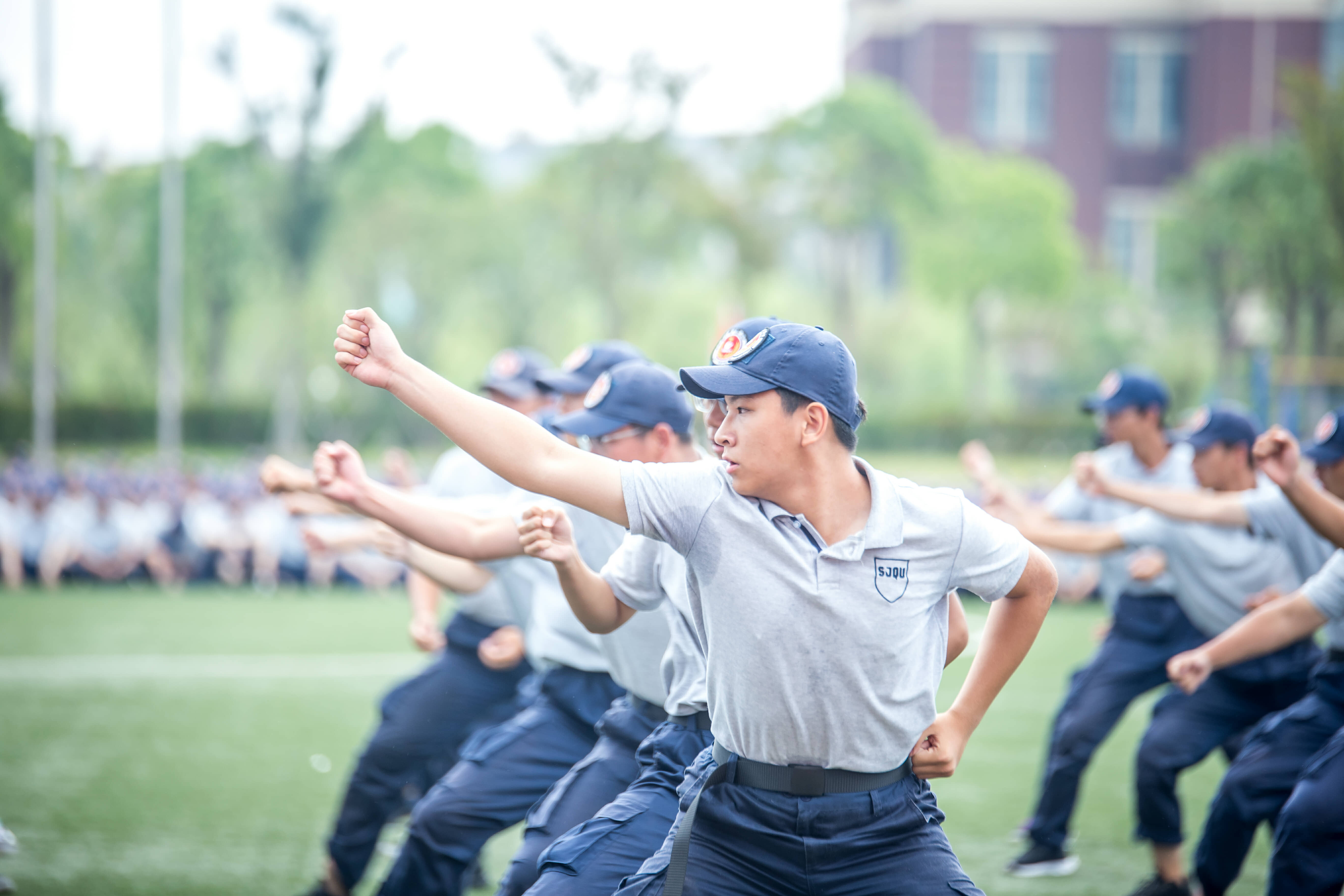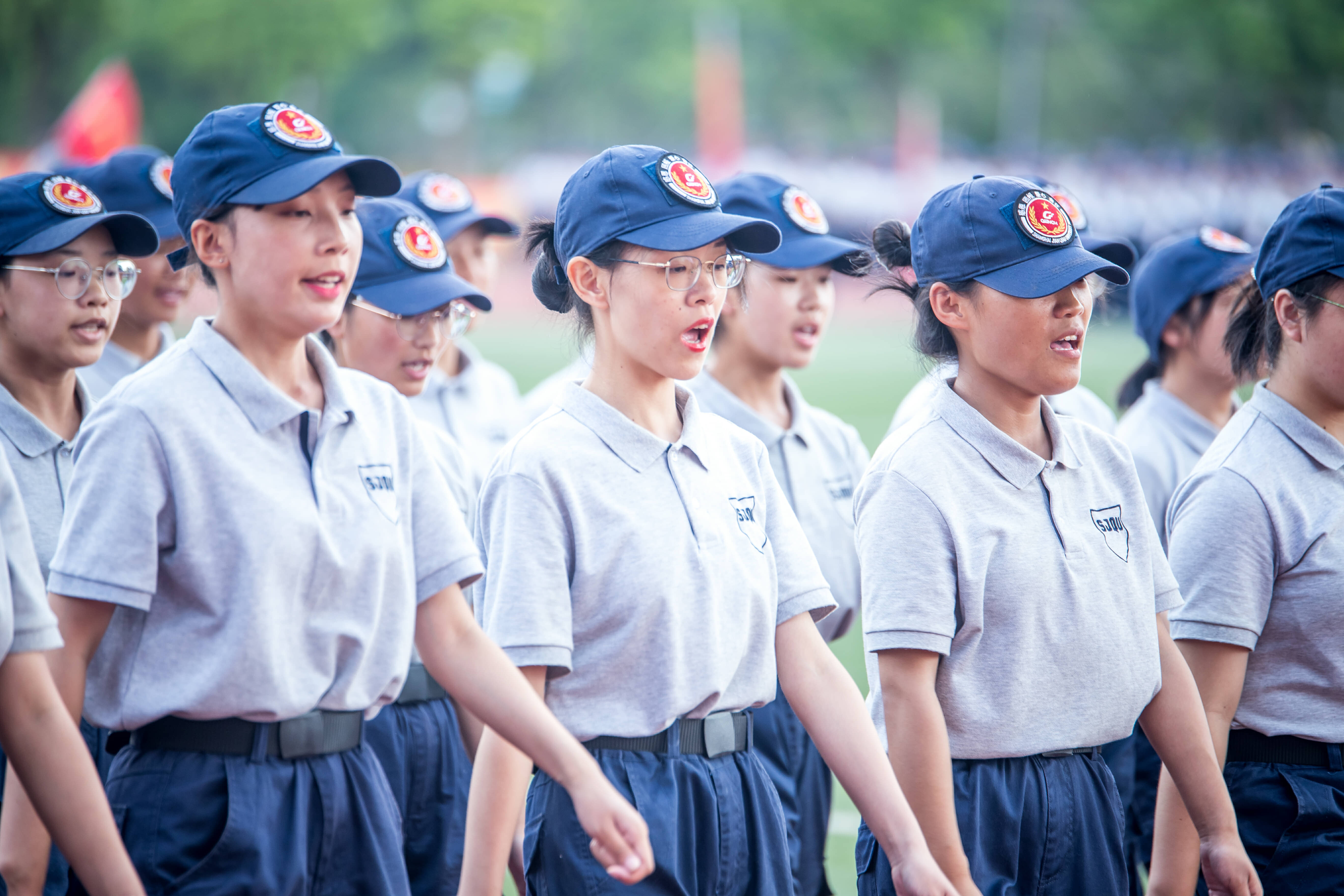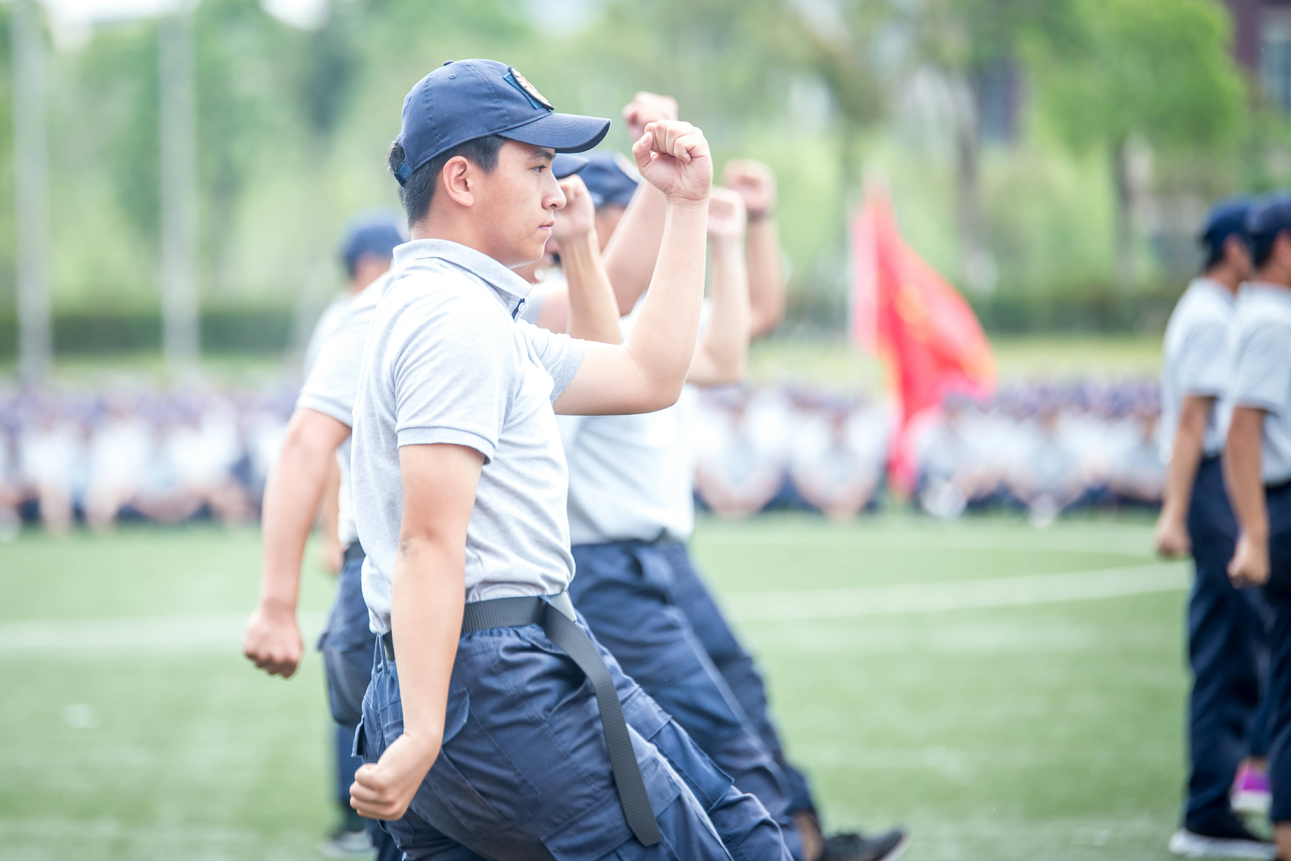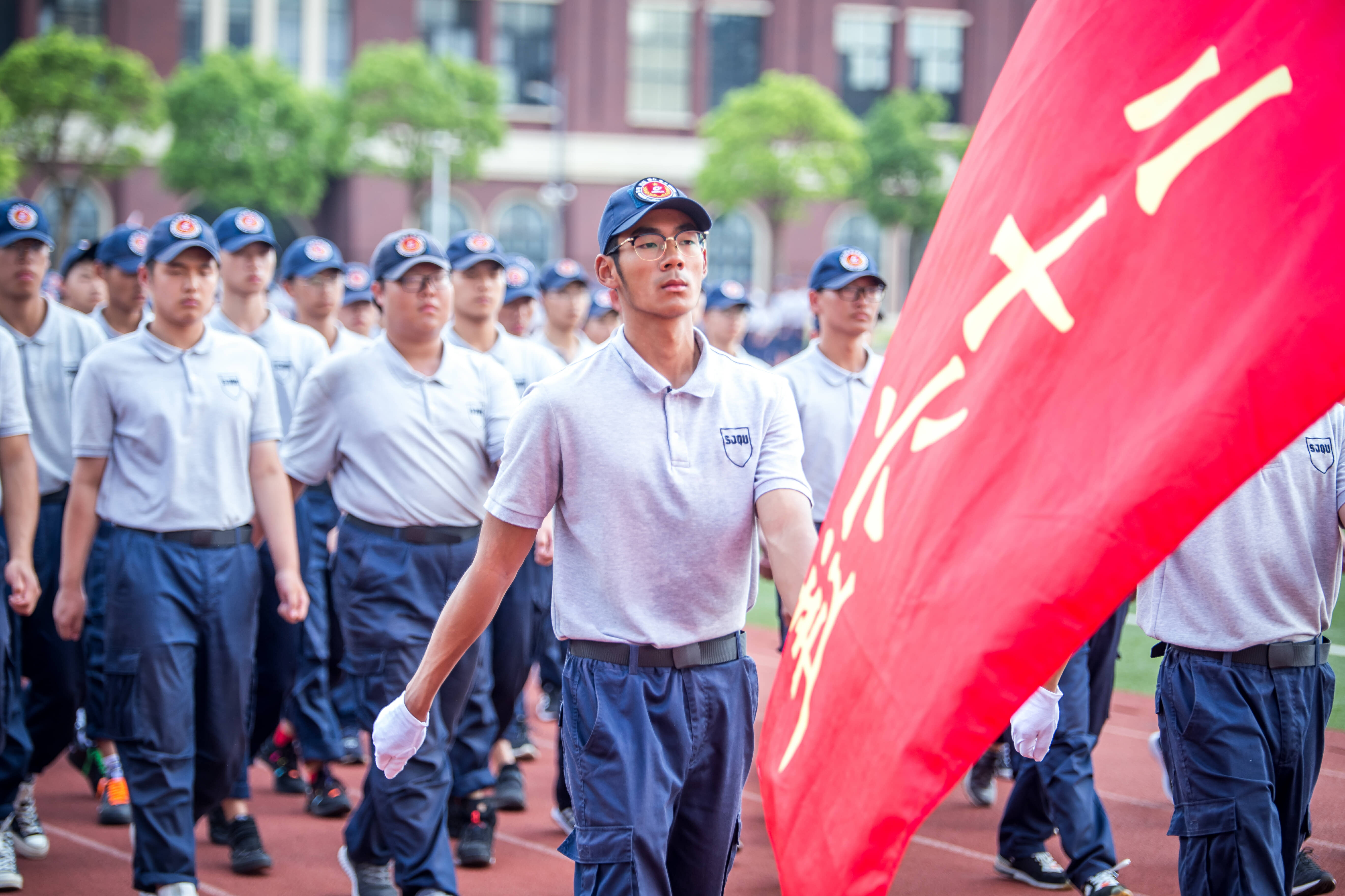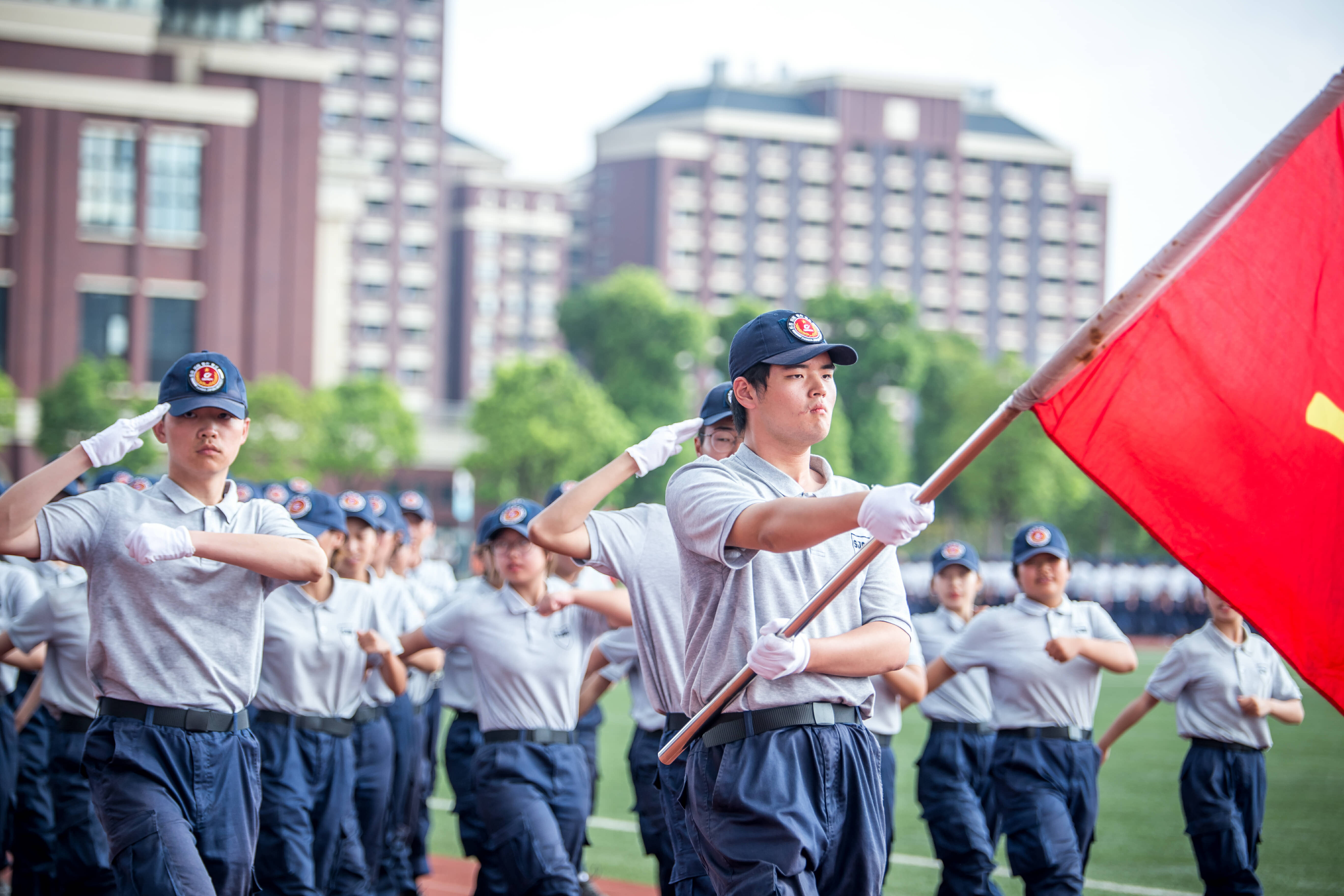 大会在庄严的国歌声中拉开帷幕。首先进行的是迎旅旗仪式,迎旅旗后,校长朱瑞庭宣布阅兵仪式正式开始。标兵就位、分列式,激扬向上的口号,整齐划一的步伐,受检阅方阵依次正步从主席台前走过,他们英姿飒爽的身姿,矫健有力的步伐,展现了新时代建桥学子良好的风貌。军训汇报表演环节,学员列式展演军体拳、匕首操,昂扬的斗志、勇猛的气势,展现了军人般的血性虎气。