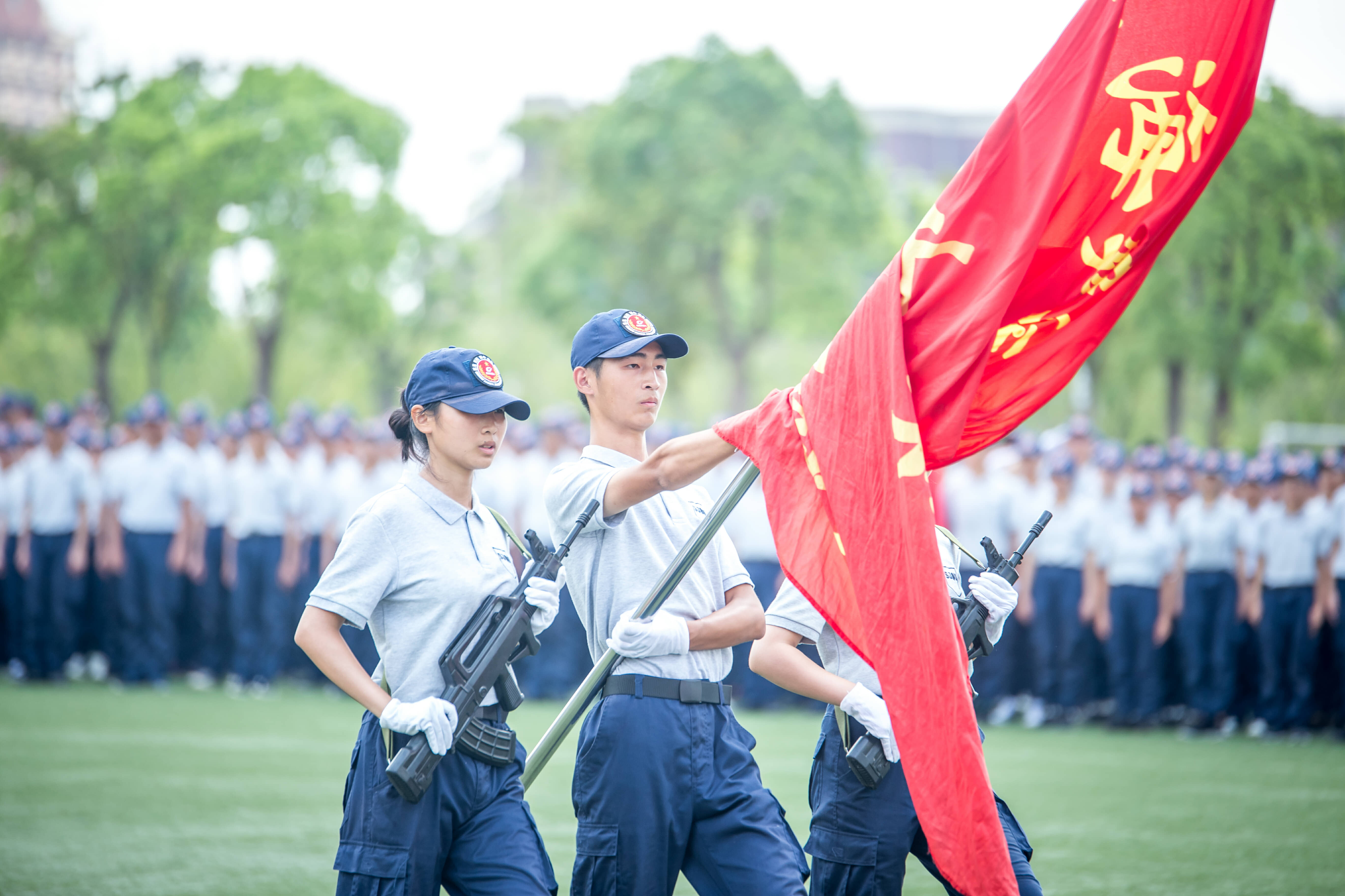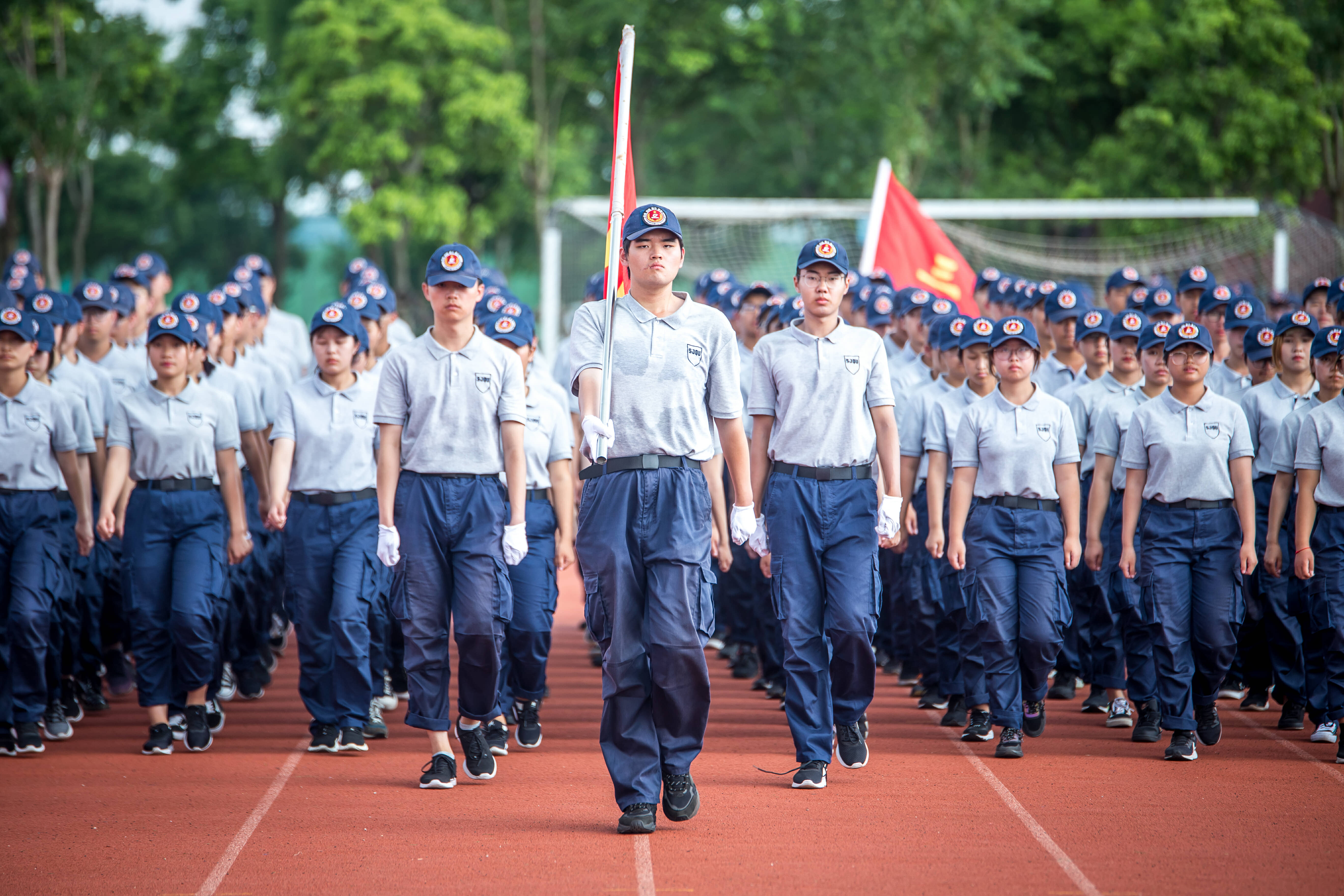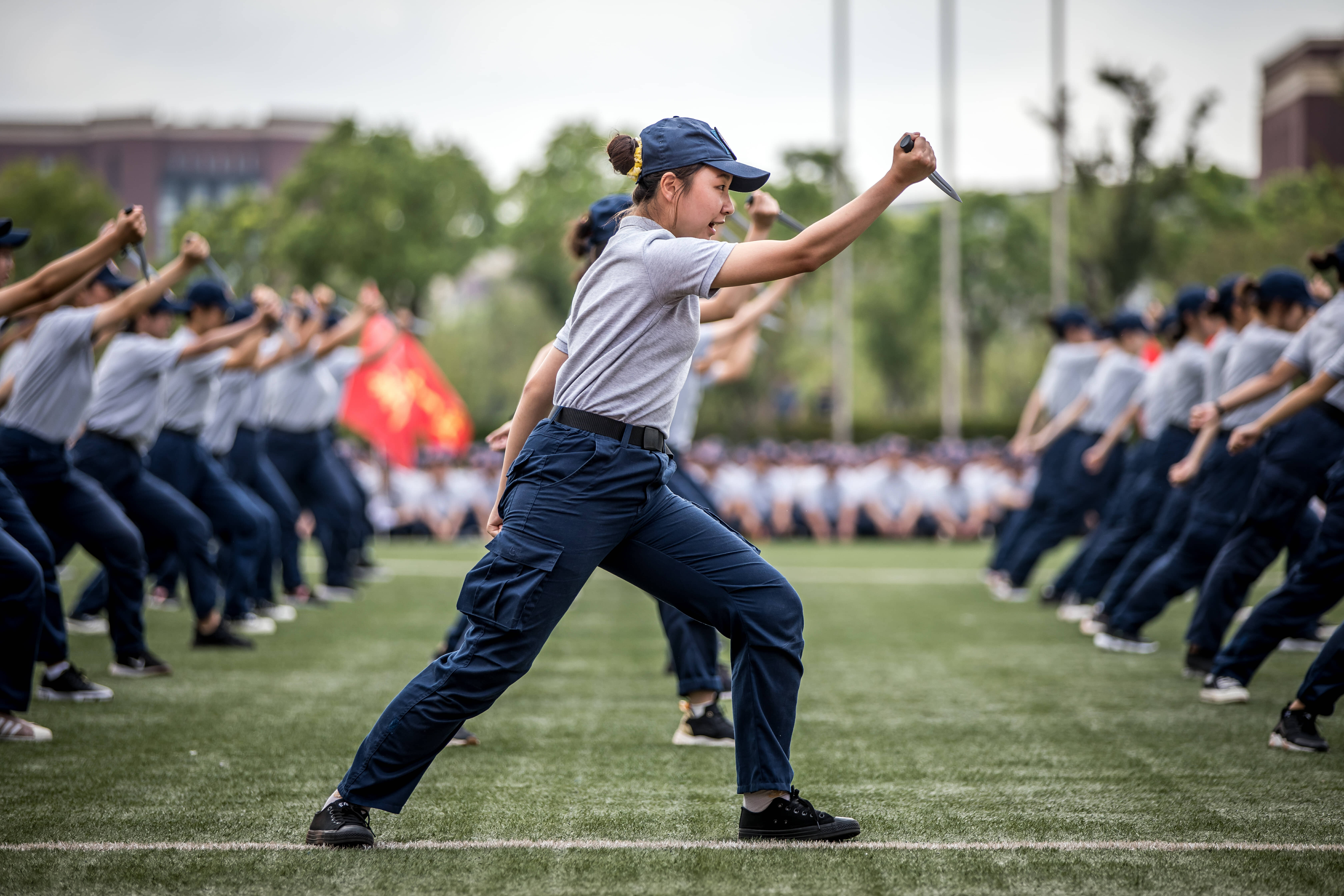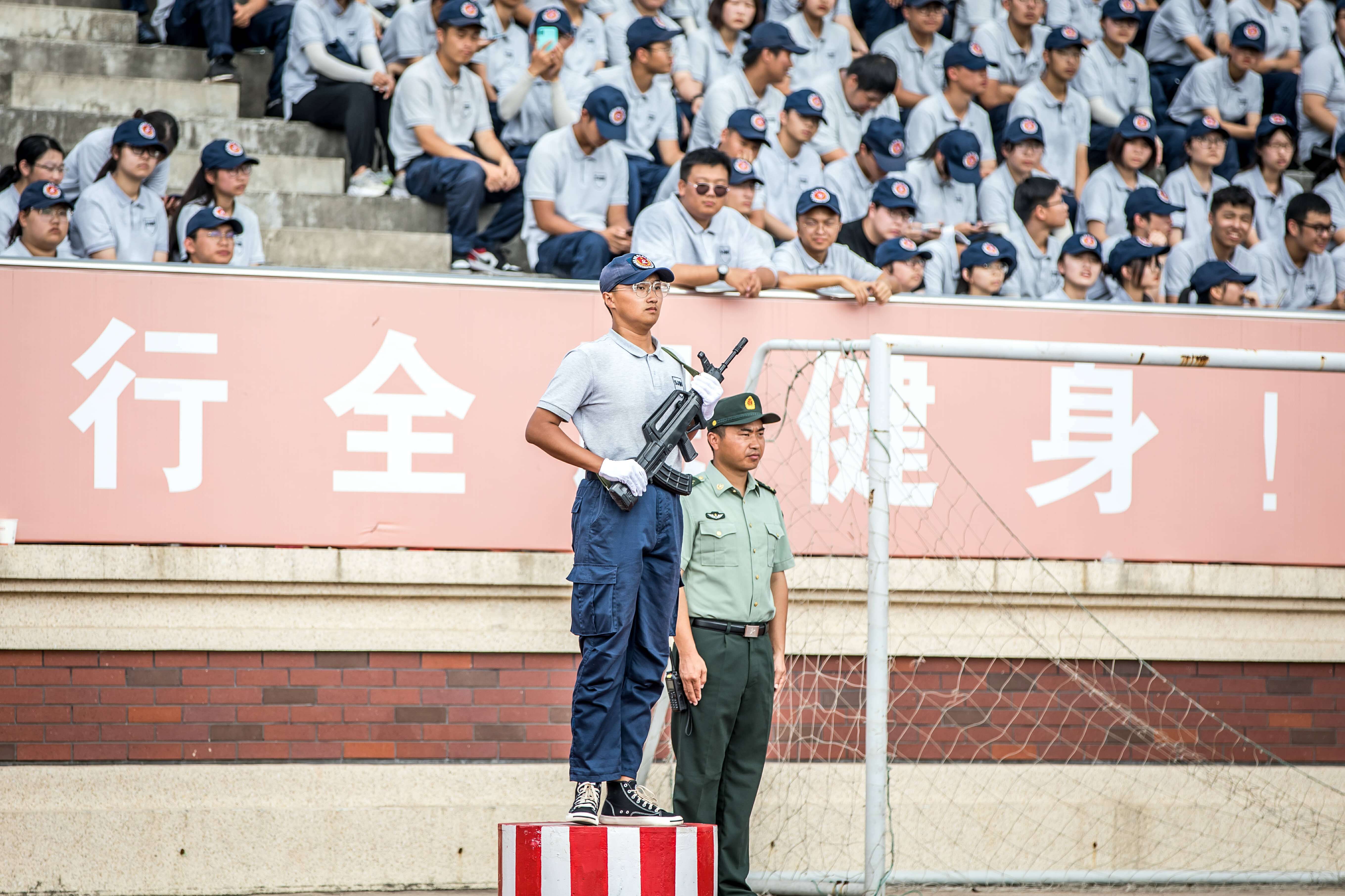 大会在庄严的国歌声中拉开帷幕。首先进行的是迎旅旗仪式,迎旅旗后,校长朱瑞庭宣布阅兵仪式正式开始。标兵就位、分列式,激扬向上的口号,整齐划一的步伐,受检阅方阵依次正步从主席台前走过,他们英姿飒爽的身姿,矫健有力的步伐,展现了新时代建桥学子良好的风貌。军训汇报表演环节,学员列式展演军体拳、匕首操,昂扬的斗志、勇猛的气势,展现了军人般的血性虎气。