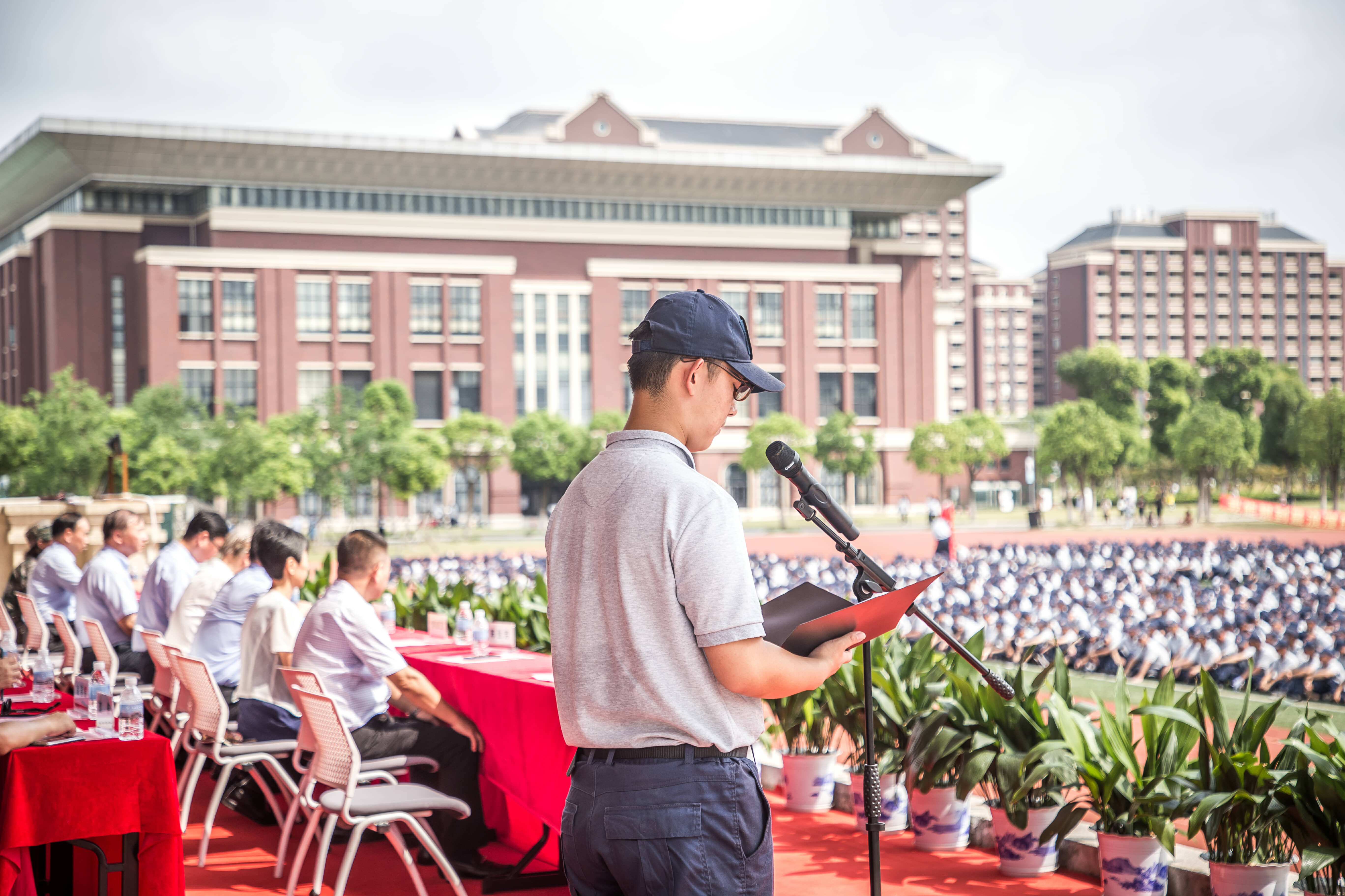 在开学典礼仪式上,2019级机电学院李鹏作为新生代表发言,他感谢十天来教官和老师的辛勤付出,回顾了军训期间学员们不怕苦不怕累、坚持训练的点滴,表示要将军训时精气神带到今后的学习工作中,发扬艰苦奋斗、追求卓越的精神;新闻传播学院院长王梅芳代表教师发言,希望同学们在迎接东方第一缕阳光的美丽校园,能够勤于学习、热爱生活,选择了远方,便只顾风雨兼程,同时也要发扬“感恩、回报、爱心、责任”的校训精神,做一名合格新时代的大学生。
