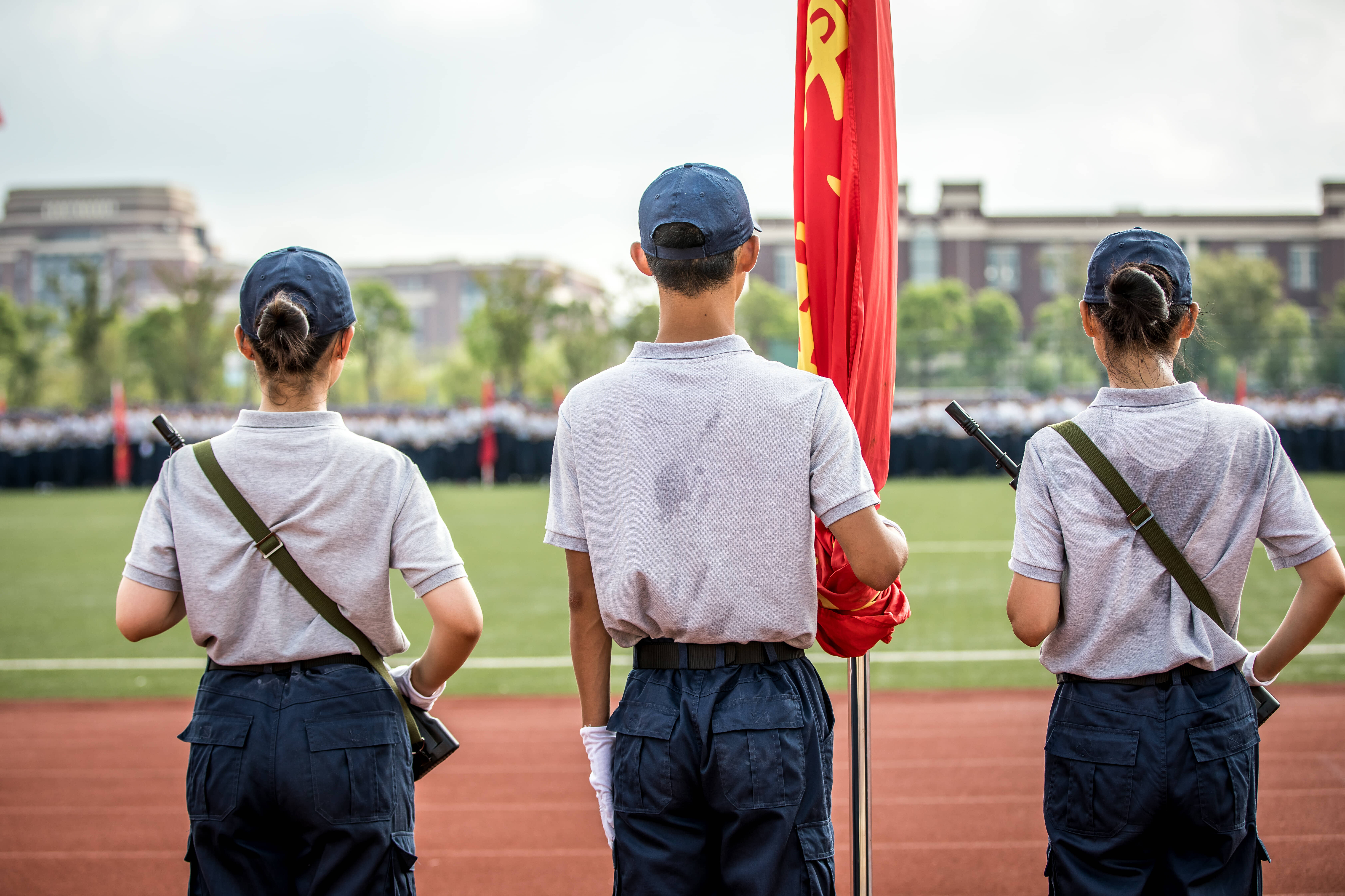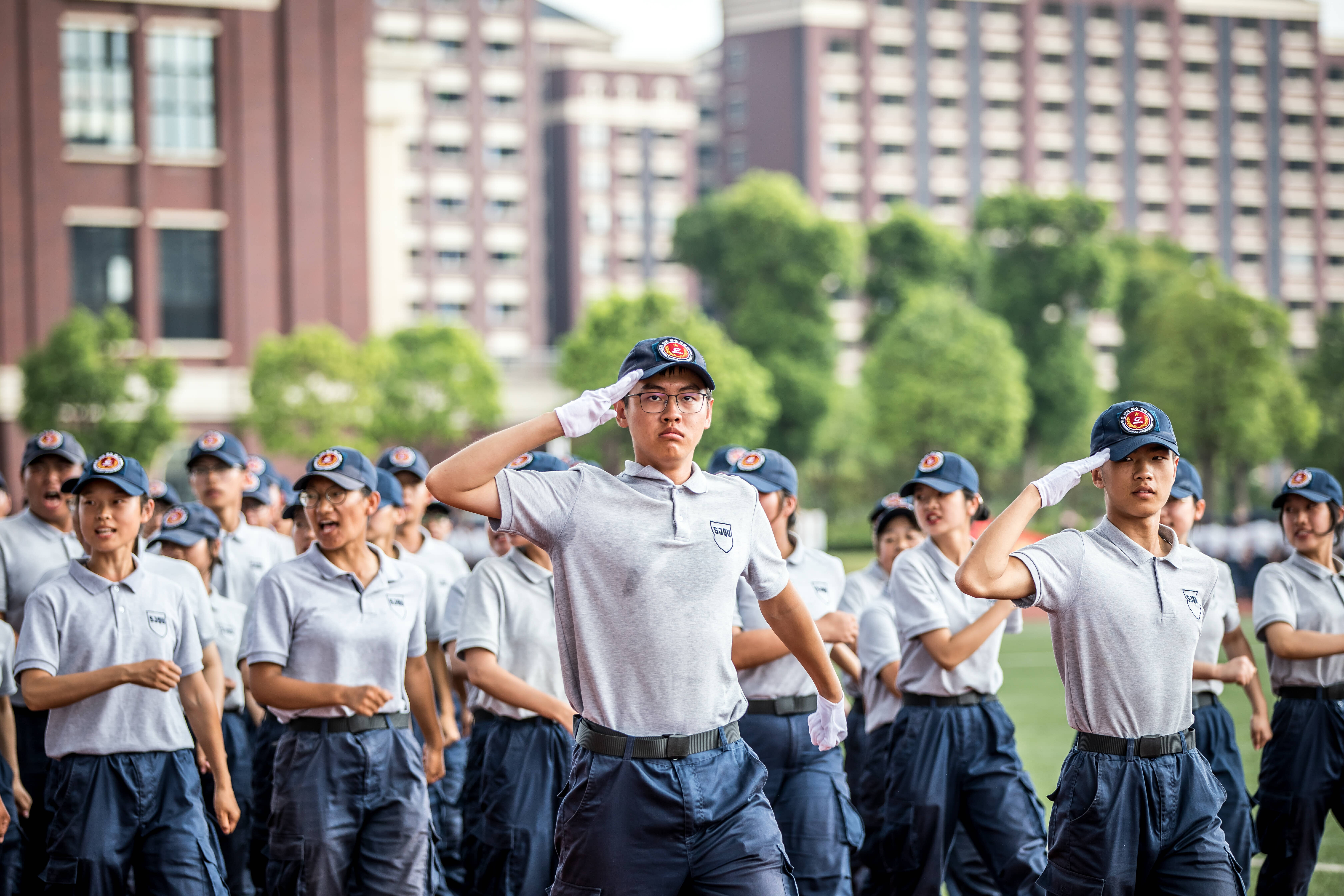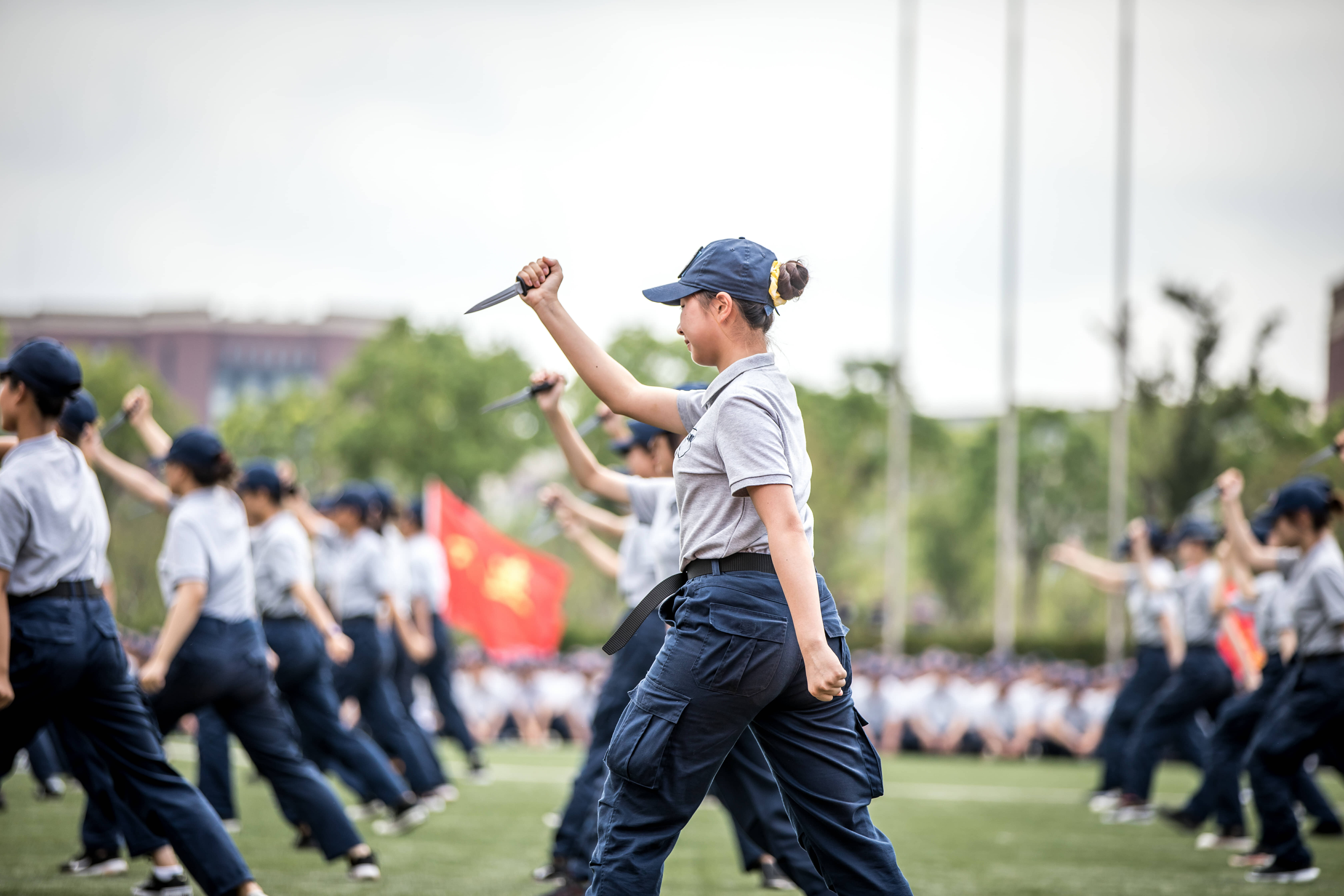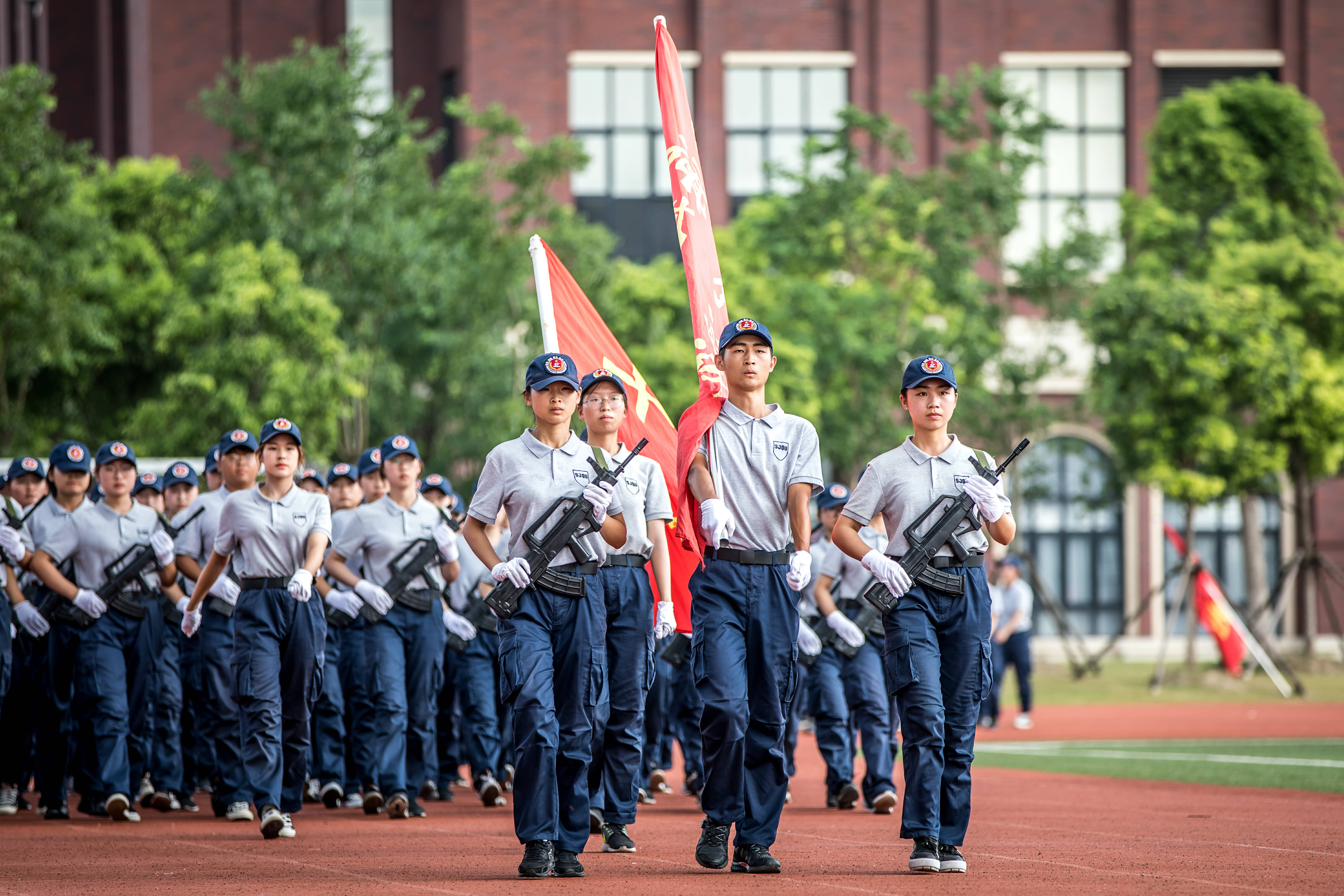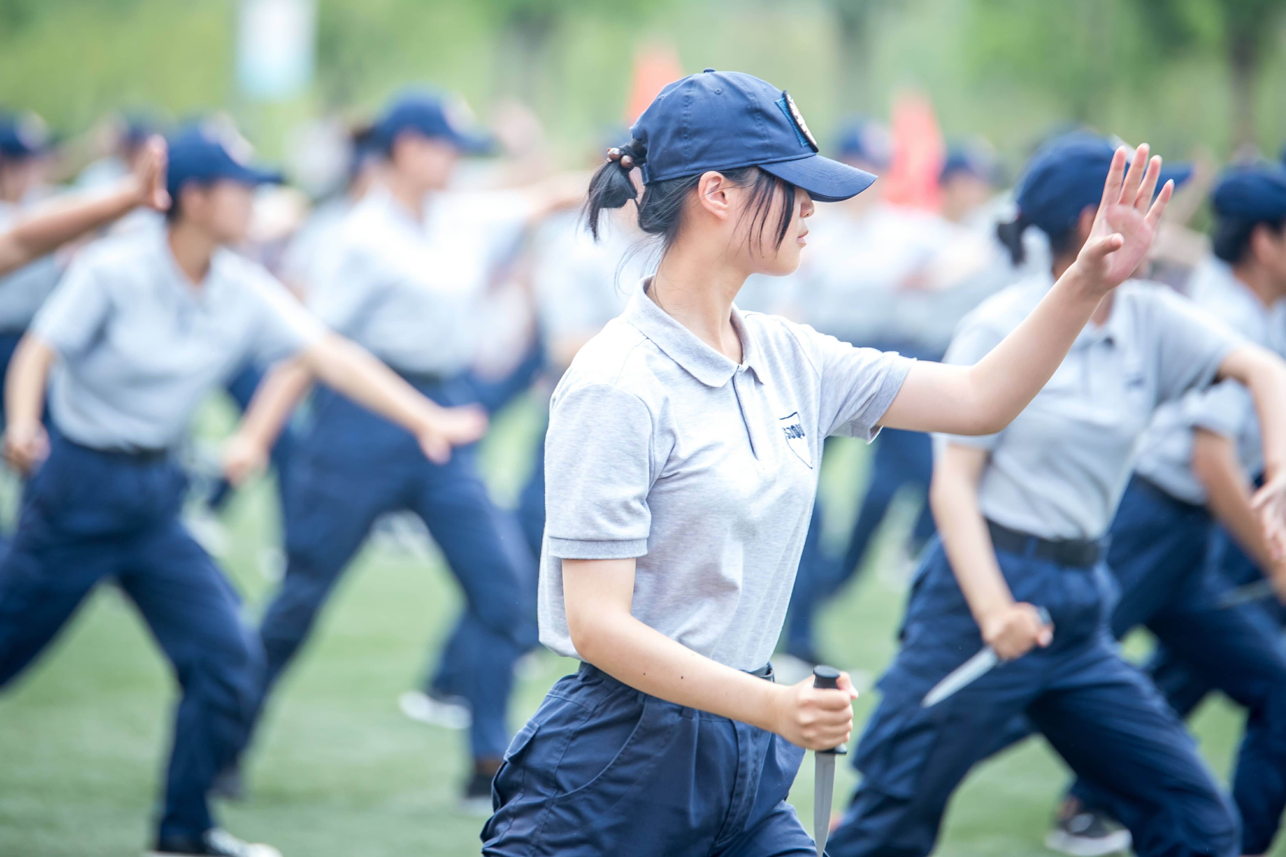 大会在庄严的国歌声中拉开帷幕。首先进行的是迎旅旗仪式,迎旅旗后,校长朱瑞庭宣布阅兵仪式正式开始。标兵就位、分列式,激扬向上的口号,整齐划一的步伐,受检阅方正依次正步从主席台前走过,他们英姿飒爽的身姿,矫健有力的步伐,展现了新时代建桥学子良好的风貌。军训汇报表演环节,学员列式展演军体拳、匕首操,昂扬的斗志、勇猛的气势,展现了军人般的血性虎气。