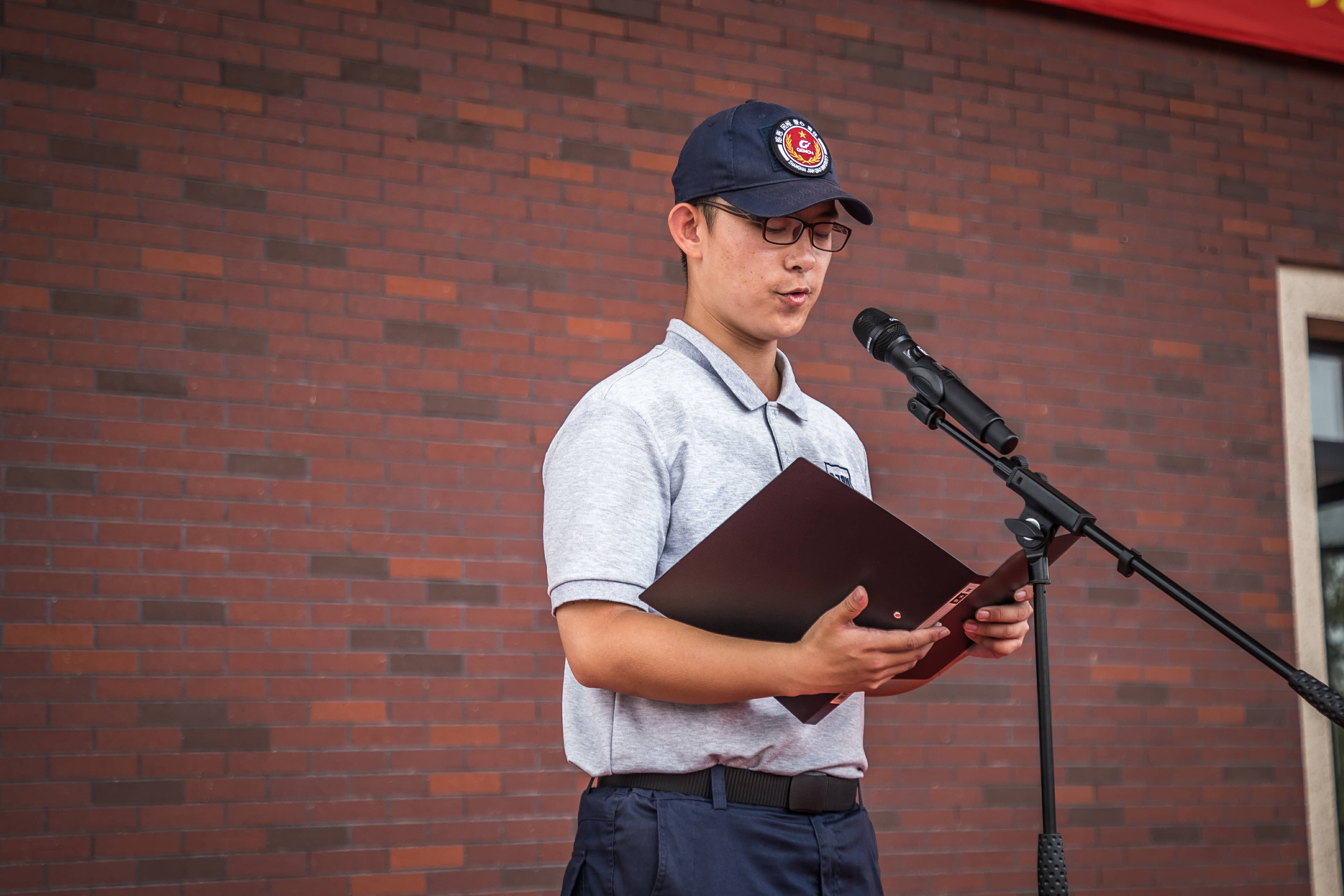 在开学典礼仪式上,2019级机电学院李鹏作为新生代表发言,他感谢十天来教官和老师的辛勤付出,回顾了军训期间学员们不怕苦不怕累、坚持训练的点滴,表示要将军训时精气神带到今后的学习工作中,发扬艰苦奋斗、追求卓越的精神;新闻传播学院院长王梅芳代表教师发言,希望同学们在迎接东方第一缕阳光的美丽校园,能够勤于学习、热爱生活,选择了远方,便只顾风雨兼程,同时也要发扬“感恩、回报、爱心、责任”的校训精神,做一名合格新时代的大学生。