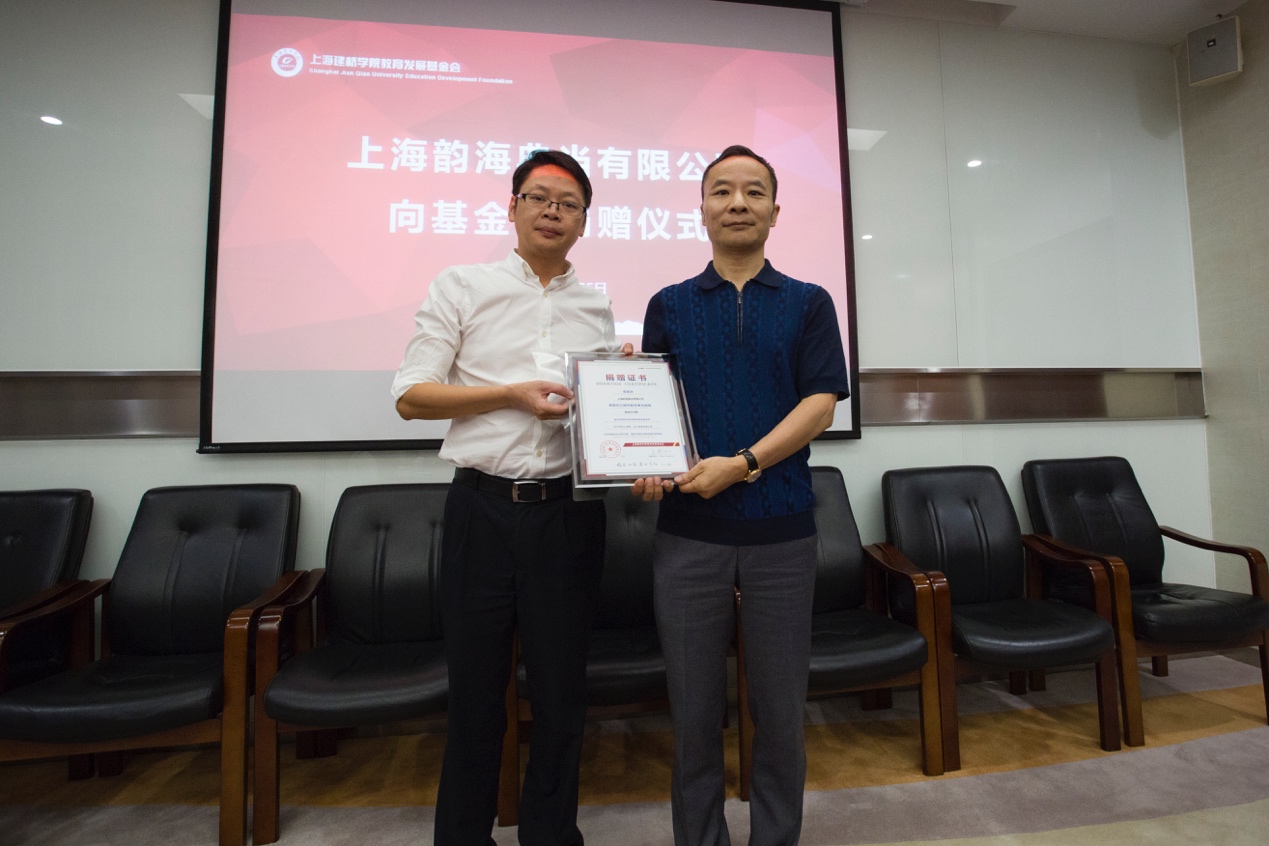 9月25日下午,“韵海助学金”捐赠仪式在图书馆S417会议室举行。上海韵海典当有限公司董事长顾财明、总经理顾华君,上海建桥学院董事长周星增,上海建桥学院教育发展基金会理事长王邦永、秘书长周琦玢,学生资助中心主任施红霞及受助学生参加了本次签约仪式。仪式由校长助理、学生处处长陈伟主持。