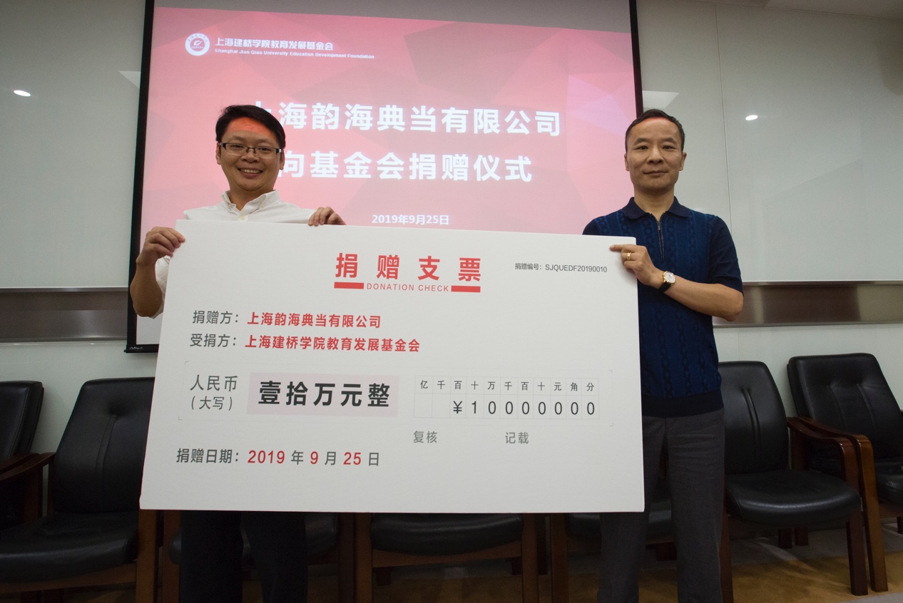 “韵海助学金”由上海韵海典当有限公司董事长顾财明先生发起捐赠。从2019级5300多名大一新生中遴选出家庭特别困难的5名学生,每年为他们发放2万元助学金,帮助他们减轻经济负担。本次捐赠累计金额达40万元。