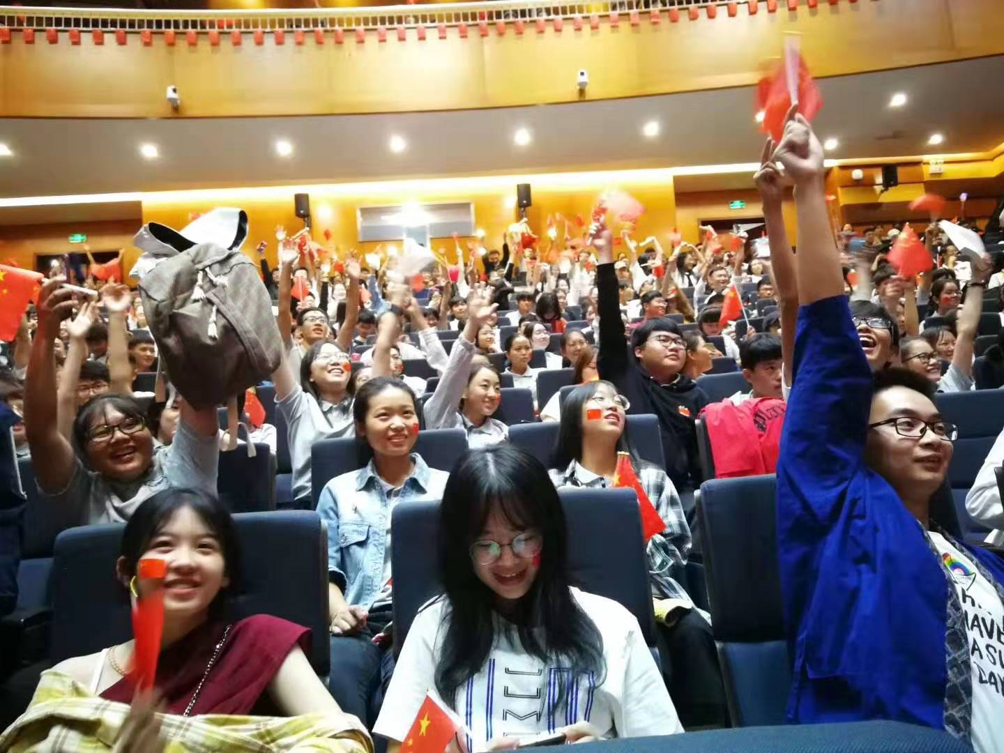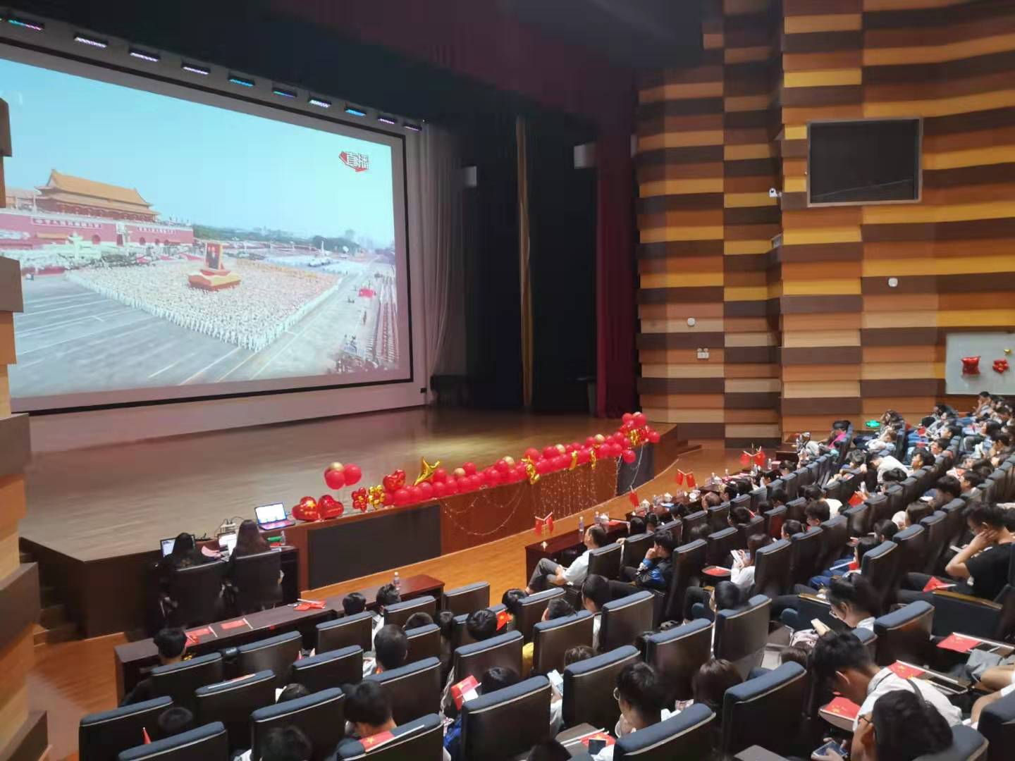 校领导朱瑞庭、江彦桥、夏雨、陈伟,学校“不忘初心、牢记使命”主题教育领导小组办公室成员及留校师生在大礼堂集中观看庆祝中华人民共和国成立70周年大会、阅兵式直播,共同为祖国庆生,为祖国自豪,为祖国祝福。直播结束后,校领导分成两组与师生交流座谈,就观看庆祝大会展开了热烈的交流讨论。