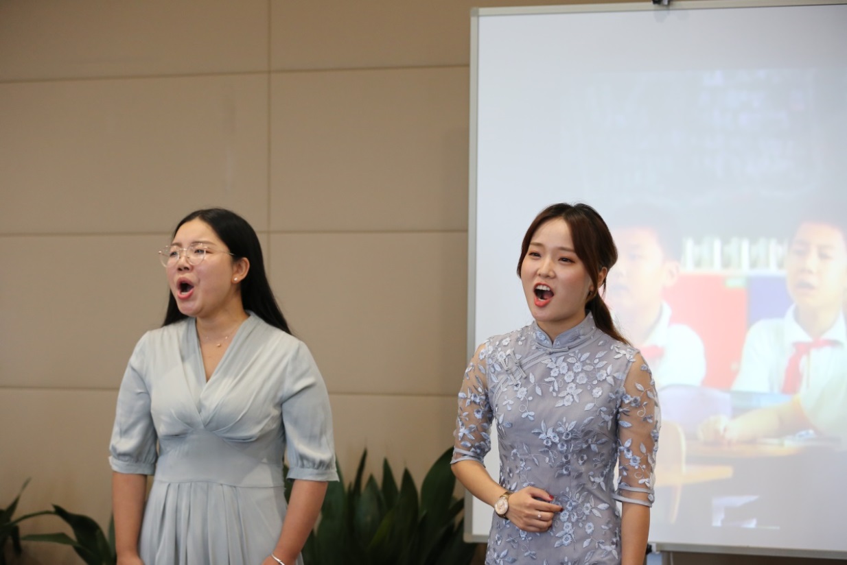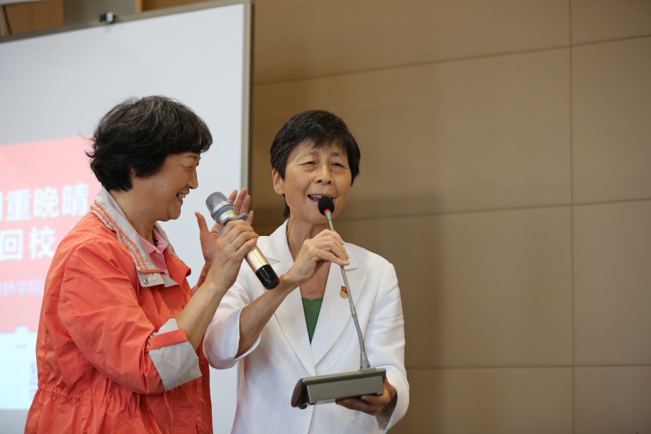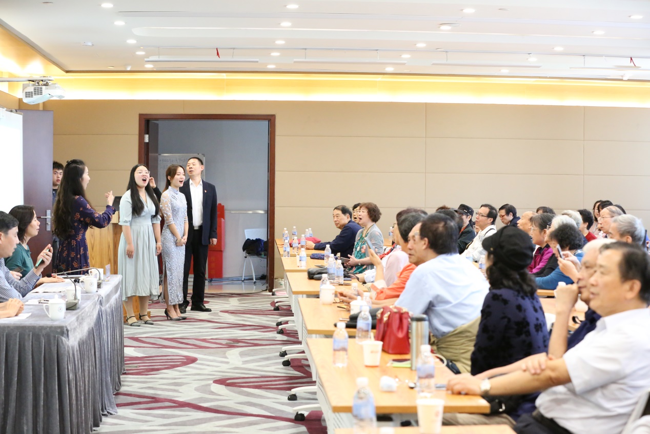 为了增加节日氛围,当天活动中,校工会还组织本校青年教师与老同志们联欢,陈莉、卞浩、谢丹萍、孙戈老师分别为老同志们演唱了歌曲《为祖国干杯》、《长大后我就成了你》,曼妙、甜美、高亢的歌声声声入耳,引得老同志们掌声阵阵,会场上气氛轻松活跃,发自内心的喜悦笑容洋溢在每位老同志的脸上。原工会副主席赵启荣代表老同志们表演了数来宝《祖国变得富又强》,声情并茂地表演把大家带回了青涩的纯真年代,赞叹中华人民共和国成立以来的飞速发展,讴歌伟大的新时代,将现场气氛推向了高潮。副董事长蒋威宜被现场热烈的气氛感染,主动请缨用一曲《革命人永远是年轻》表达了对老同志们的美好祝愿。随后全体老同志们共同歌唱《我和我的祖国》,句句经典深情吟唱,爱国之情溢于言表。