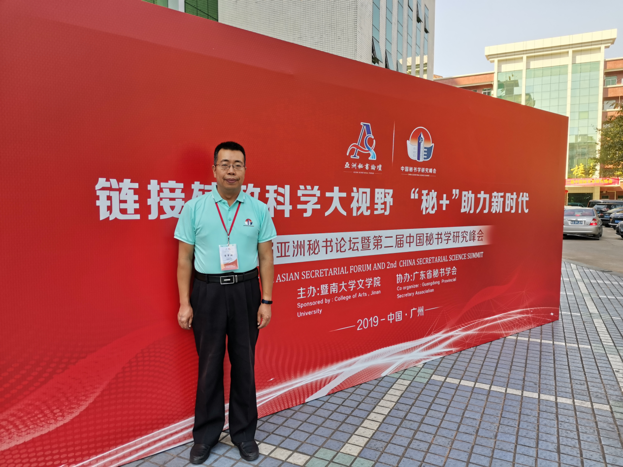 2019年11月21日至24日,新闻传播学院秘书系教师参加了暨南大学文学院主办的首届亚洲秘书论坛暨第二届中国秘书学研究峰会,秘书系主任徐磊教授、专业教师宋军朋老师应邀出席。