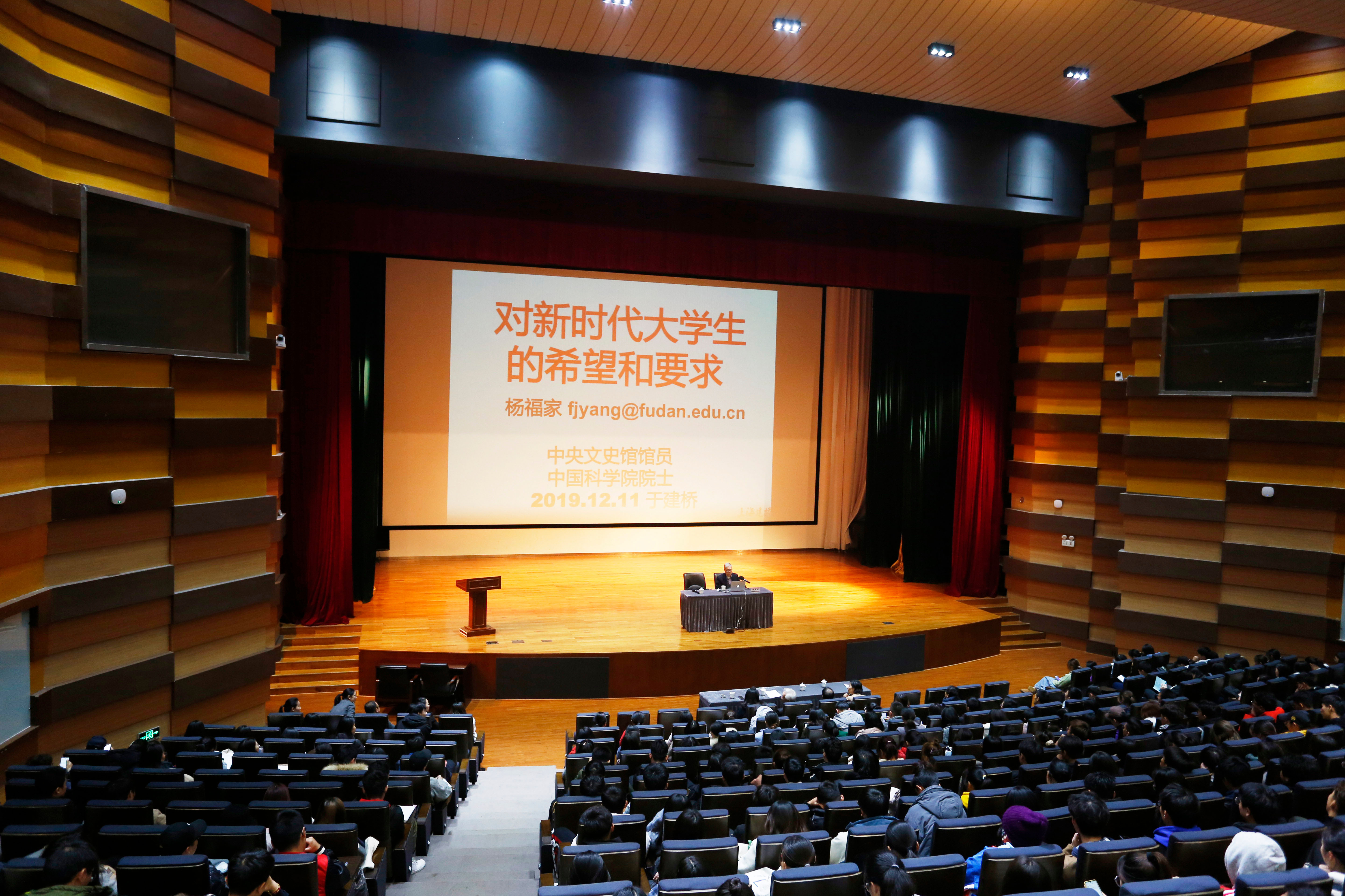 12月11日下午,中国科学院院士、中央文史研究馆馆员、名誉校长杨福家来校为师生作报告,全体大一新生在现场或通过视频转播聆听了整场报告。校领导周星增、黄清云、夏雨、陈伟出席报告会。夏雨主持报告会。