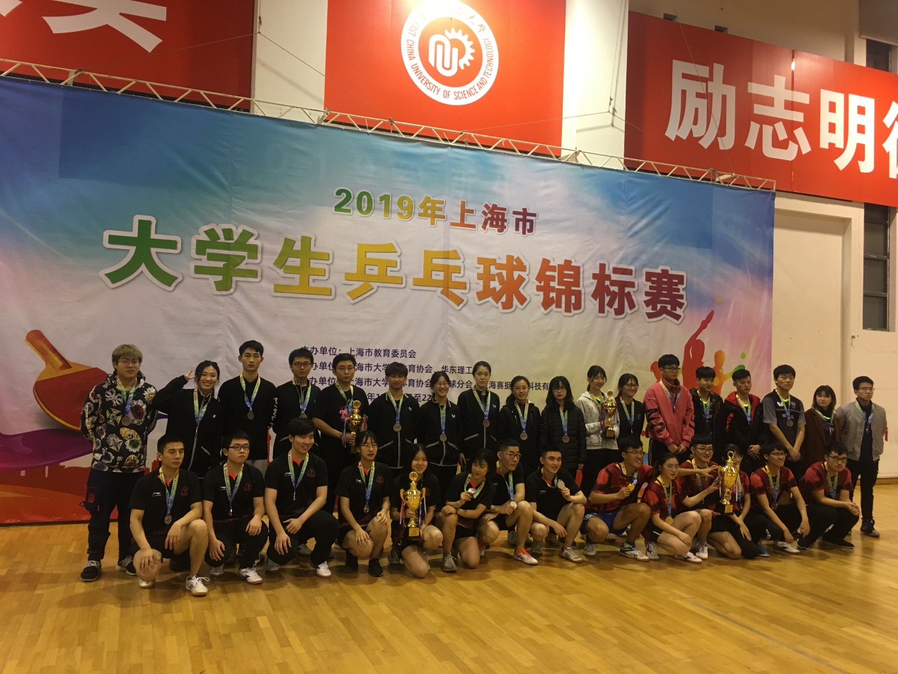 经过两天紧张激烈的对决,由上海市教育委员会主办,上海市大学生体育协会、华东理工大学承办的2019年上海市大学生乒乓球锦标赛于12月22日在华东理工大学奉贤校区圆满落幕。我校代表队获“男女混合团体赛”一等奖。
