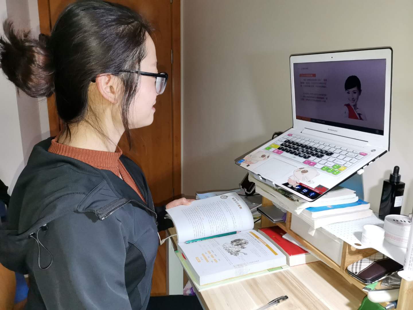 航空服务系徐仁芳老师认真准备在线教学