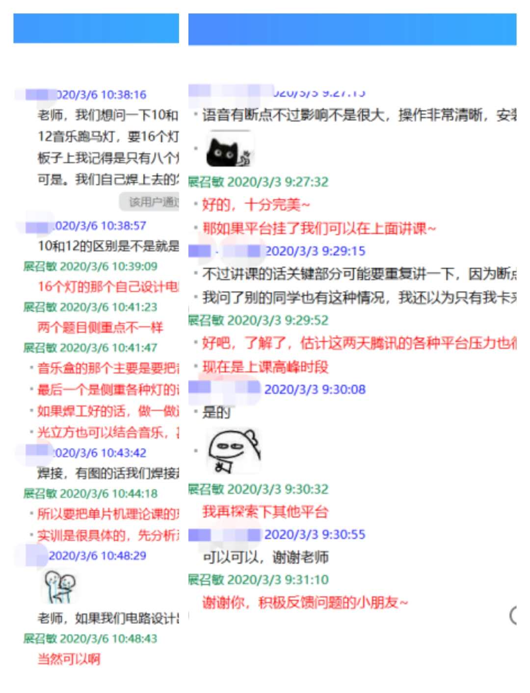 展召敏老师线上为学生答疑解惑
