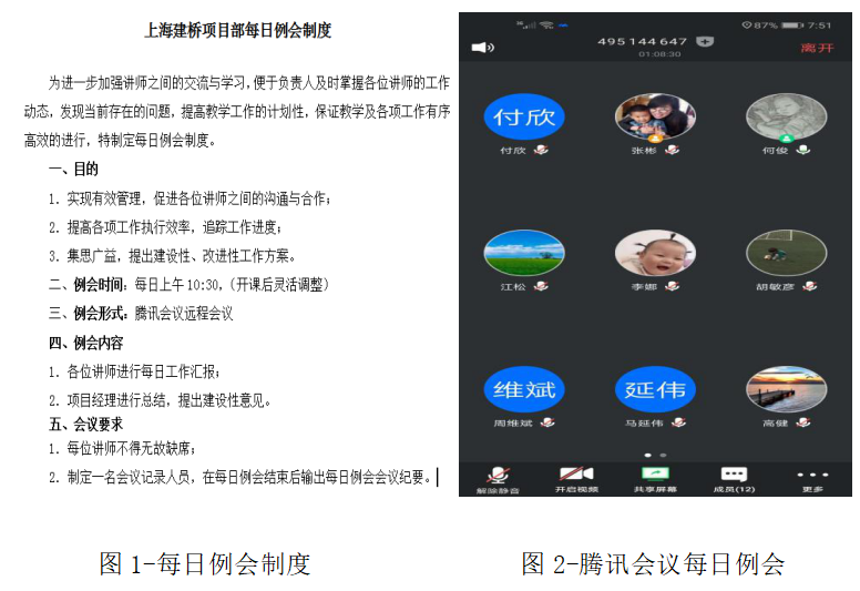 为确保疫情期间“停课不停学”,上海建桥信息技术学院企业教师驻校团队与原有师资进一步密切合作,发挥各自优势,积极探索适合上海建桥学院特点的应用型本科教学落地措施,为疫情结束后的工作和发展做好准备。