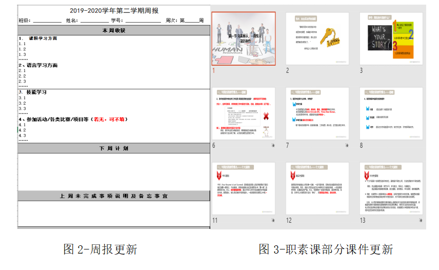 秉承着“以学生的发展”为理念,团队强化职业管理相关内容,新增外语学习及技能学习模块,重视学生的习惯养成与技能提升。此外,为了还原课堂生态,职素课资源开发小组重新调整课程体系,摒弃空洞内容,淘汰掉老旧内容,完成了部分课件及案例的更新。