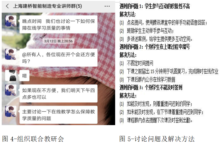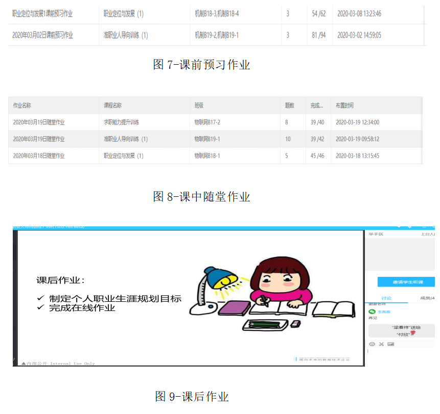 第三阶段:举行联合教研活动。企业教师驻校团队成立了专业讲师群、学生沟通群,不定期举行联合教研活动,集中讨论如何提升教学水平及如何提升学生学习质量等问题,针对在线教学中存在的问题得出一致的解决方法。