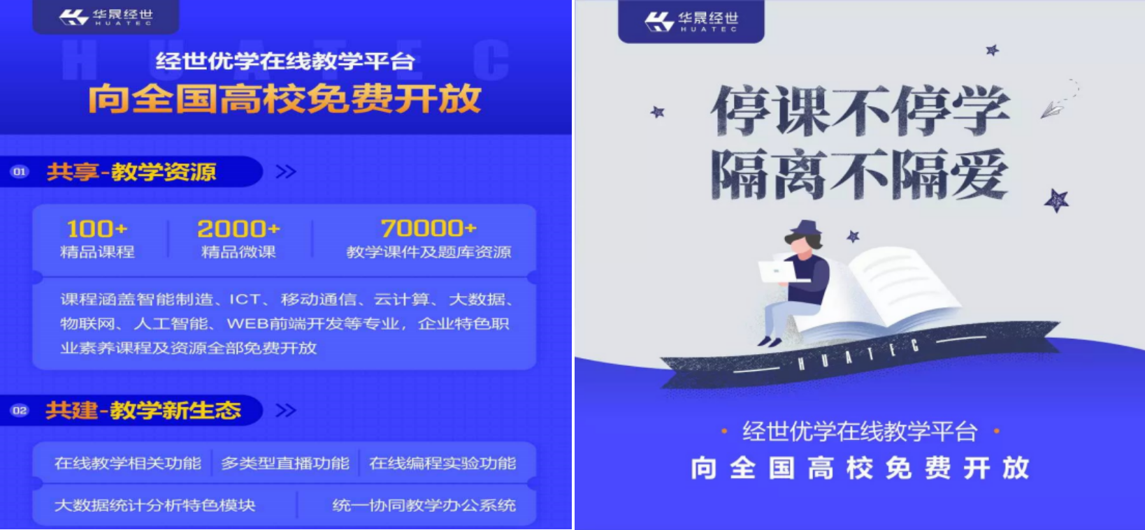 搭建“在线课堂”是教学工作的重中之重。按照信息技术学院领导“一平台一个群”的部署要求,为实现线上“教”与“学”,探索基于互联网平台的创新学习形式,驻校团队选用了经世优学在线教学平台,依托企业先进的教育技术和经世优学在线平台的技术优势,助力延期开学期间教育教学的稳步推进。