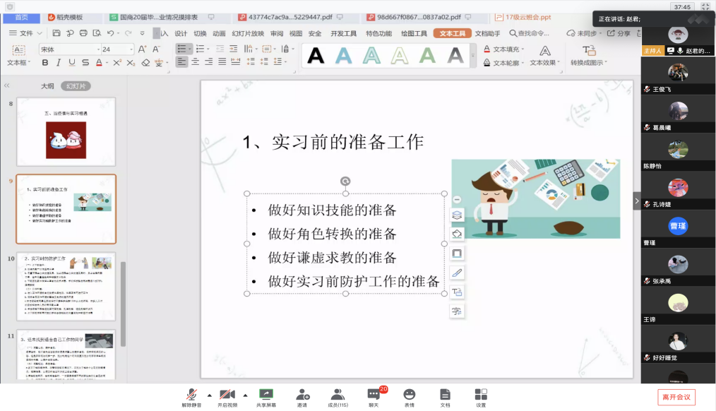 (图为职院辅导员为云端班会的顺利开展用心准备着)
