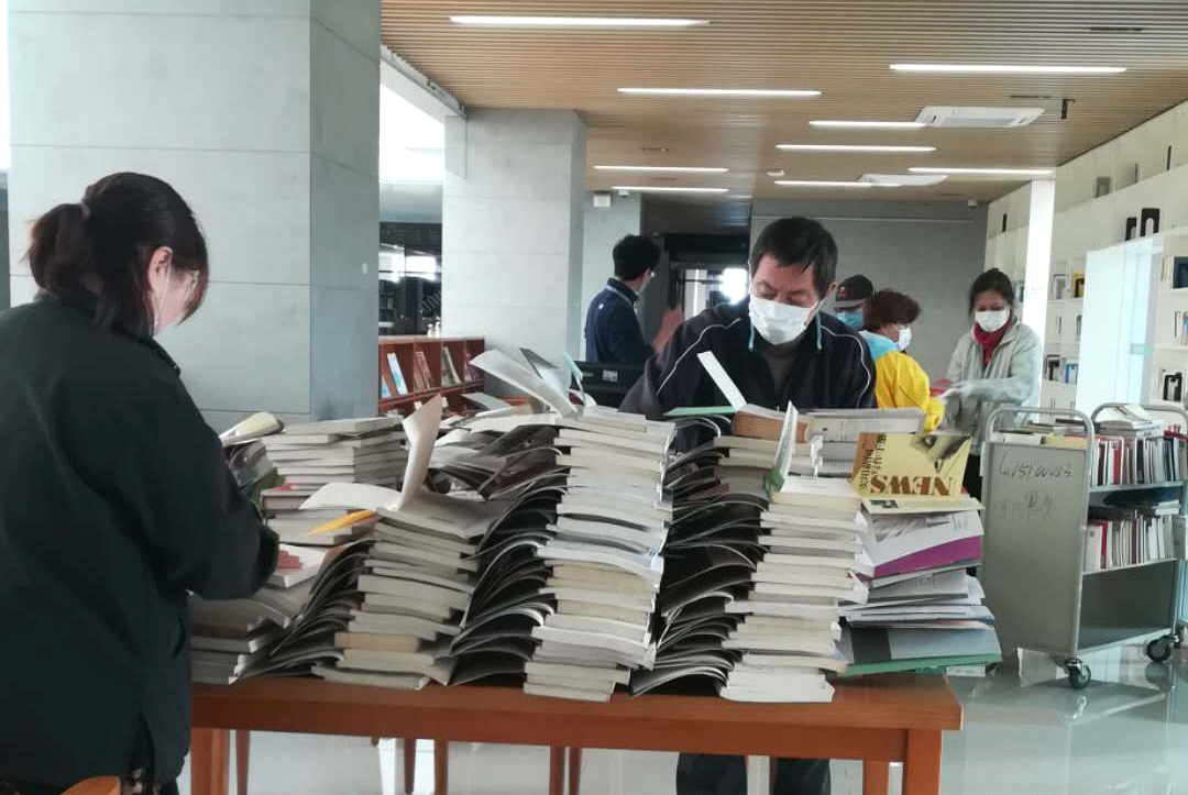 图书馆馆员们先把二楼白书墙上的B类、C类、D类、G类、F类、TP类的所有新书全部下架,搬运到相应的书库后排序上架;其次把白书墙上年代较久的书籍下架、改馆藏地后搬运到密集库上架;再把四楼书库中A类、Z类图书整理后,搬运到二楼白书墙上架。期间,对第1至第3书库部分满架率100%的架位进行复本及年代较久图书的抽取,进行改库、整理后上密集库书架。同时,对假期累积报刊进行处理,期刊加工(拆包验收、盖章贴标、写排架好、签到上架)共计约1370册;下架2019年期刊约389种,共计4480册;整理报纸约2300多份。