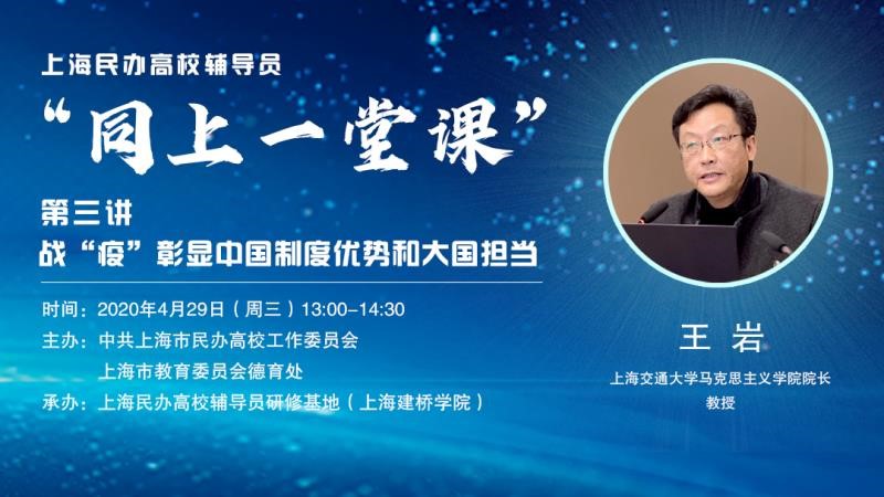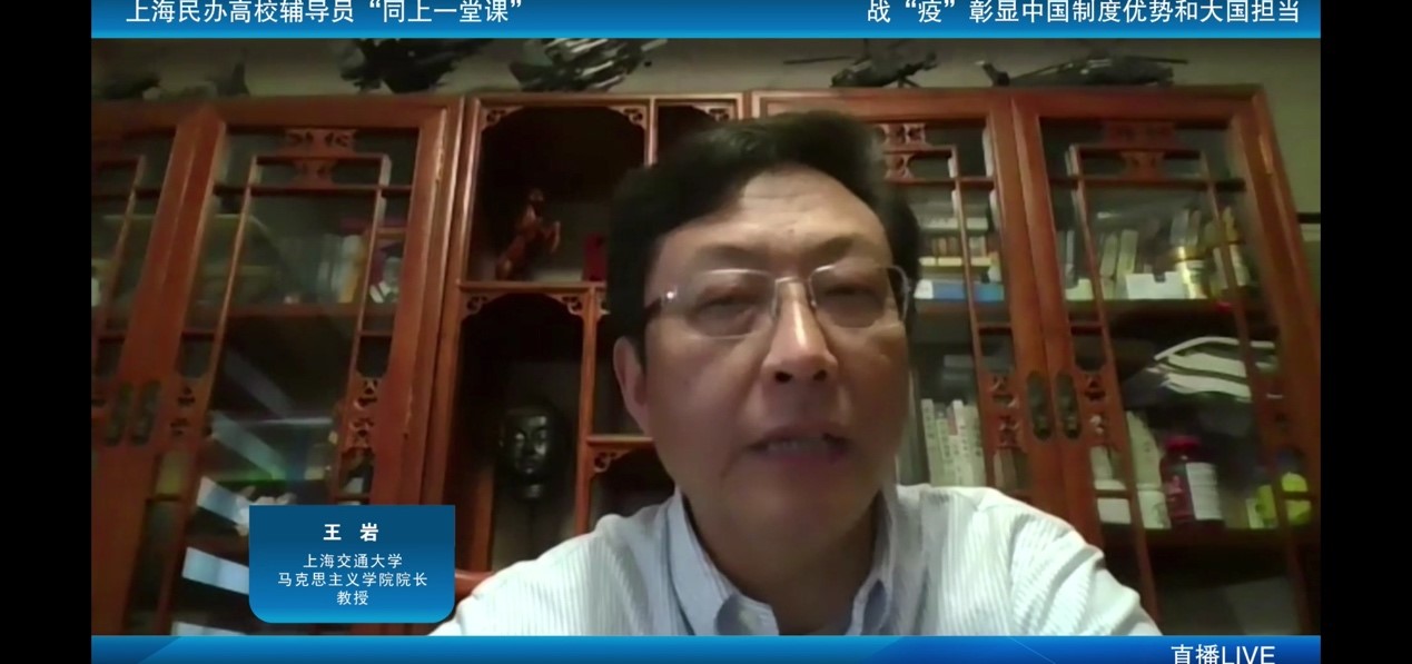 4月29日下午,上海交通大学马克思主义学院院长王岩教授“做客”上海民办高校辅导员“同上一堂课”直播间,为17所上海民办高校的辅导员们带来了系列课程的第三讲。王岩教授在本次课程主要围绕“当前我国意识形态主旋律”和“杂音与噪音-当代中国的非主流社会思潮”主题,结合疫情中的意识形态乱象,为全体辅导员开展了一场加强意识形态能力建设的线上专题辅导。