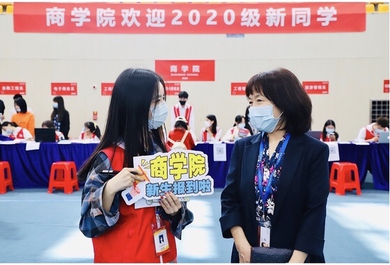10月9日上午迎新第一天,商学院院长高健、党委书记刘爱香一行早早来到迎新现场,了解迎新情况,指导迎新工作。商学院学工团队全面落实学院防控工作各项部署,充分发挥学工队伍的思想政治优势,切实做好疫情防控下的迎新工作。迎新现场,辅导员与家长亲切交流,讲解学院概况、专业设置,迎新工作井然有序。报到当天,学院领导第一时间到新生宿舍查看学生入住情况,与新生和家长亲切沟通。商学院上下齐心协力,育人为先。