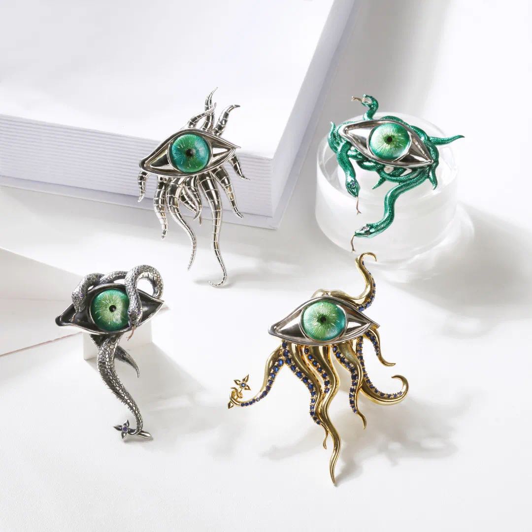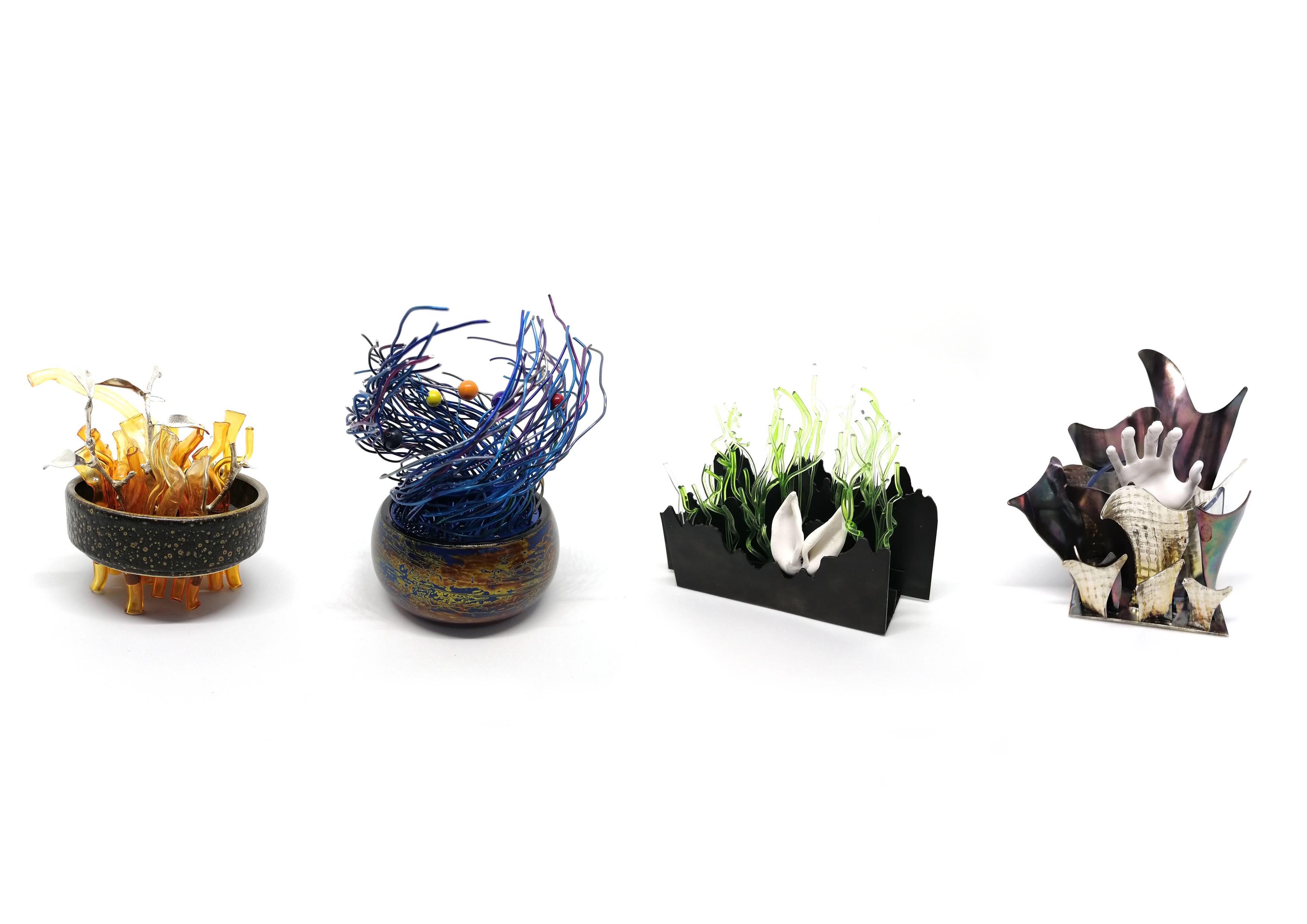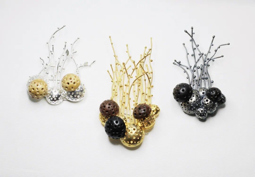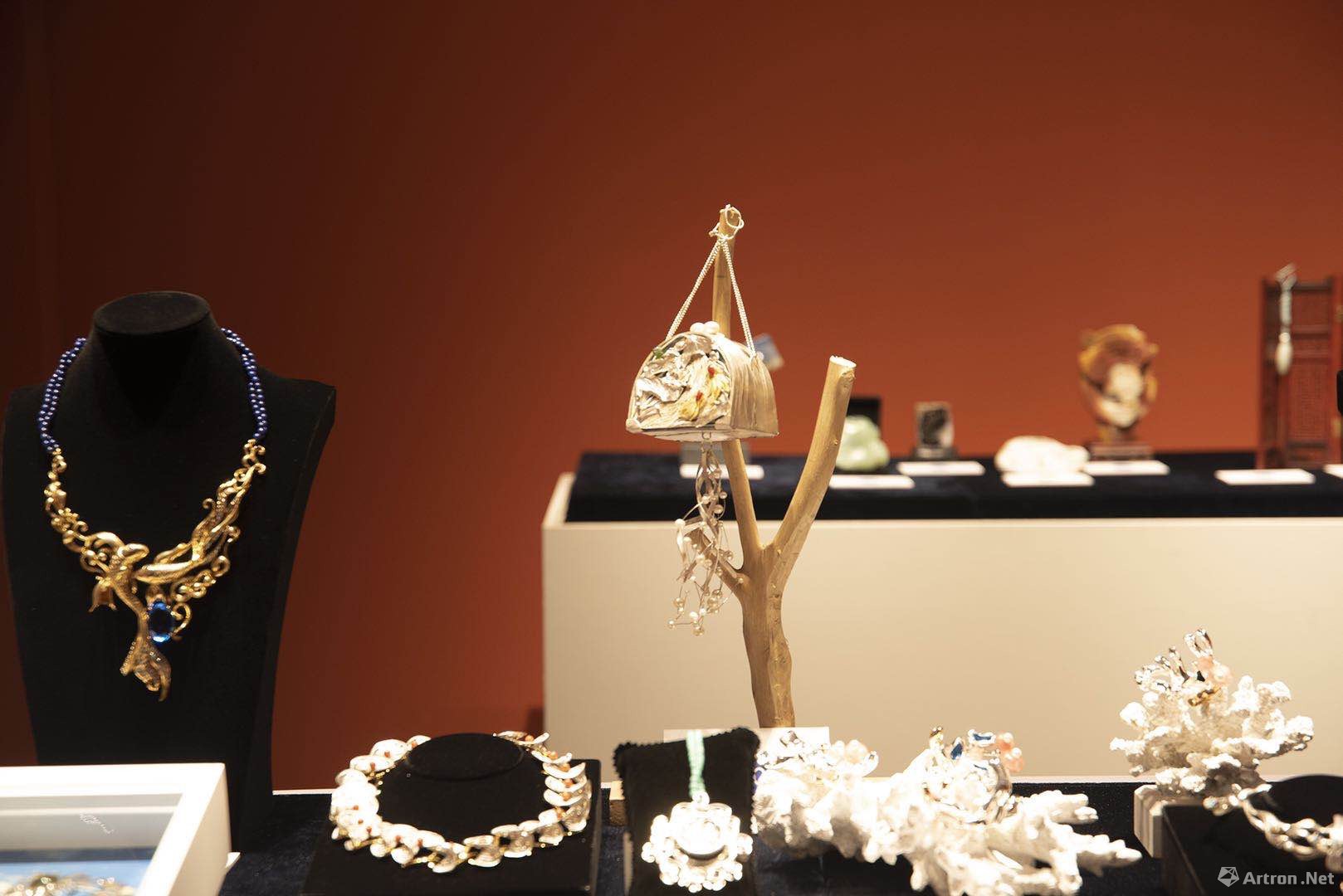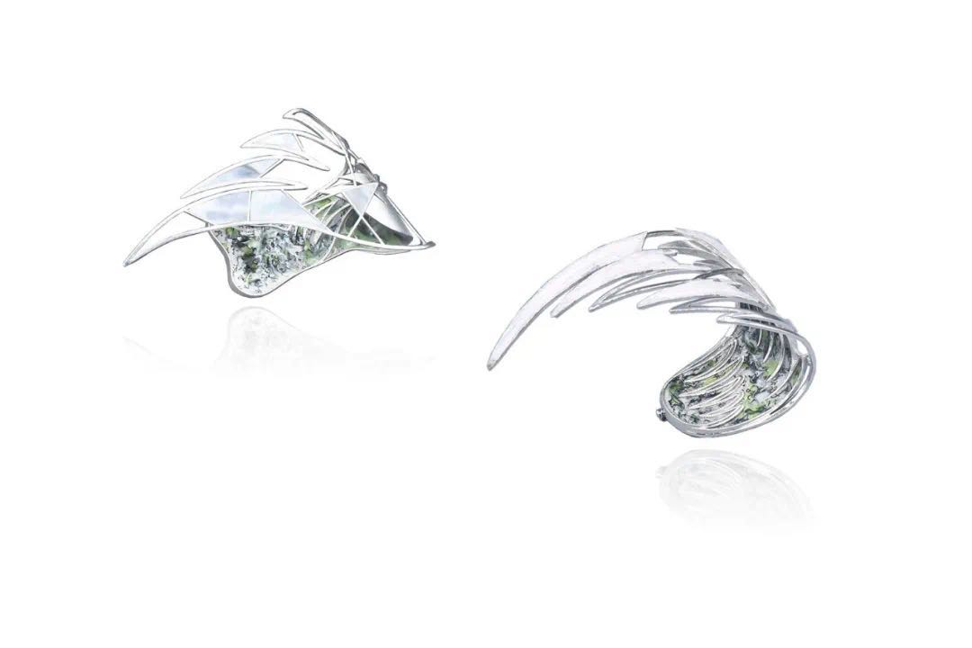 在本次“汇创青春”工艺美术类作品中,参展学生作品设计门类众多,包括:陶瓷、玻璃、漆艺、珐琅、首饰、雕塑、布艺、编织、雕刻、纸艺、竹刻、木刻、皮艺等工艺美术门类,我校共参与首饰和陶瓷两个门类,其中珠宝学院的首饰作品中综合材料的运用是一大亮点,不仅打破对于工艺美术的传统认知,更是充分运用多种材料,尝试将手工艺融入当下生活与时代,贴近年轻观众的审美喜好,打造出风格与个性兼具,现代与传统并重的优秀作品。