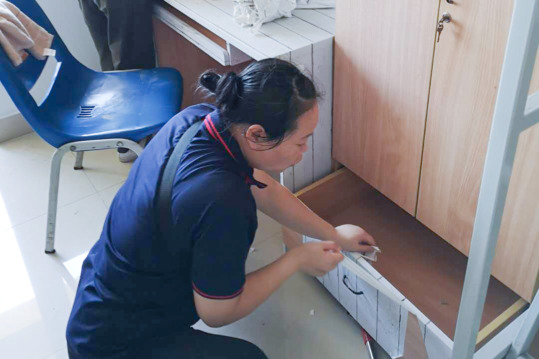 物业服务中心完成了新生宿舍清洁打扫、钥匙发放、迎新桌椅及物资搬运、校园清洁以及垃圾清运等一系列服务工作。宿管部门在完成毕业生退宿工作之后,迅速组织人员完成1700余间新生宿舍、6800个床位的保洁工作。迎新期间,各宿舍楼的宿舍管理员井然有序地做好新生入住登记、耐心讲解住宿流程,细心准确发放每一把钥匙,四天共发放5000余把钥匙,无一错误。