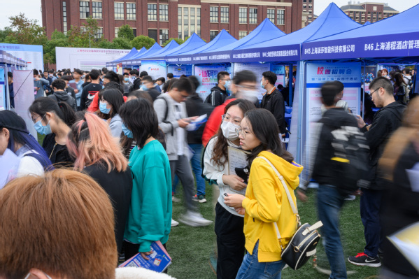 10月28日,“助力青春,沪梦启航”2021届上海高校毕业生就业工作系列活动启动会,上海市2021届高校毕业生秋季校园招聘会暨“会聘上海”校园行活动在上海建桥学院体育场举行。
