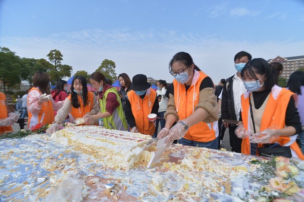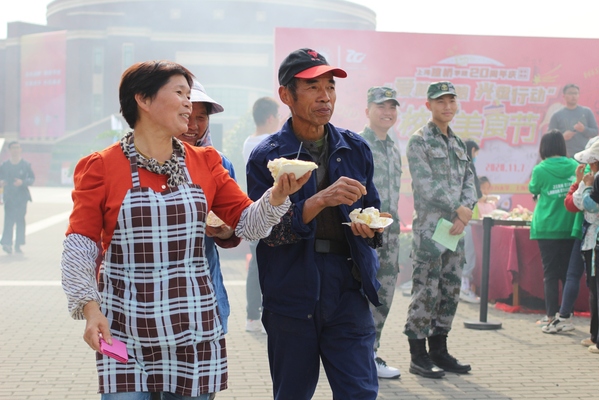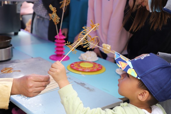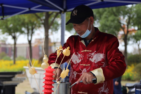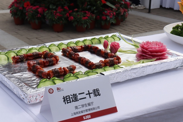 美食的味道,勾起过往的回忆。“舌尖之乐,美食之约”校园美食节上,校友们凭借着代金券品尝“团团圆圆”“灯火辉煌”等各色寓意非凡的美食,充满童年回忆的糖画、棉花糖、烧烤等小零食受到校友和孩子们的青睐。美食节特邀临港周边4所兄弟院校的名厨团队与我校大厨共同准备了32种菜品。餐饮及商业服务中心还倾情打造了长达2米的校庆蛋糕,为校庆甜蜜献礼。