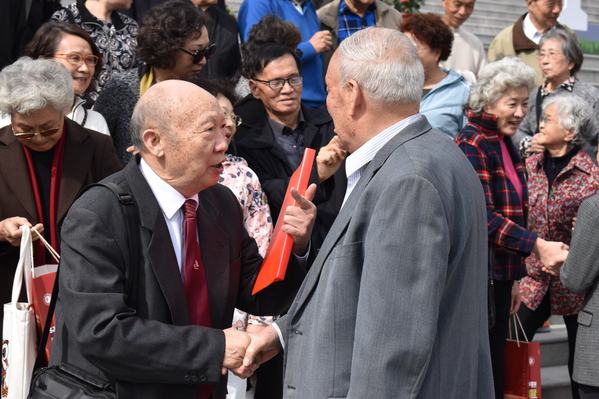 创校的前浪,激励奋勇的后浪。学校在图书馆二楼大厅举行学校首任名誉校长李国豪院士铜像新址揭幕仪式,建桥的老教师和年轻校友在图书馆相会,回忆在校时光。