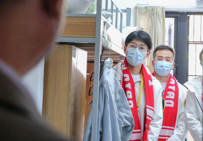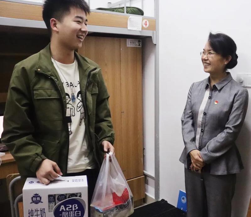 11月1日正式上岗前,副校长陈伟同样来到集中住宿点亲切慰问并为志愿者们送行。她逐个走访寝室,了解大家在生活上的需求,并提醒大家要注意增添衣物,劳逸结合。