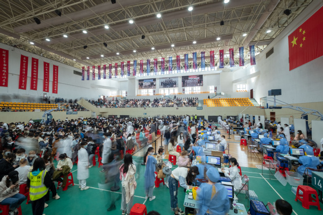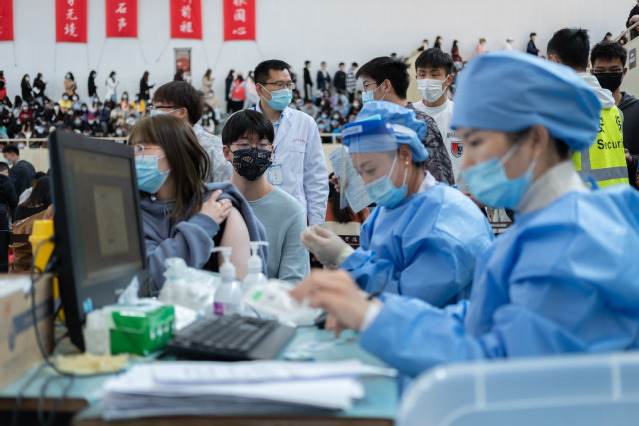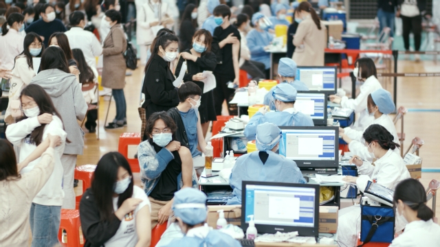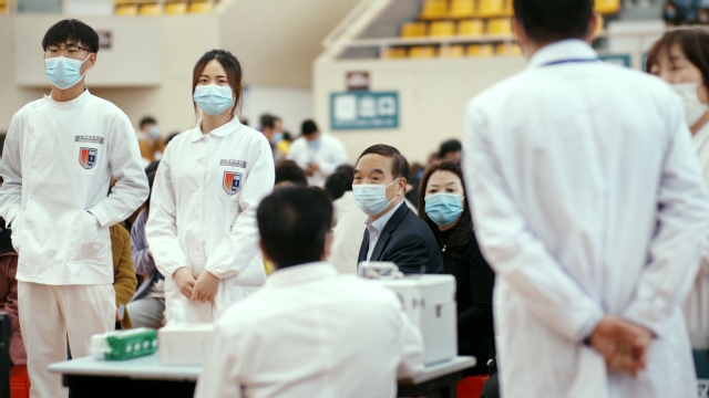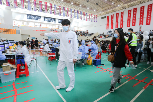 健康筛查、信息登记、疫苗接种、留观休息……学生和教职员工分批排队进入学校流动疫苗接种点,在现场工作人员、志愿者指引下,顺畅高效地完成接种流程。