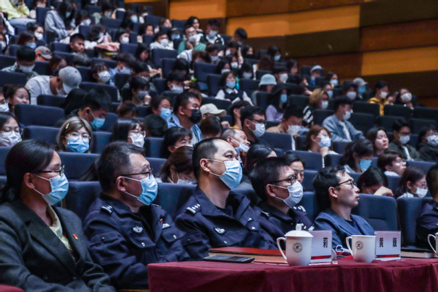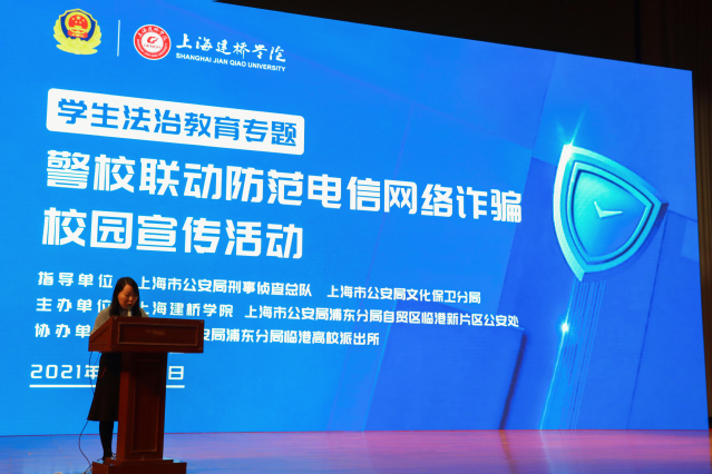 宣讲会上,邀请了上海市刑侦总队九支队、上海市反电信网络诈骗中心探长范华做上海电信网络诈骗总体形势分析;上海市公安局文化保卫分局治安大队警官、文保分局高校防范宣传品牌“谢蜀黍工作室”的原型和负责人谢晔警官为大家讲授电信网络防诈骗防范方法。