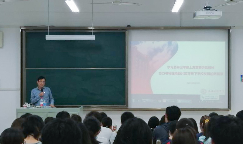 5月12日,校长朱瑞庭为学生上主题为“学习总书记考察上海重要讲话精神奋力书写临港新片区背景下学校发展的新篇章”的形势与政策课,整堂授课生动有趣,内容深刻,受到学生热烈欢迎。