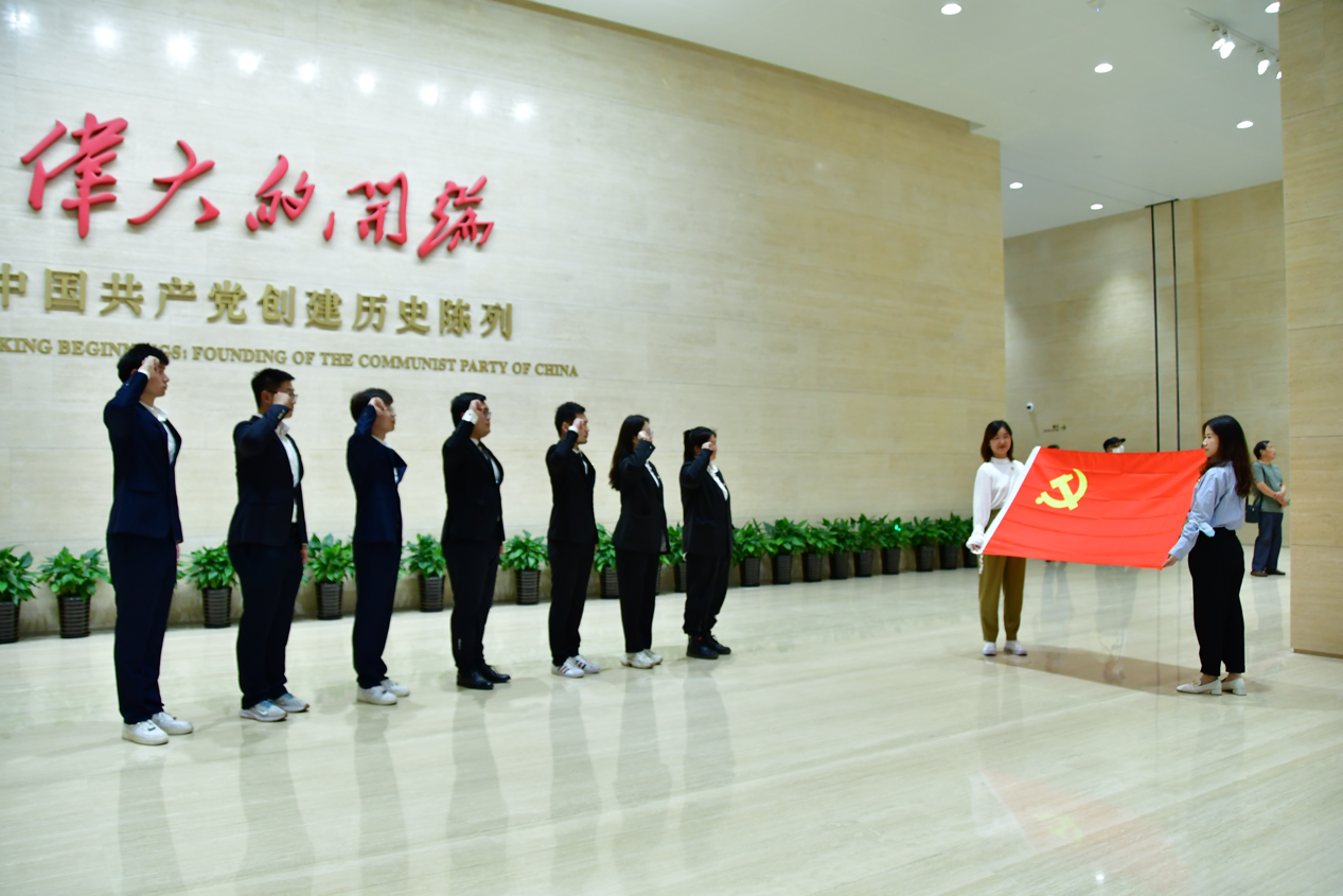 2021年6月4日,在中共一大纪念馆开馆之际,信息技术学院党委组织学院师生党员,以“启迪·学史增信”为主题开展党日活动,通过近距离感悟中国共产党的初心使命,坚定对马克思主义的信仰;通过重温入党誓词,坚定对共产主义的理想信念;通过深情告白,坚定对实现中华民族伟大复兴中国梦的信心。